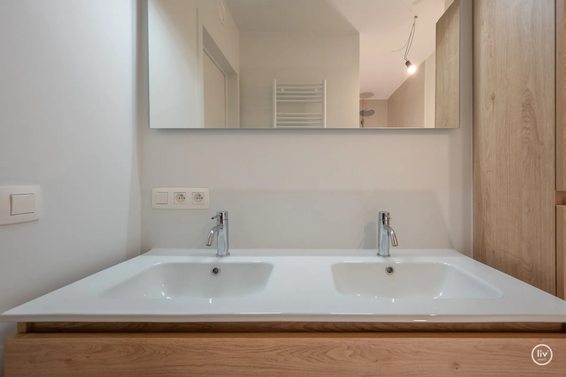Ruime Inkomhal met een apart gastentoilet , gezellige living met aanpalend een terras, open keuken voorzien van alle luxe comfort, 2 volwaardige slaapkamers, badkamer met douche en lavabo.