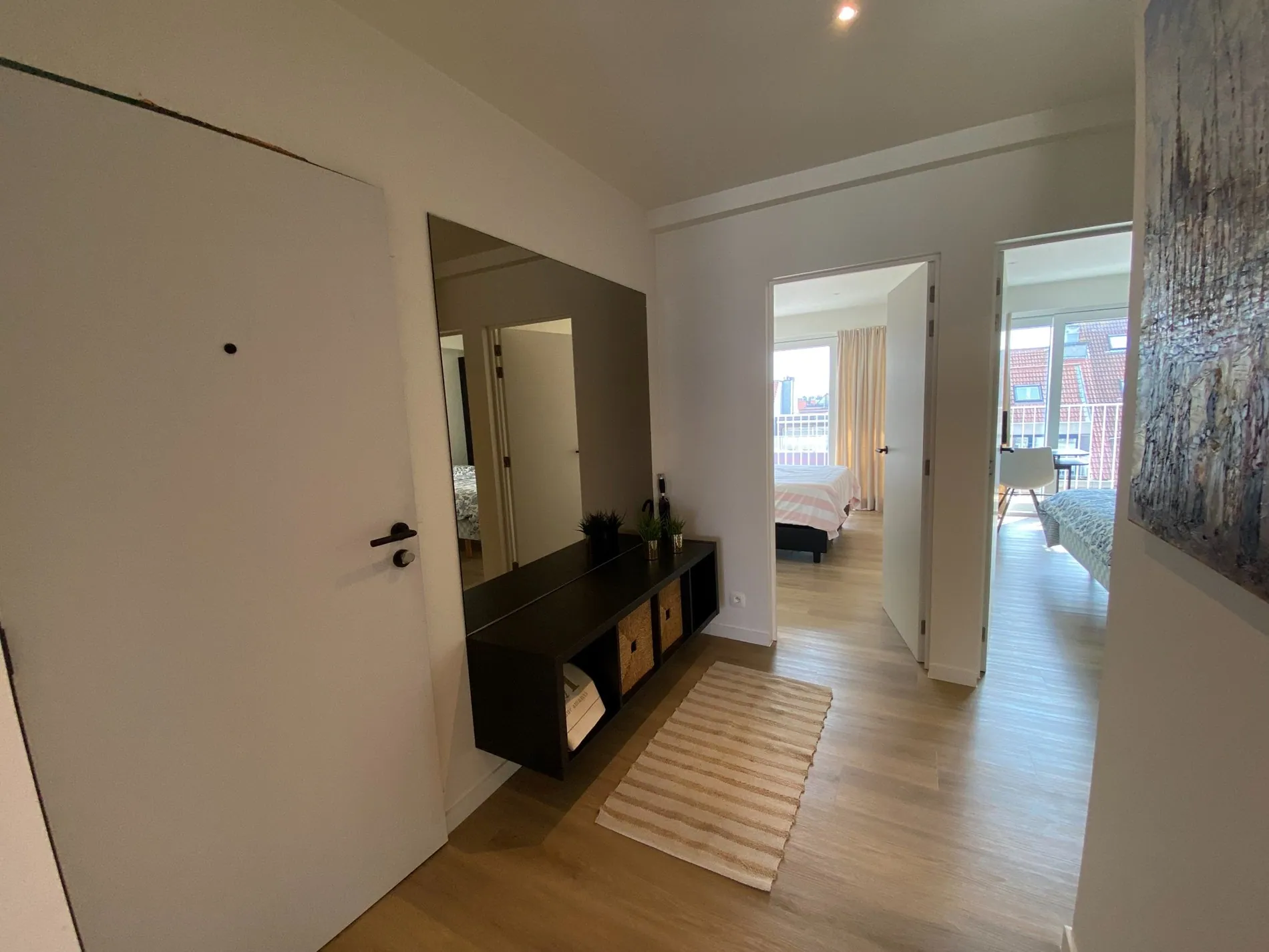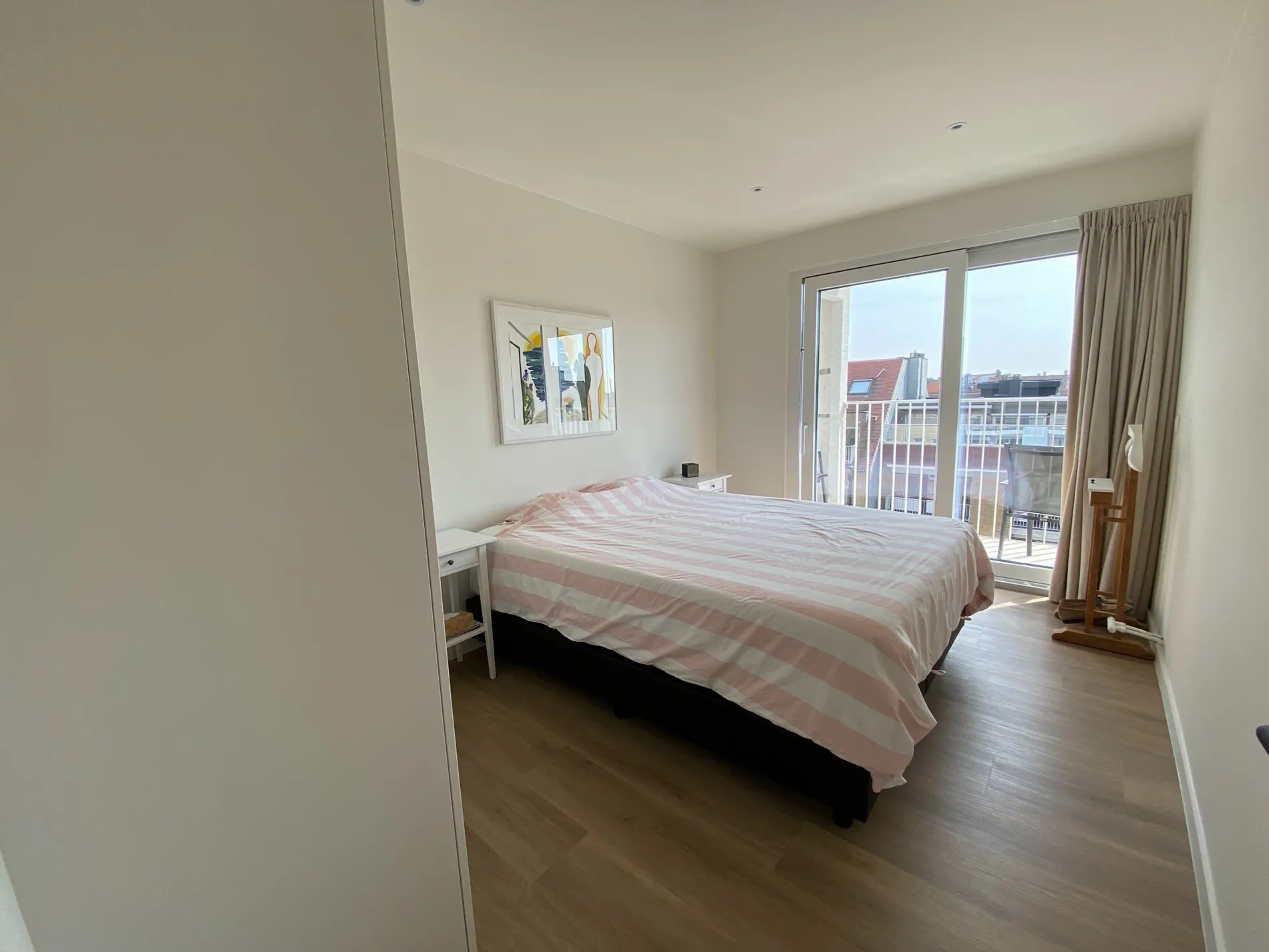 Het appartement is gelegen op de vijfde verdieping in de Lippenslaan op enkele meters van het strand en de Dumortierlaan.