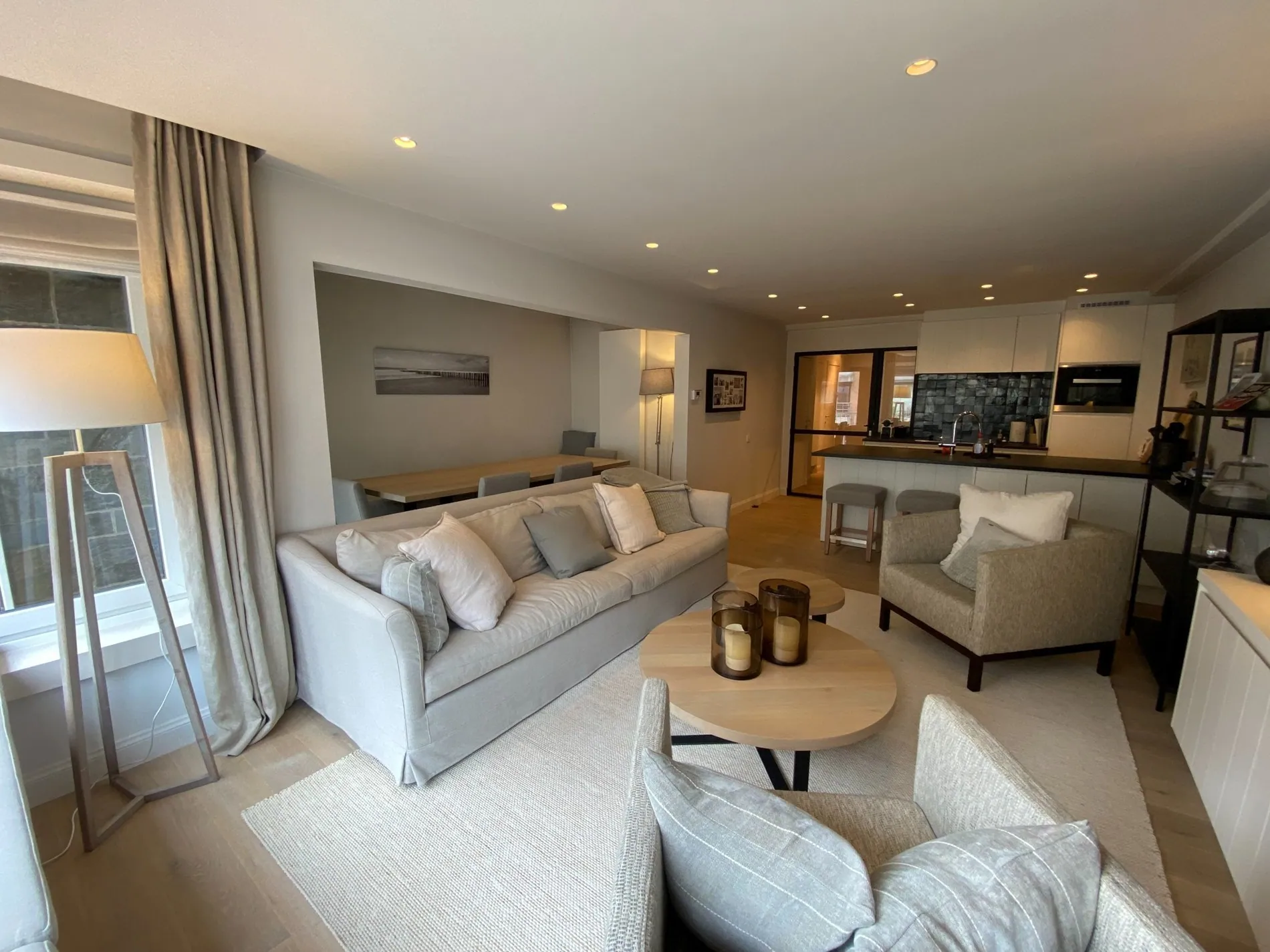 - Gezellige woonkamer met aparte eet- en zithoek uitgevend op een zuidgericht terras