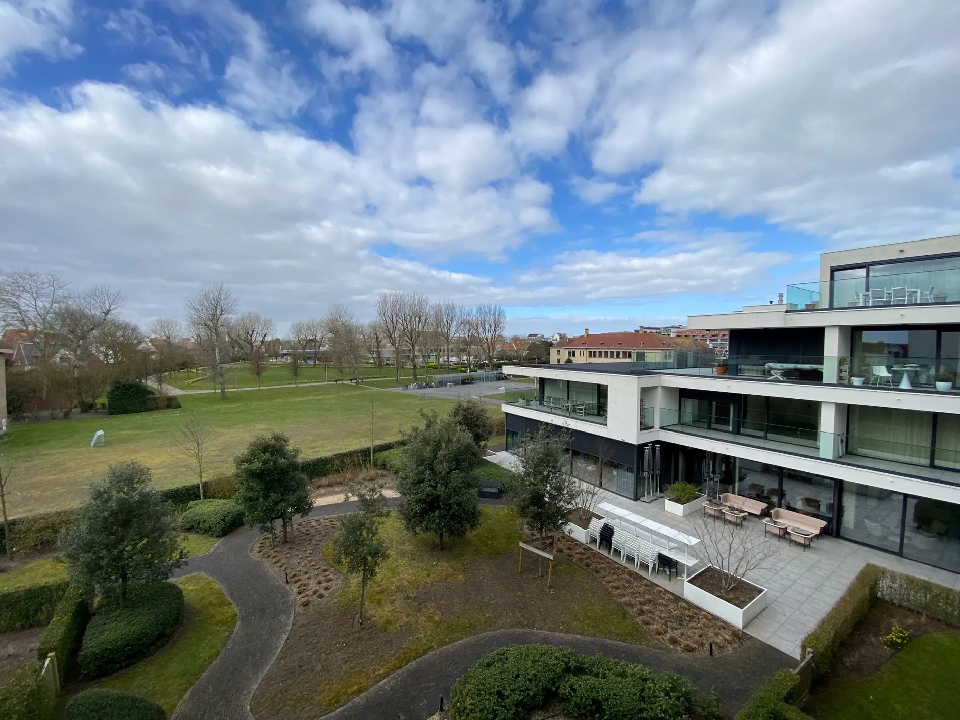 ONGEMEUBELD: SERVICEFLAT: Lichtrijk 1-slaapkamer appartement met een groot terras en mooi open zicht op het cultuurcentrum Scharpoord in de Residentie Cypres.