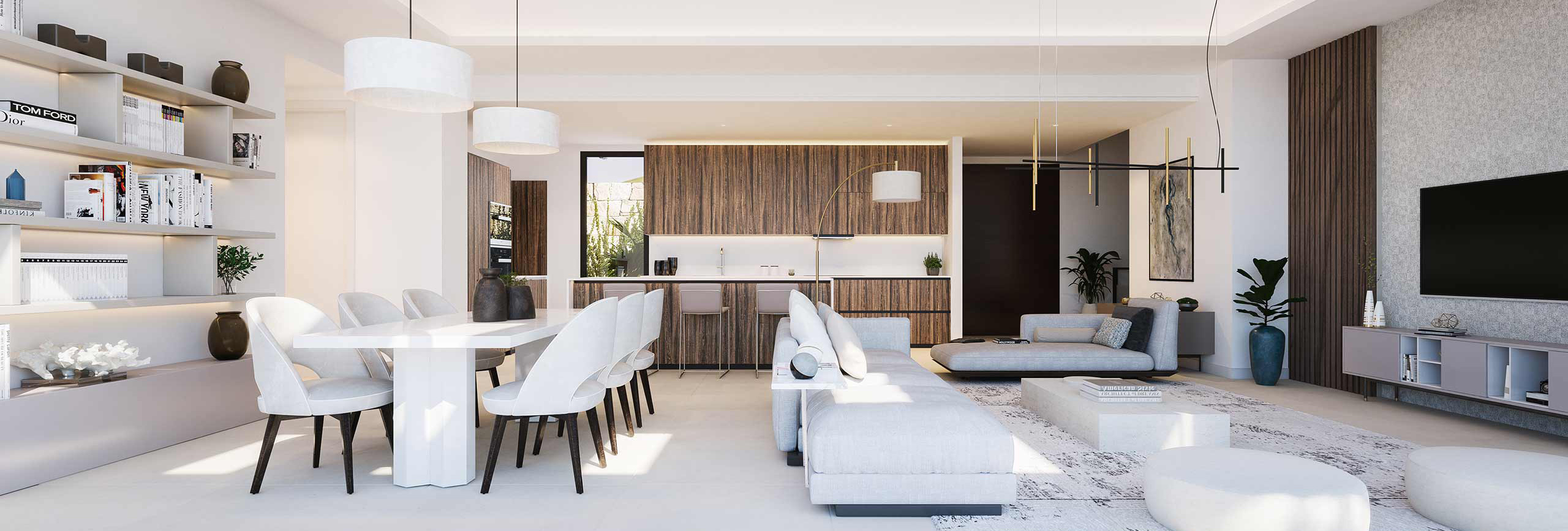 De units zijn voorzien met 2 of 3 slaapkamers, met 2 of 3 badkamers, volledig open ingerichte keuken met aansluitend woonkamer.