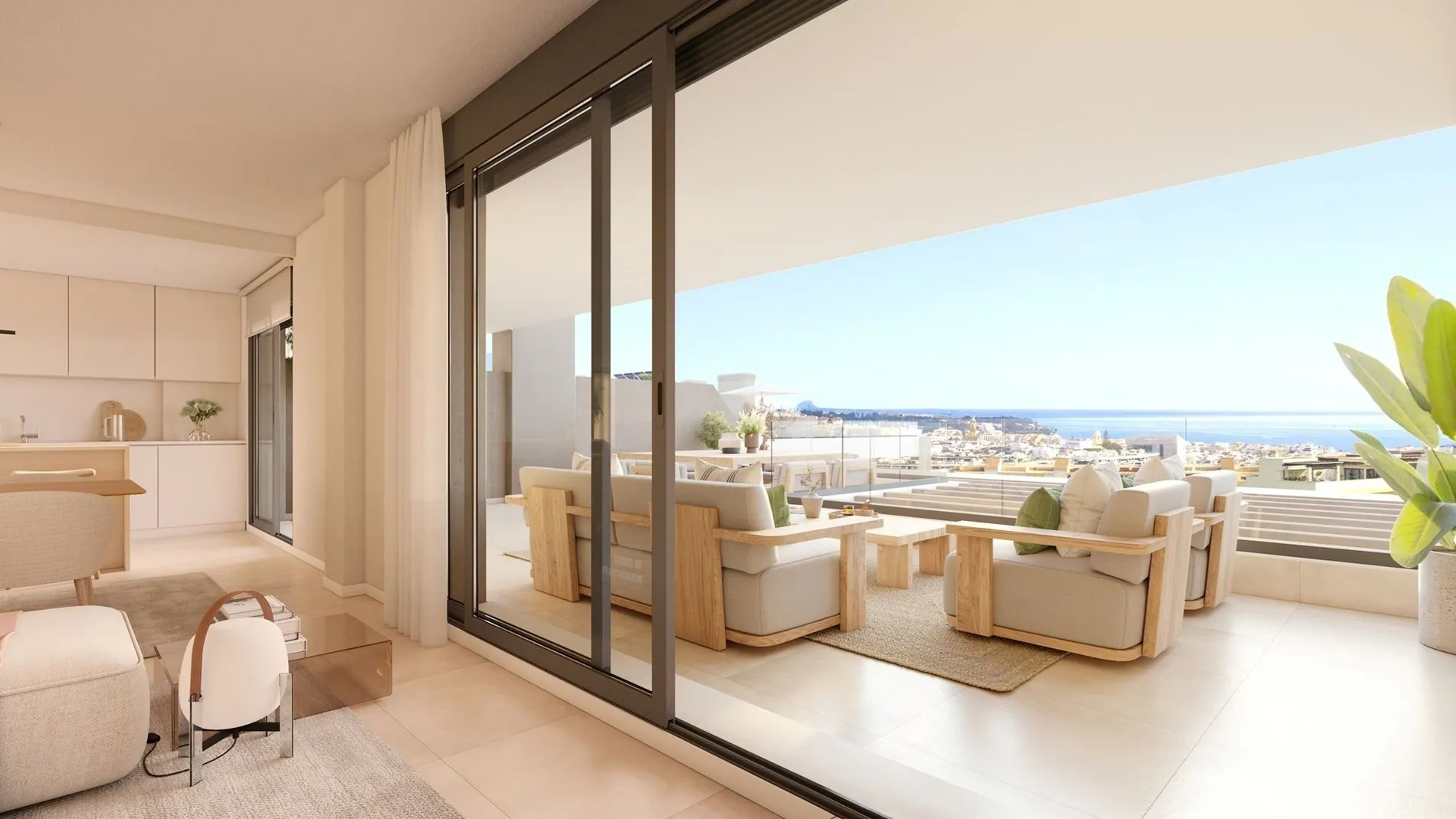 Grote vloer-tot-plafondramen vervagen de grenzen tussen binnen en buiten en vullen de interieurs met natuurlijk licht. Het porseleinen vloeren loopt door naar de terrassen voor een samenhangende uitstraling, terwijl gemotoriseerde jaloezieën en LED-verlichting zowel gemak als efficiëntie bieden. Het is een naadloze woonervaring die zowel praktisch als stijlvol is.