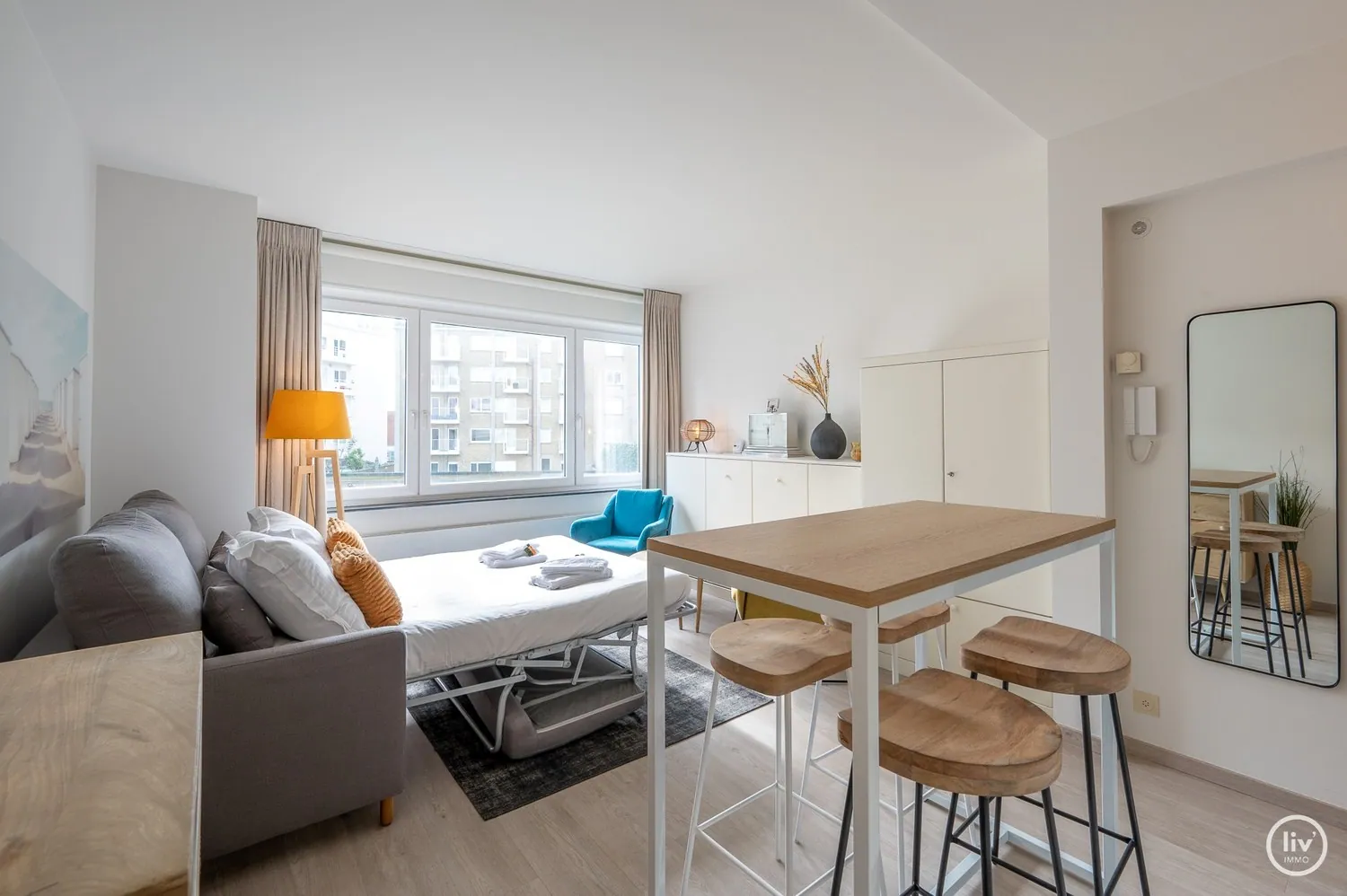 Gezellige studio met zicht op de gemeenschappelijke tuin centraal gelegen op de Zoutelaan te Knokke.