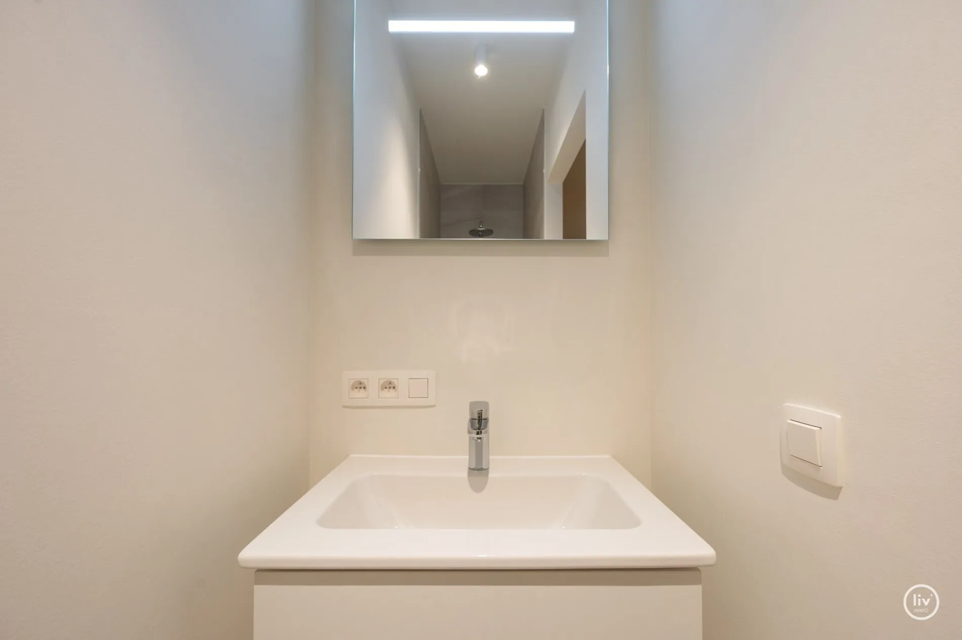 Indeling: inkomhall, gastentoilet, living, open keuken, voorraadberging, terras , technische berging (incl. aansluiting wasmachine), 2 slaapkamers, elk van de slaapkamers zijn voorzien van een aansluitende douchekamer.