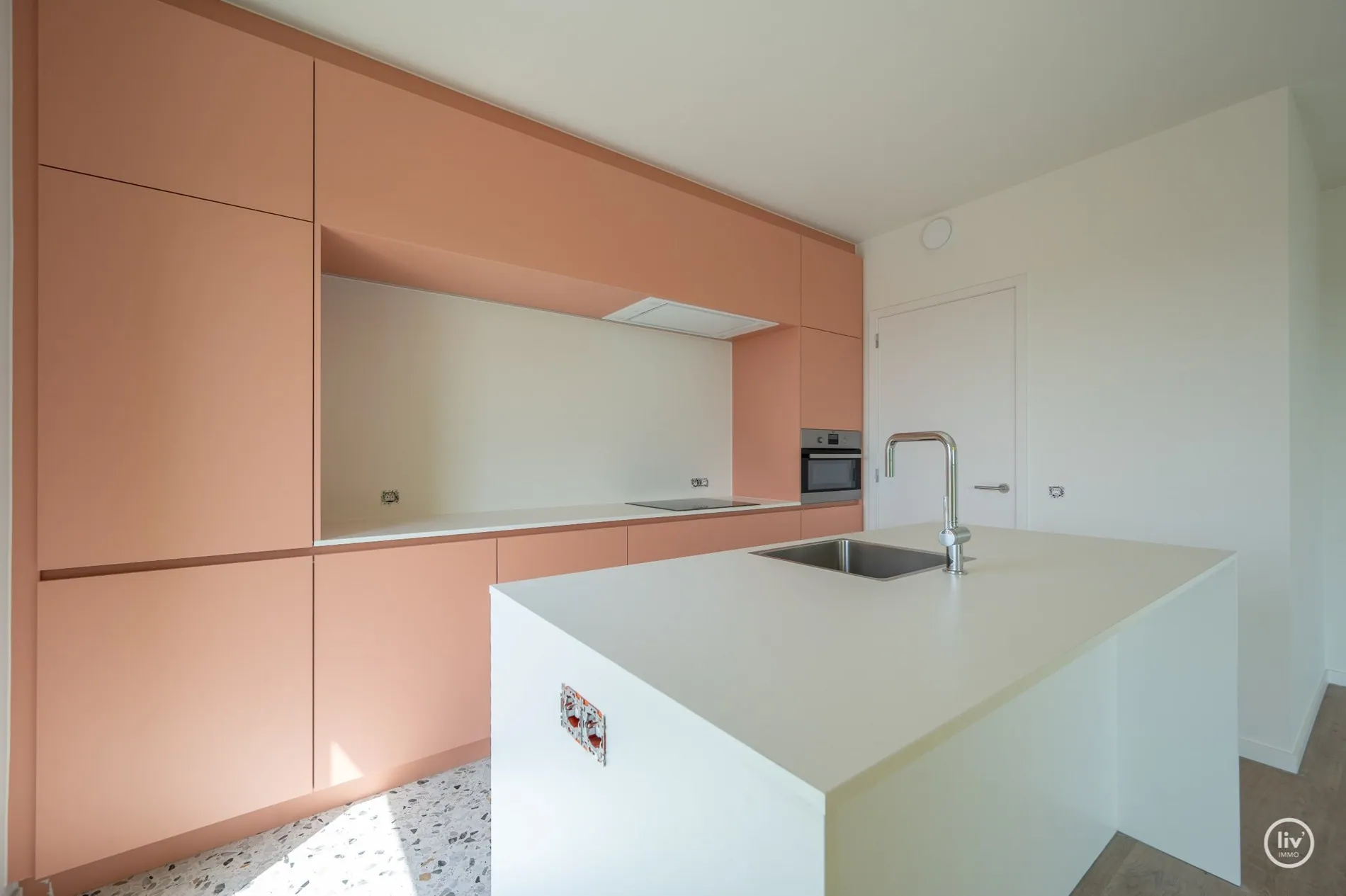 Volledig instapklaar nieuwbouw-appartement voorzien van een gevelbreedte van 10m: Opendeurdag Zondag 4/01 (14u tot 17u).