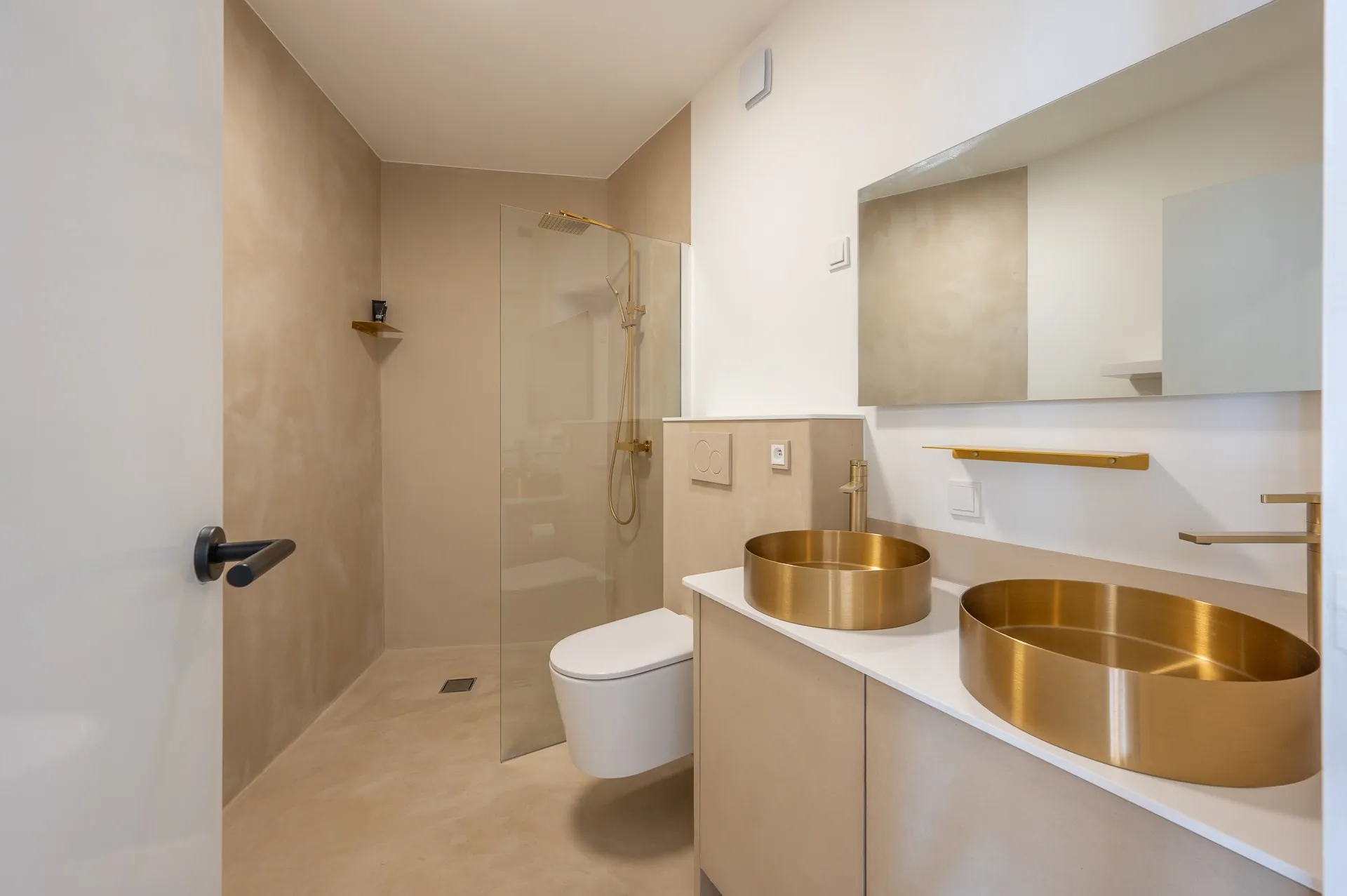 Twee volwaardige slaapkamers en moderne douchekamer( in mortex) met inloopdouche, dubbele lavabo en toilet.