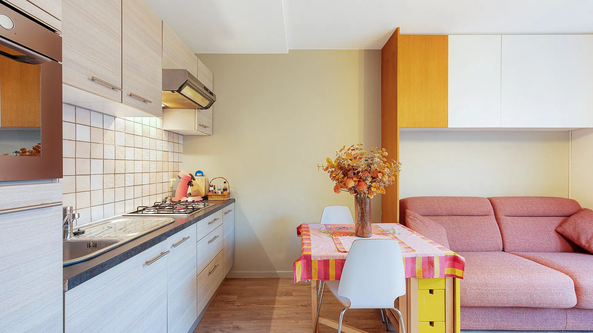 Instapklare studio met badkamer en keuken, volledig zuidgericht waardoor er een mooie lichtinval in het appartement. De residentie beschikt over een gemeenschappelijke zuidgerichte tuin.