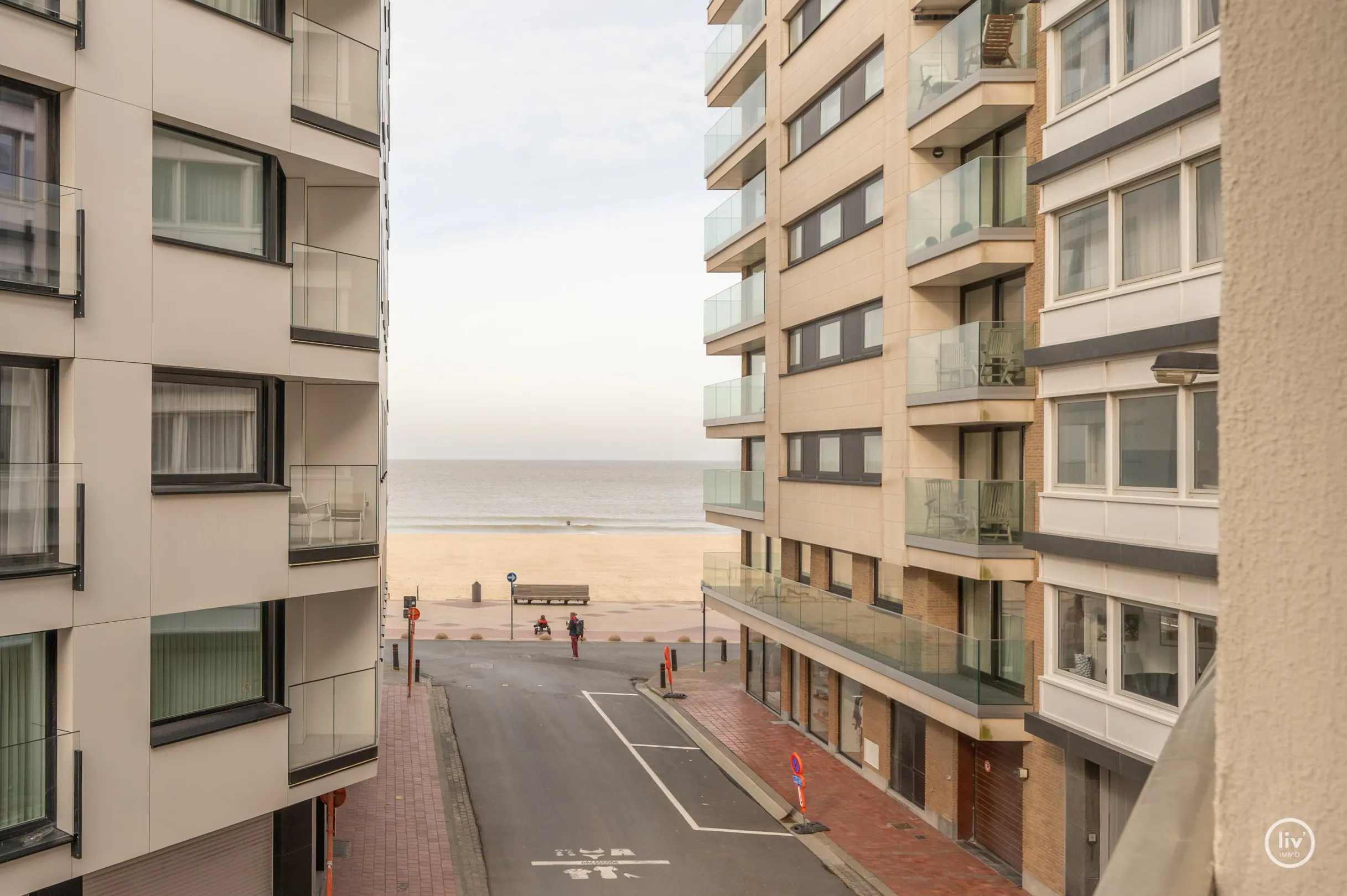 Gerenoveerd 2 slaapkamer appartement met prachtig zeezicht gelegen nabij het Driehoeksplein te Knokke.