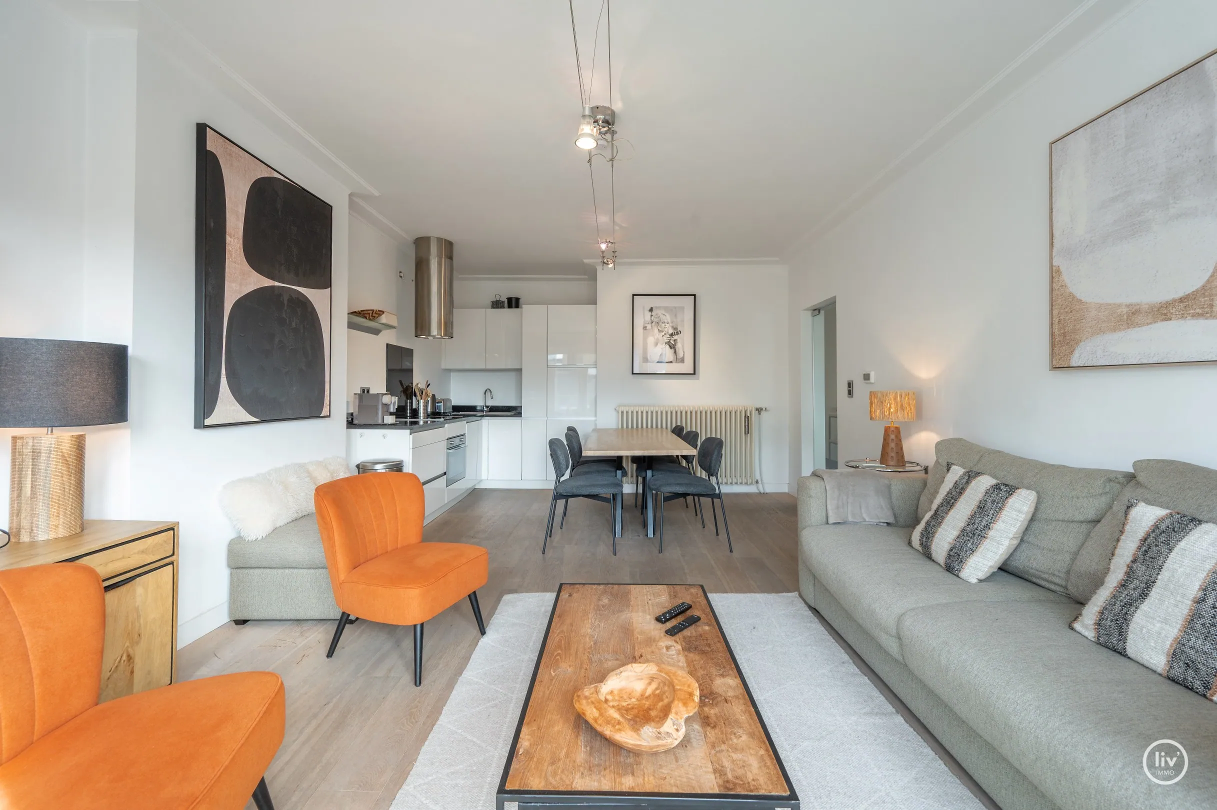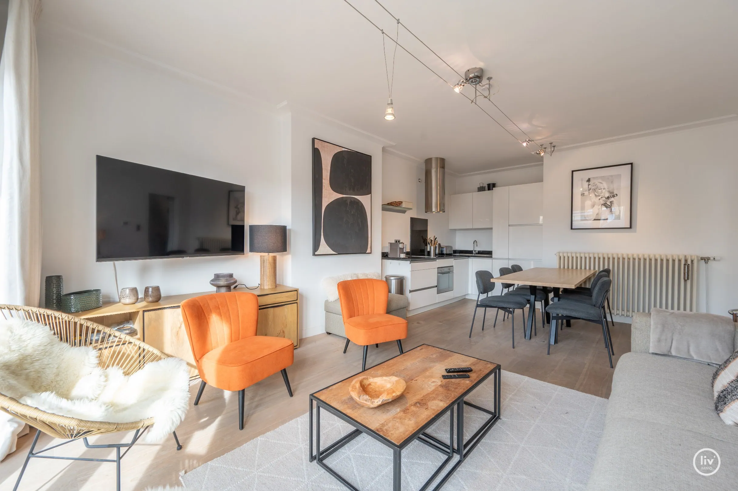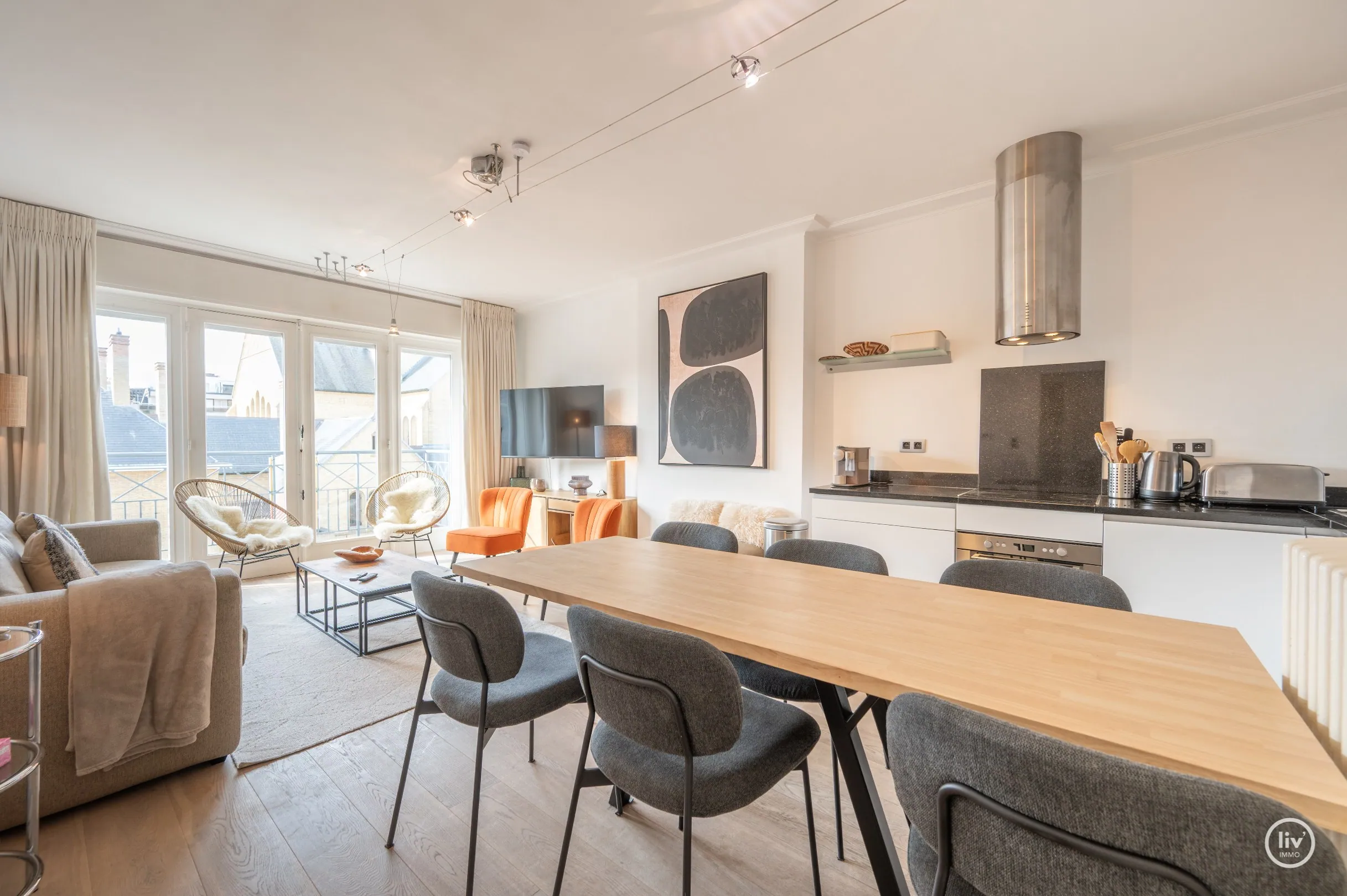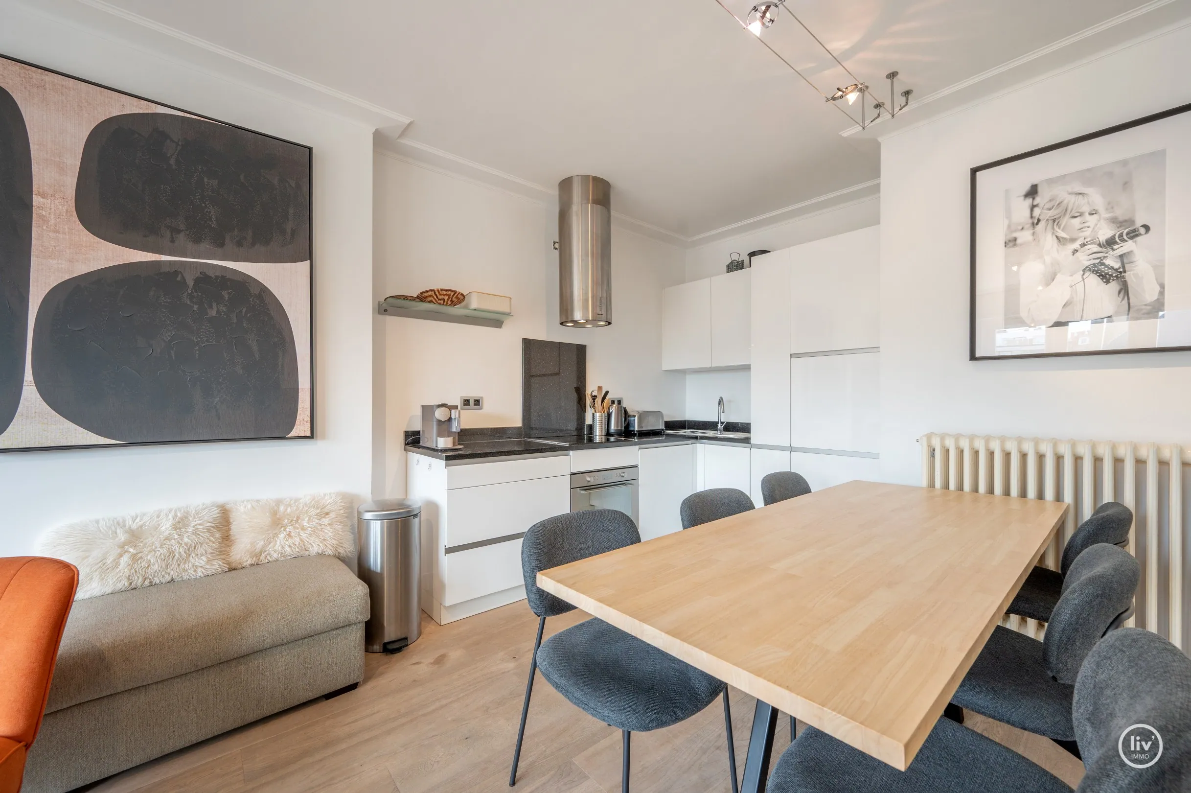 Dit uitstekend gelegen en bijzonder lichtrijke appartement geniet van een open zicht op de Heilig Hartkerk en dankzij de gunstige oriëntatie baadt het de hele dag in het zonlicht. Een aangename woonpl