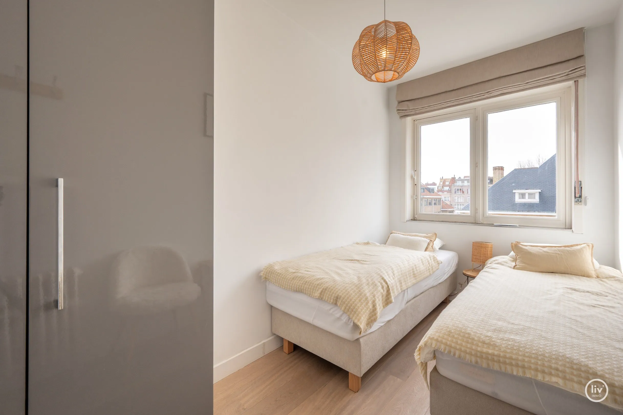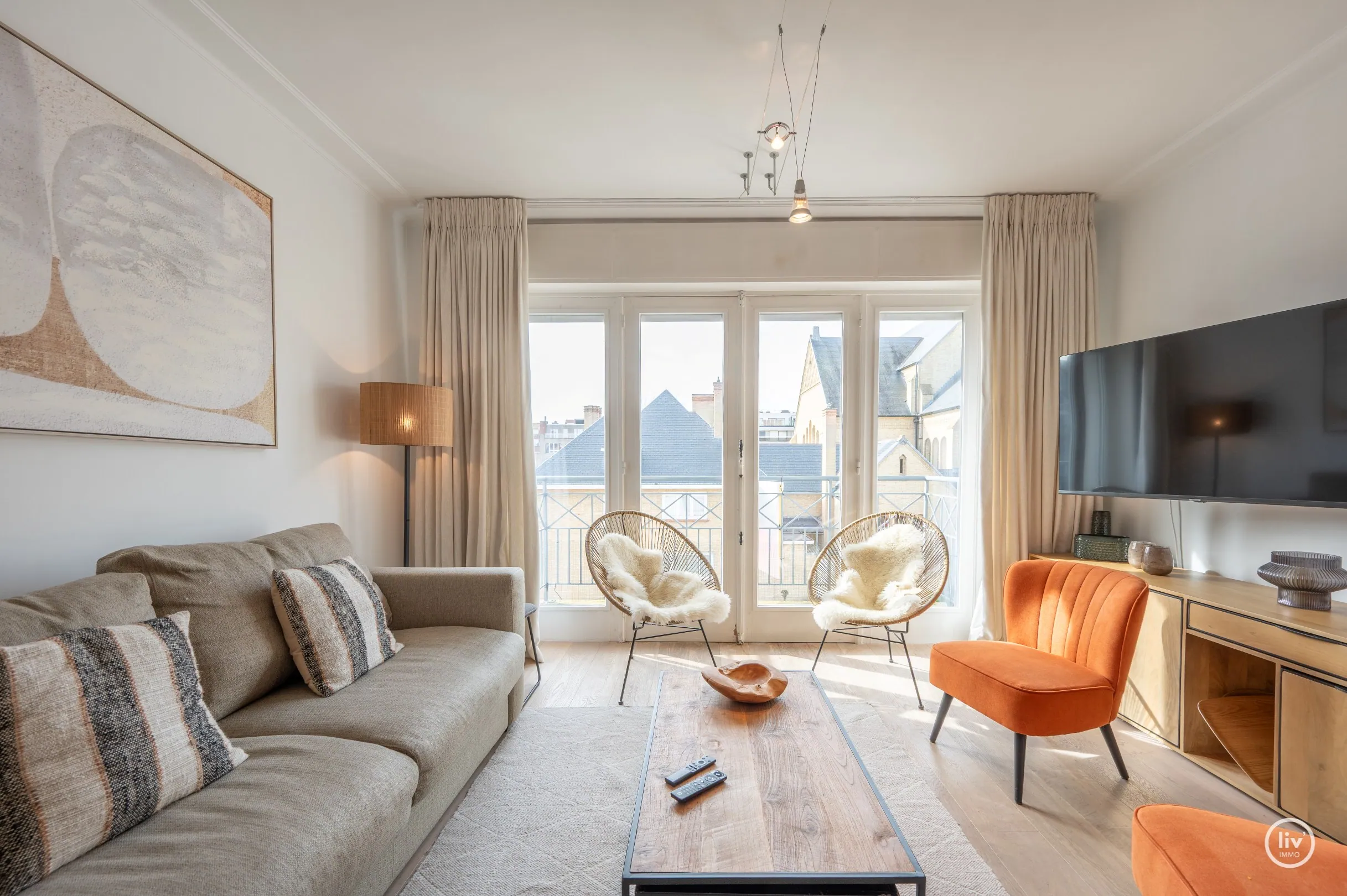 Dit uitstekend gelegen en bijzonder lichtrijke appartement geniet van een open zicht op de Heilig Hartkerk en dankzij de gunstige oriëntatie baadt het de hele dag in het zonlicht. Een aangename woonplek waar rust, comfort en licht centraal staan.