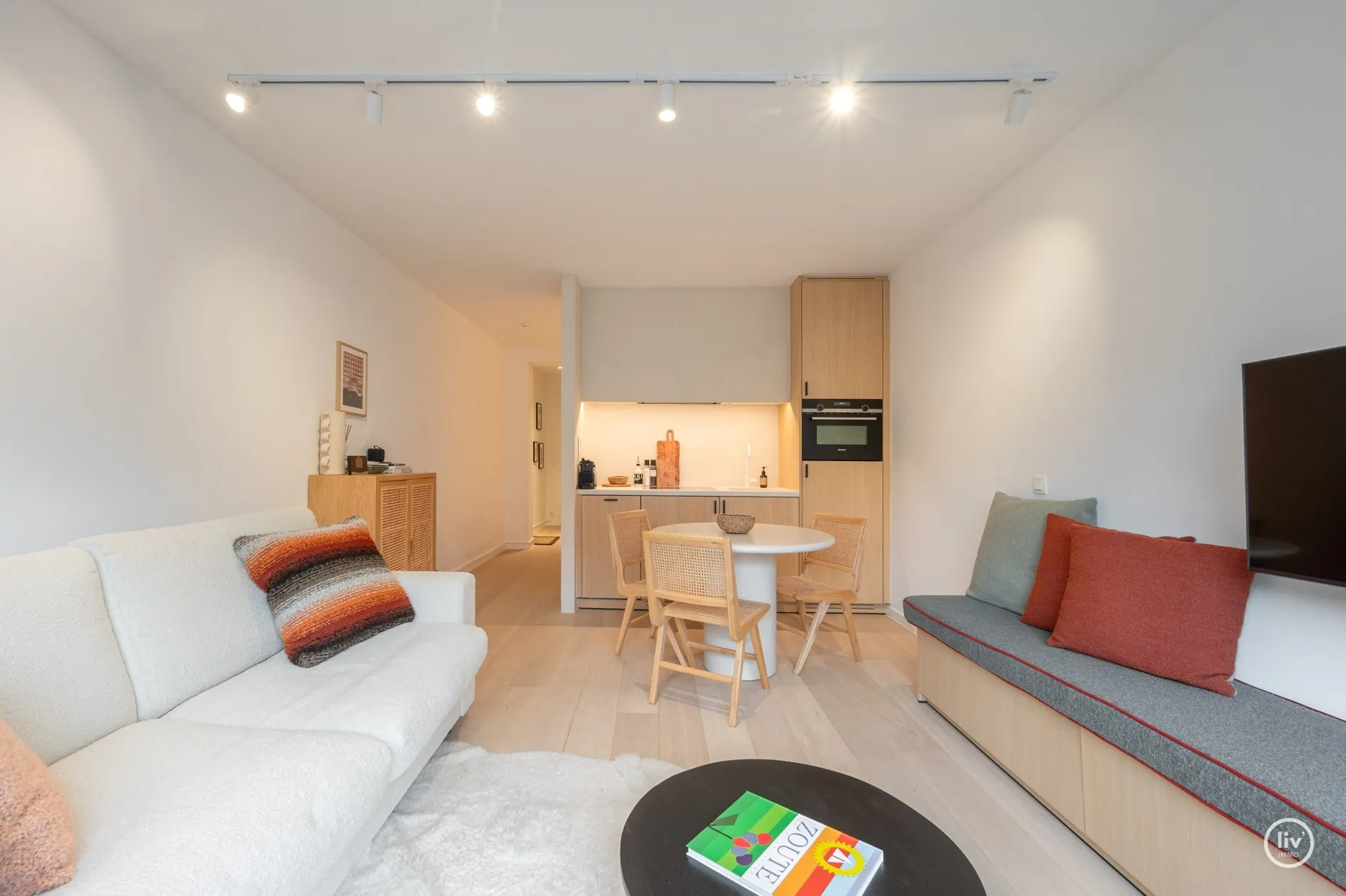 Kustlaan - Lippenslaan - Dumortierlaan & Zeedijk. Indeling: Inkom, lichtrijke woonkamer, open ingerichte keuken, badkamer met douche, slaaphoek, apart toilet.