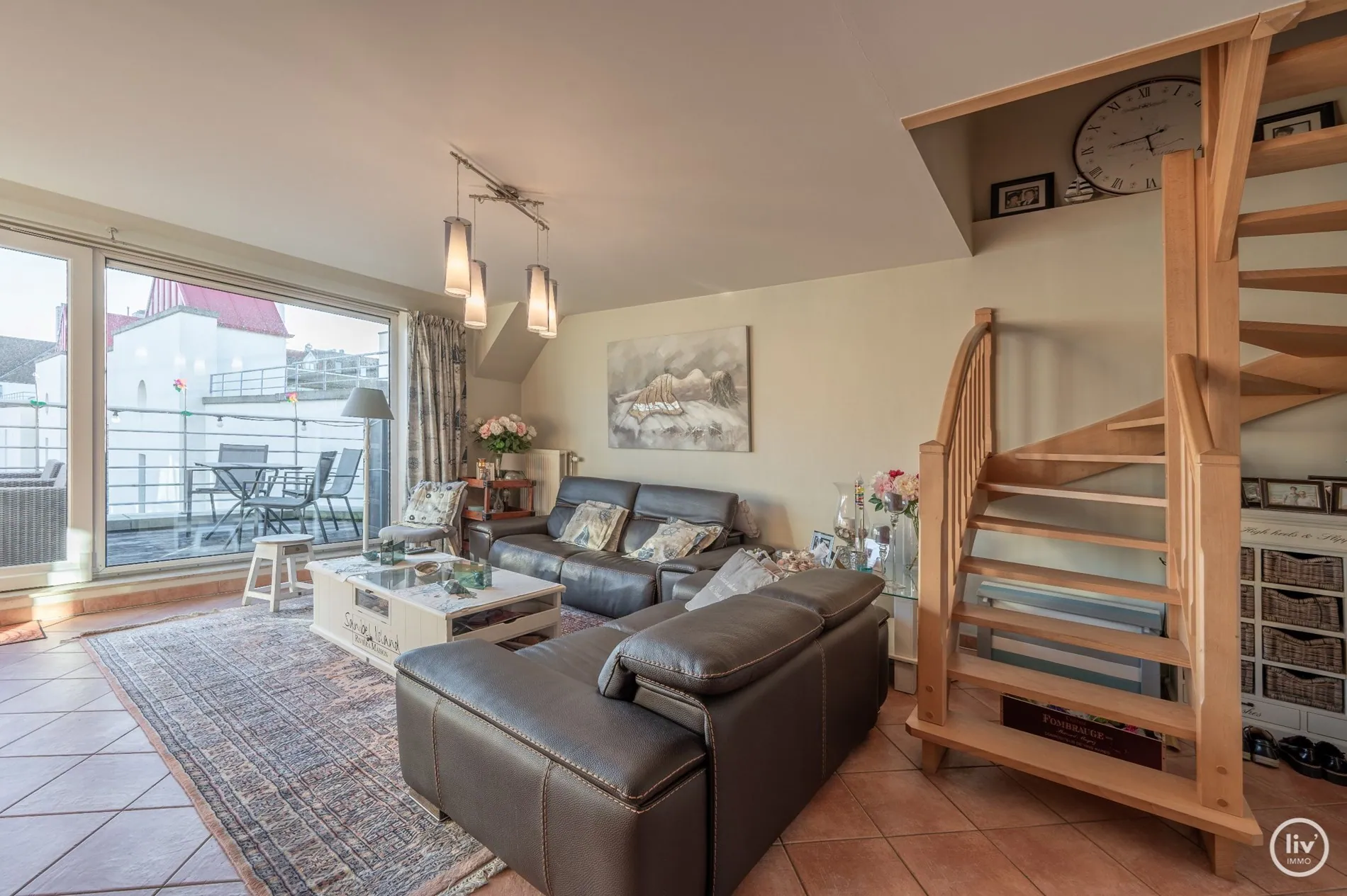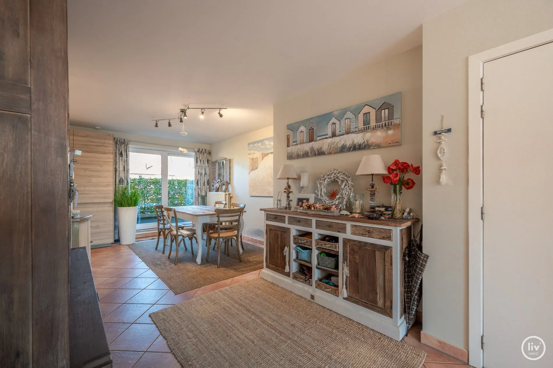 Ruim appartement met 3 slaapkamers en 2 badkamers in Knokke met open zicht in de straat.