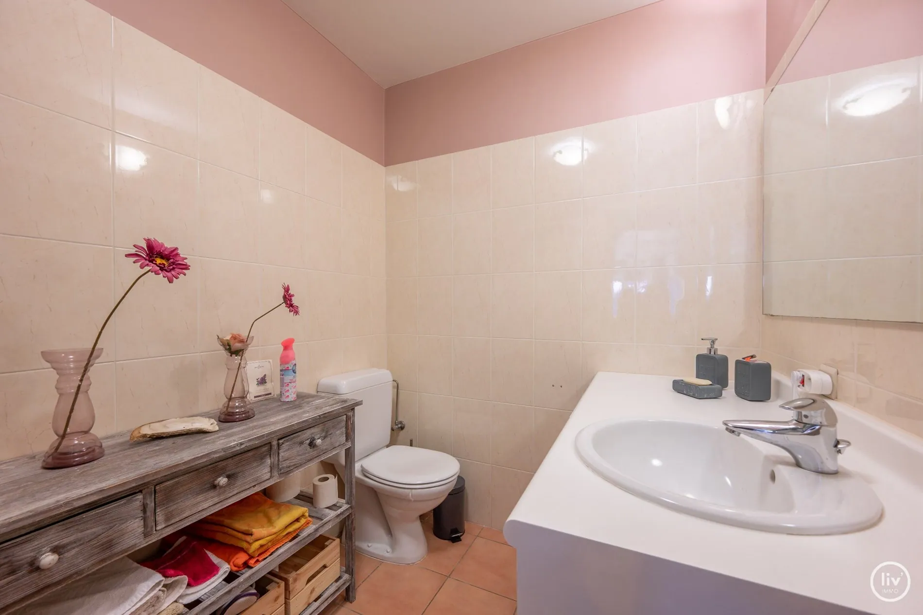 inkomhall met apart toilet, mooie ruime leefruimte met toegang tot het terras met open zicht in de straat. Het appartement beschikt over 3 slaapkamers en twee badkamers. Slaapkamer 1 en 2 met een aanpalende douchekamer, 3de slaapkamer (master) met aansluitende badkamer.