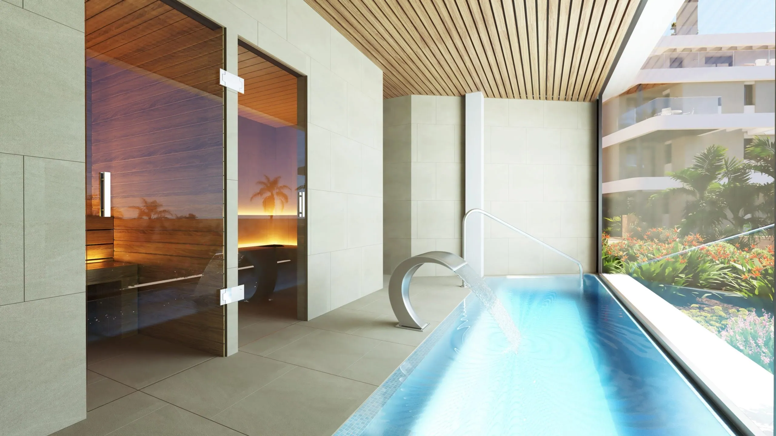 Hier hoef je het complex niet te verlaten om volop te genieten van de aangeboden luxe. Bezoek de fitnessruimte, kom tot rust bij één van de twee zwembaden of oefen je golfvaardigheden. De sport- en recreatiefaciliteiten bevinden zich centraal tussen de eerste drie blokken van de urbanisatie. Ontspanning wacht op je in de volledig uitgeruste gym, gevolgd door een verkwikkend bezoek aan de sauna of een luxe Hammam. Voor de golfliefhebbers is er een indoor golfsimulator, en na een intensieve workout kun je buiten ontspannen in de chill-outruimte, omringd door de serene natuur van de Calanova-heuvel. Een prachtig waterval die in het zwembad valt, biedt een betoverende achtergrond voor de rustieke omgeving.