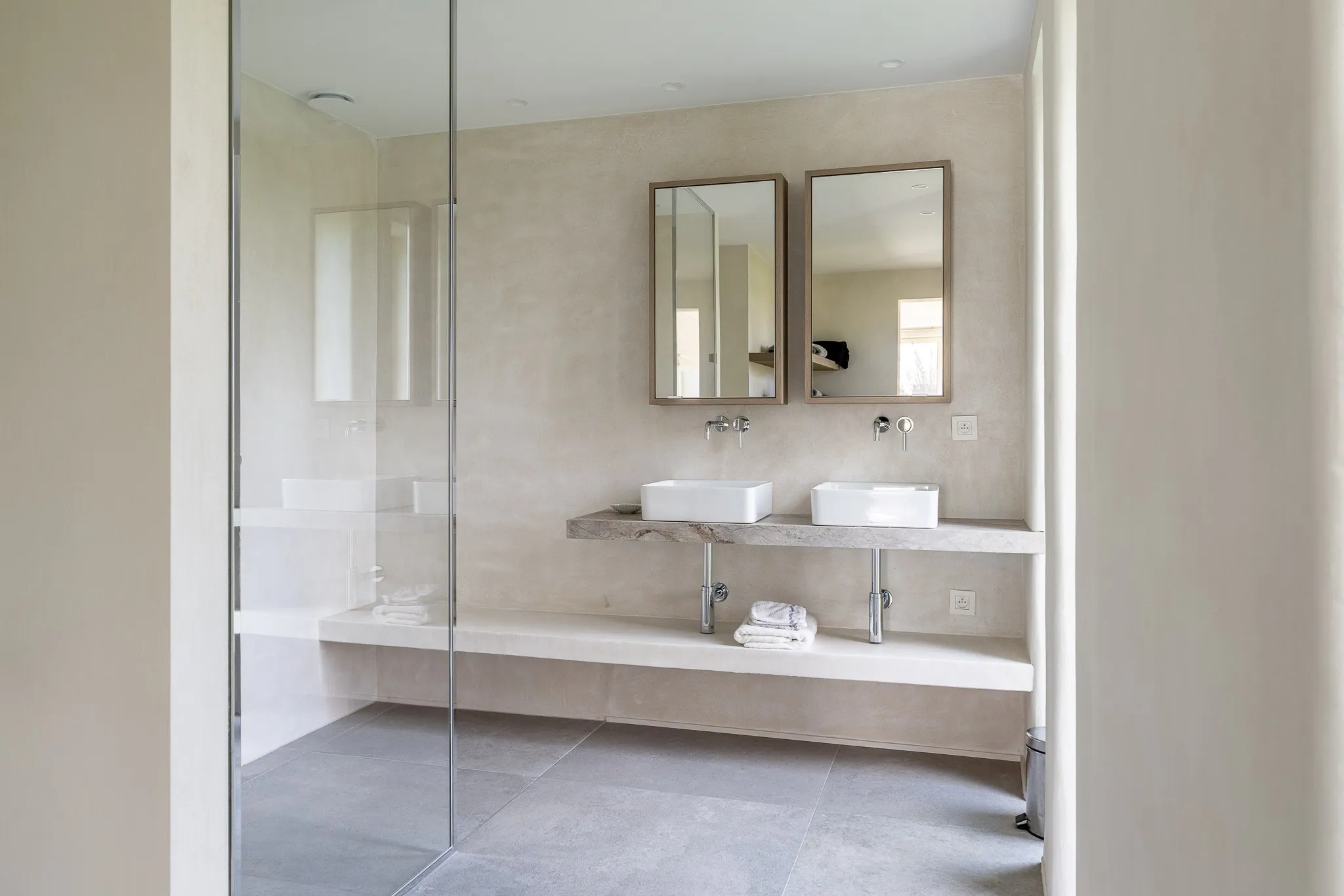 Op het verdiep bevinden zicht 3 slaapkamers, telkens voorzien van maatkasten, 3 badkamers en een doorgang tot een polyvalente ruimte/bureel voor vrije beroepen, ook te bereiken via een aparte toegang aan de zijkant van de woning.