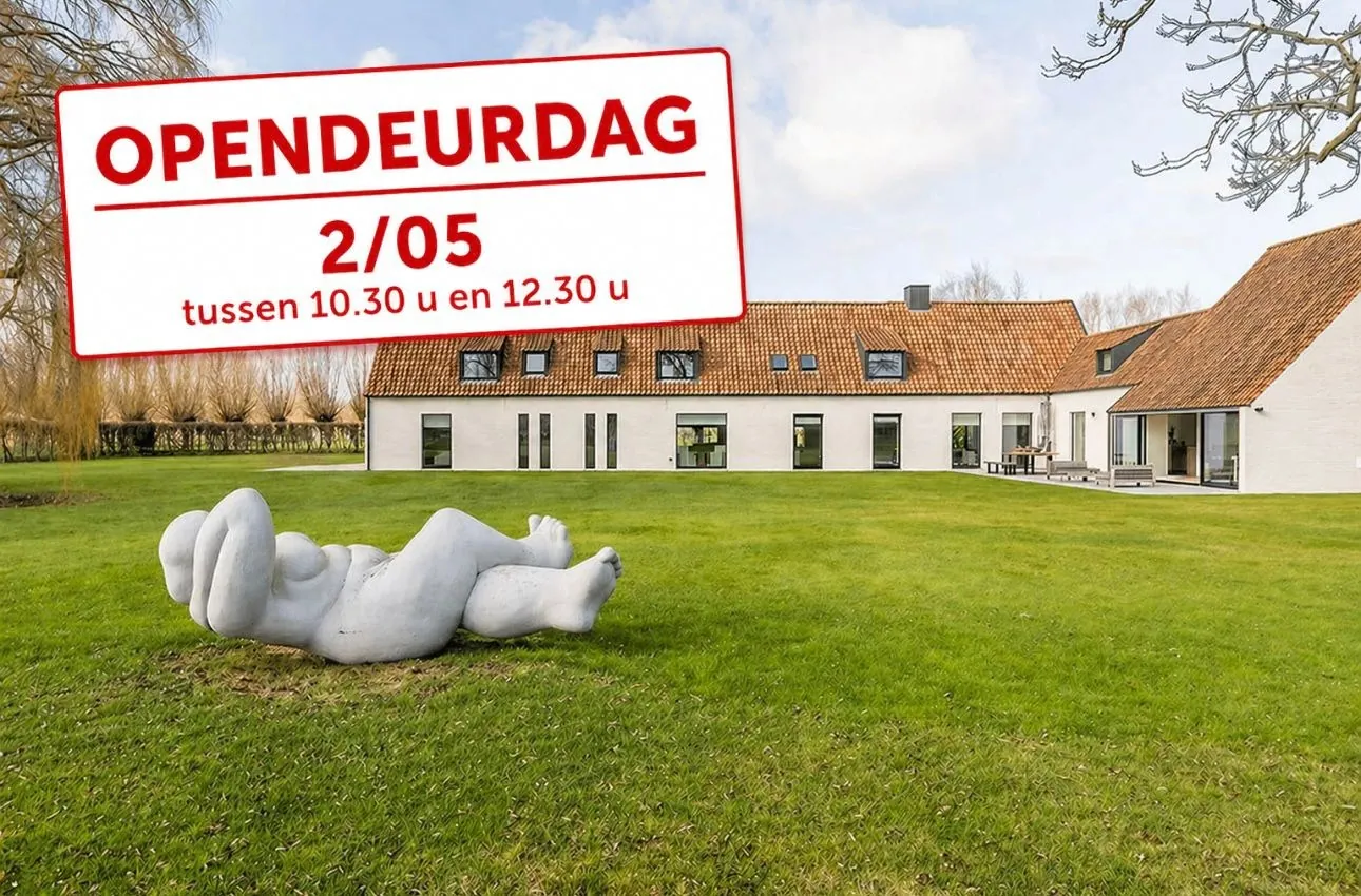 OPENDEURDAG Zaterdag 02/05 - 10u30 - 12u30 (Pereboomstraat 1 te Damme) : Uitzonderlijk gerenoveerde Hoeve met bijhuis op een domein van 1,5 hectare