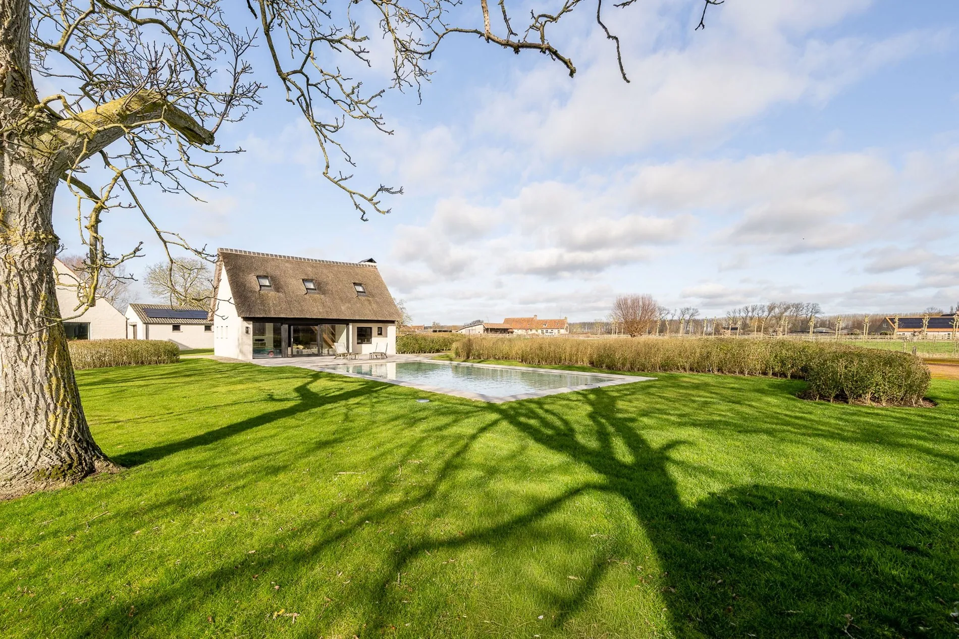 OPENDEURDAG Zaterdag 02/05 - 10u30 - 12u30 (Pereboomstraat 1 te Damme): Uitzonderlijk gerenoveerde hoeve met bijhuis op een domein van 1,5 hectare, gelegen in Oostkerke, tussen Knokke en Damme omgeven door open zichten en groen. Deze renovatie geniet van een prachtige afwerking en er werd gebruik gemaakt van luxueuze materialen. Extra troeven van dit domein : Tennisterrein , volledig ingerichte Poolhouse , verwarmd zwembad van 25 meter ( Willy Naessens) , prachtig aangelegde tuin, paardenweide.