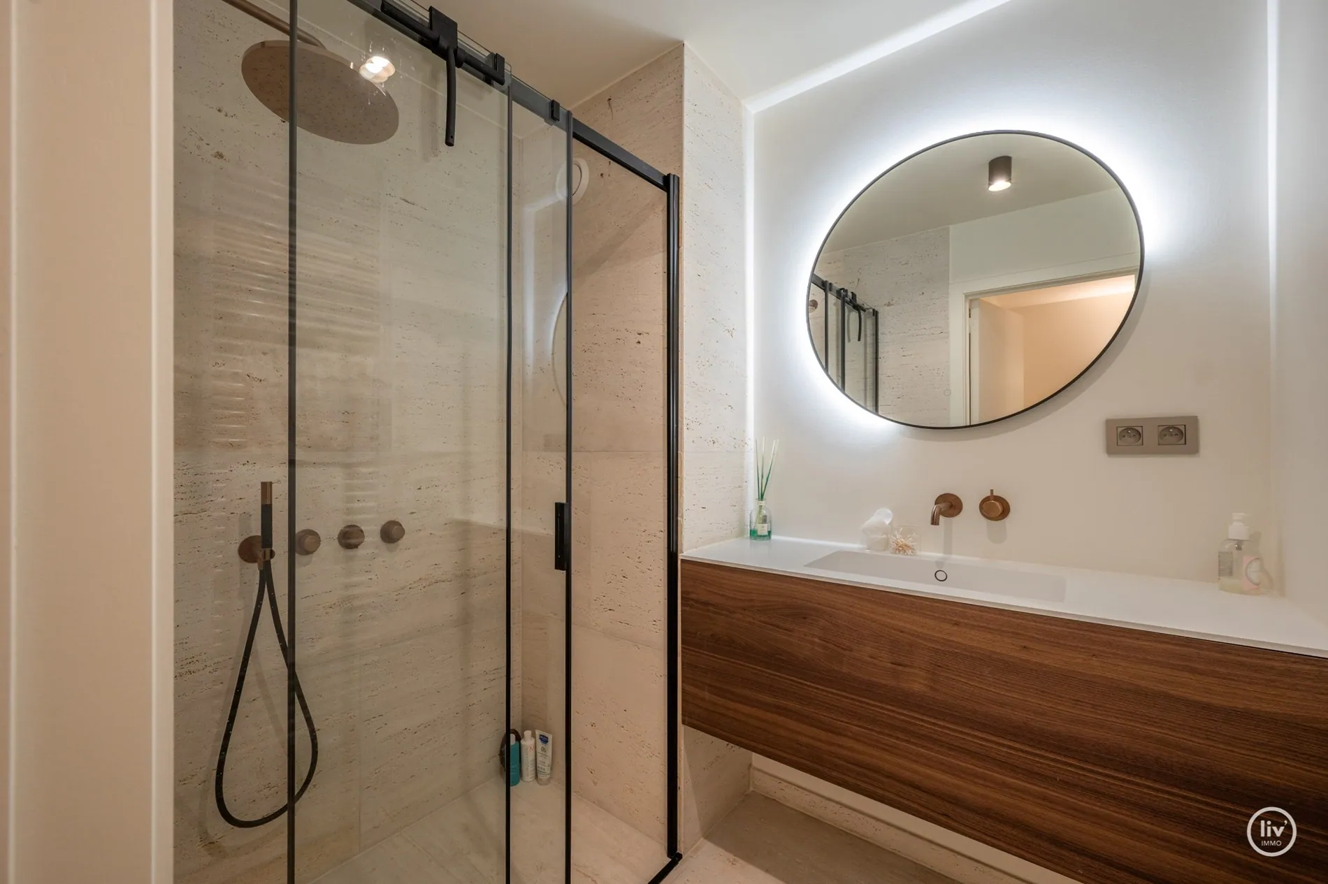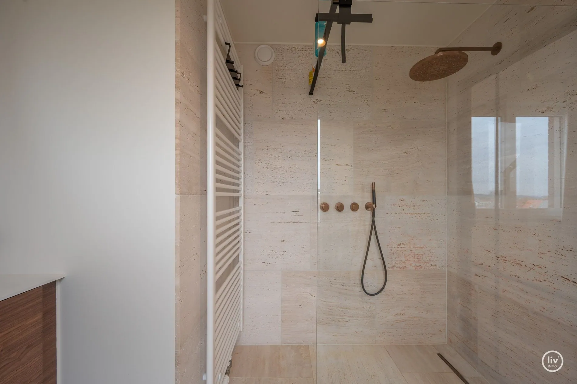 op de verdieping: 3 slaapkamers met een buitenraam en ingemaakte kasten, 2 moderne doucheruimtes.