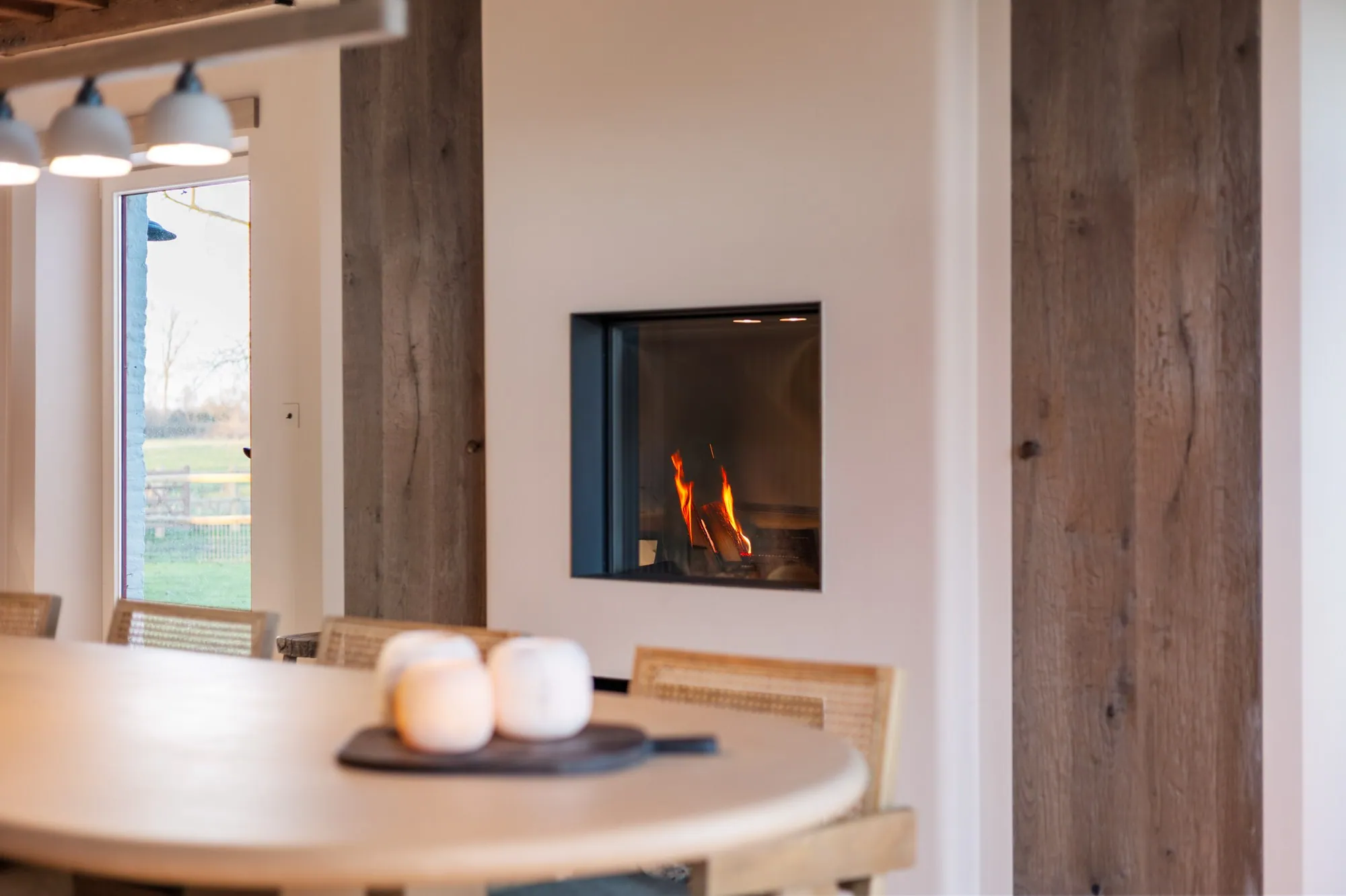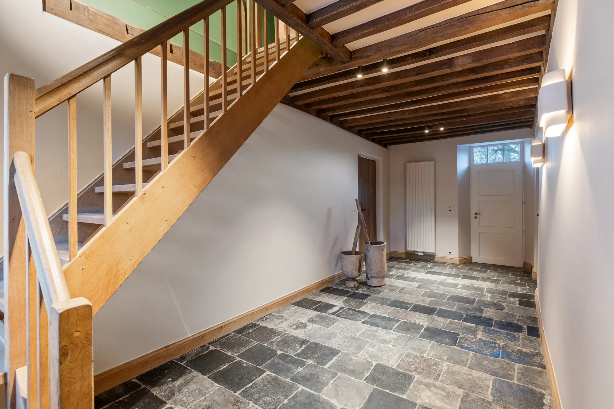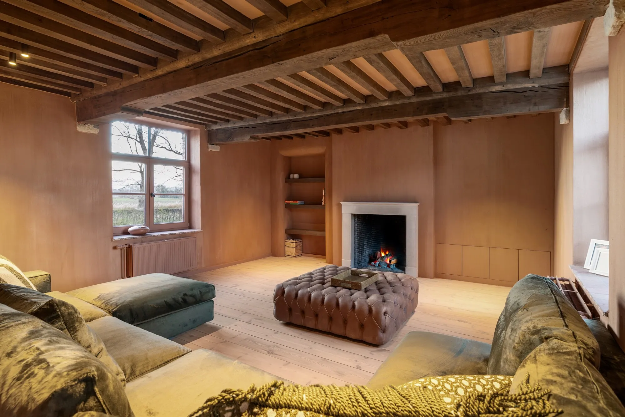 U wordt verwelkomd in een ruime inkomhal met apart gastentoilet en vestiaireruimte. De leefruimtes ademen warmte en gezelligheid uit dankzij meerdere open haarden en een doordachte indeling:
