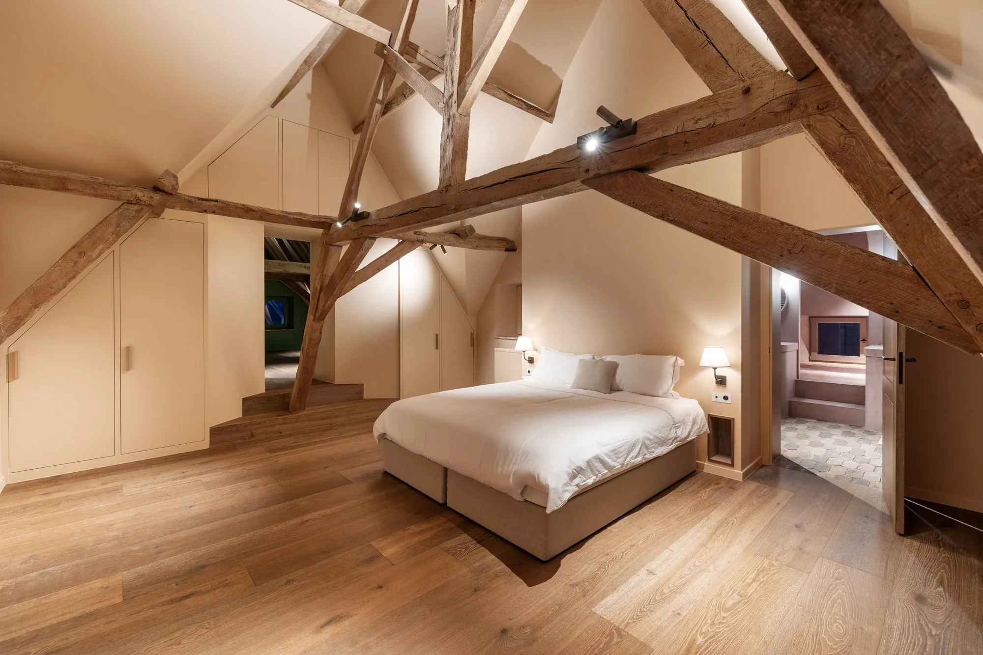 Alle kamers beschikken over ingemaakte kasten en genieten van een gevoel van ruimte en rust. De volledige renovatie gebeurde met respect voor authentieke elementen die zo typerend zijn voor een hoeve.
