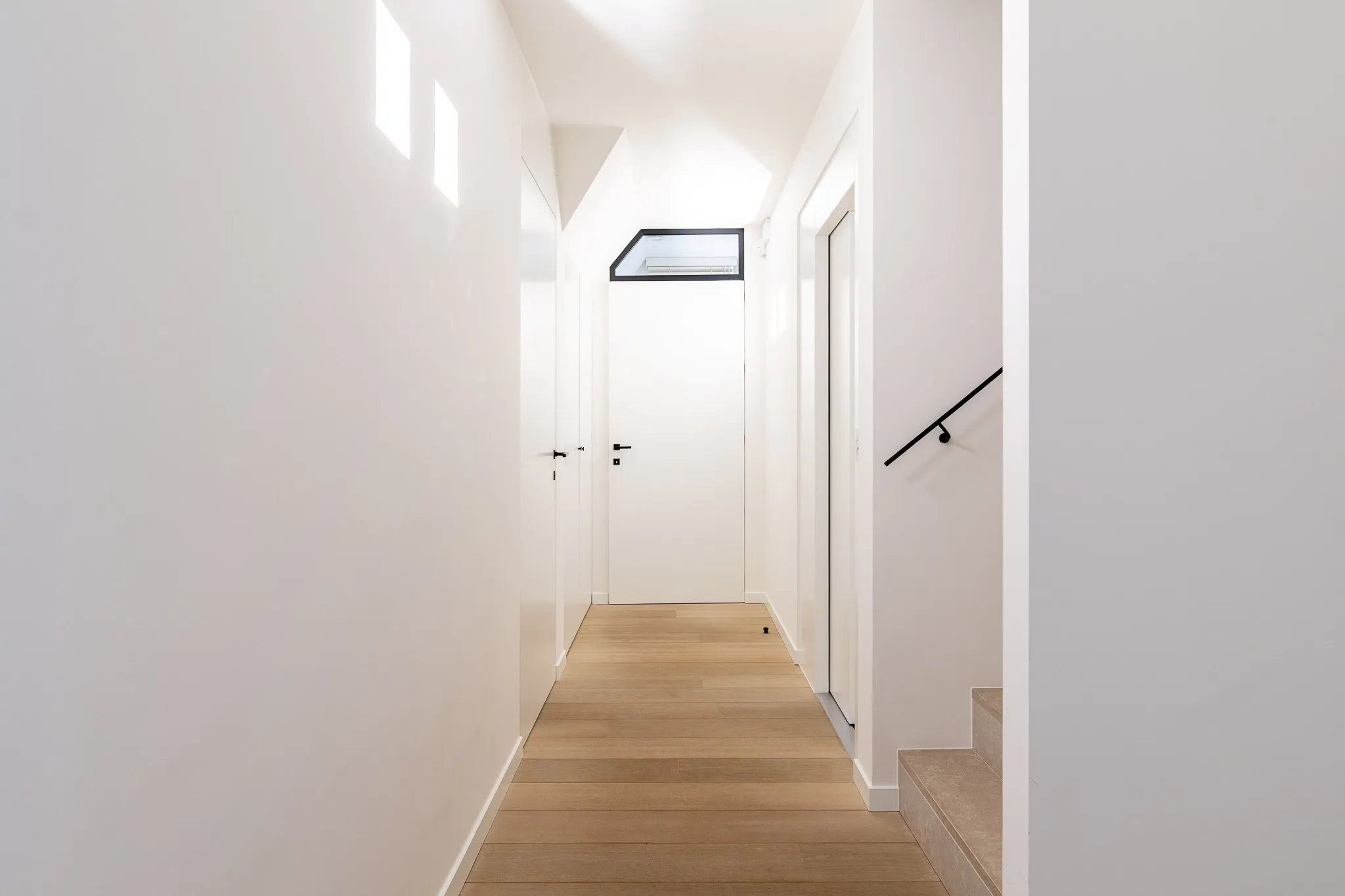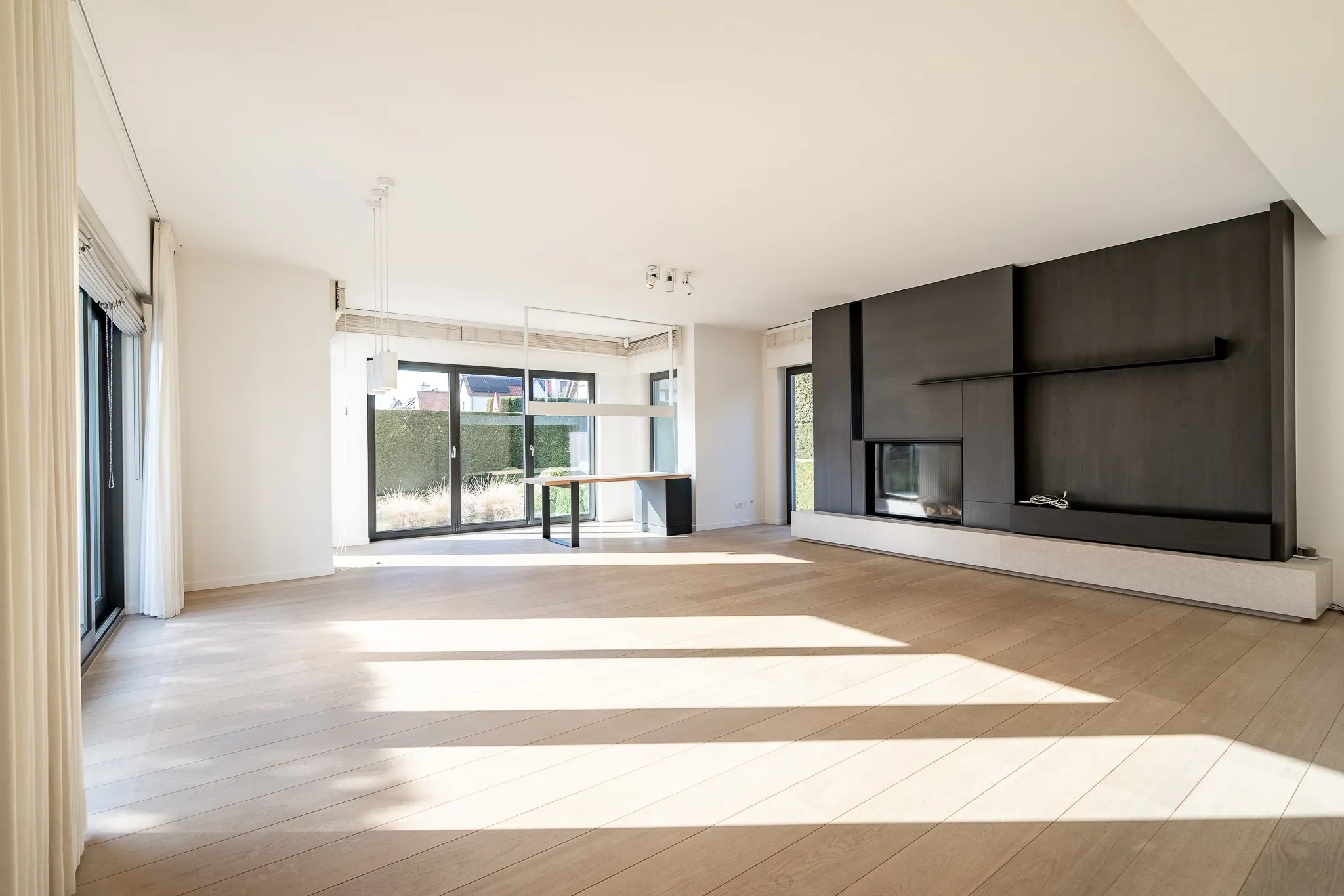 Indeling woning : Inkomhal met vestiaire en gastentoilet, wasruimte, gang die leidt tot de lichtrijke living met gashaard en uitsprong die kan dienen voor een bureau, aansluitend de ruime leefruimte, met opnieuw een gashaard, telkens omgeven door grote raampartijen waardoor de tuin steeds goed zichtbaar blijft, volwaardige keuken met alle comfort en voorzien van alle toestellen met zélf een inloopfrigo. Eerste verdieping : Eerste volwaardige slaapkamer , tweede volwaardige slaapkamer met gemeenschappelijke badkamer. Master bedroom met ruime dressing en extra kastenwand, ensuite badkamer met bad, douche, dubbele lavabo en toilet. Alle slaapkamers zijn voorzien van ruime ingebouwde kasten. Telkens ook toegang tot terrassen via de slaapkamers op het eerste verdiep. Tweede verdieping : vrije invulling met genoeg ruimte voor eventueel een vierde slaapkamer en polyvalente ruimte. Alle nutsvoorzieneningen zijn voorzien. Belangrijke extra's : Alarminstallatie , centraal stofzuigsysteem, Lift die gaat van -1 tot 1, warmtepomp, zonnestore terras, perfect aangelegde tuin.