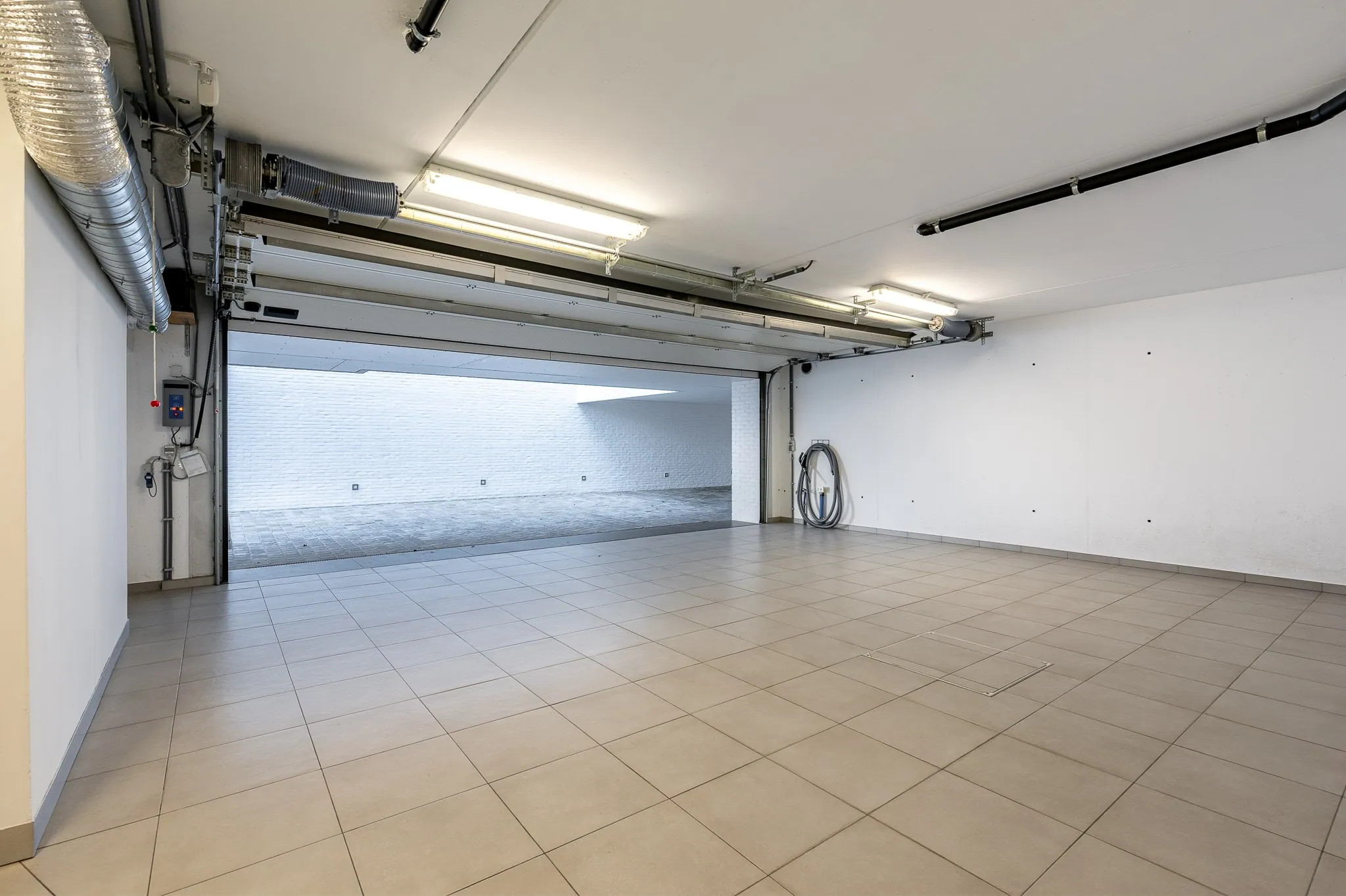 Terrein van de villa is volledig afgesloten met een automatische buitenpoort en heeft ook toegang via een afzonderlijke deur. Verwarmde en verlichte opricht die toegang biedt tot een overdekte parkeerplaats met ruimte voor 2 wagens en vervolgens de garage die ruimte biedt voor 4 wagens. Plaats voor één wagen op het gelijkvloerse verdiep. De tuin is voorzien van besproeiing en verlichting. Er is ook een volledige afspanning en planten/bomen waardoor er een absolute privacy is.