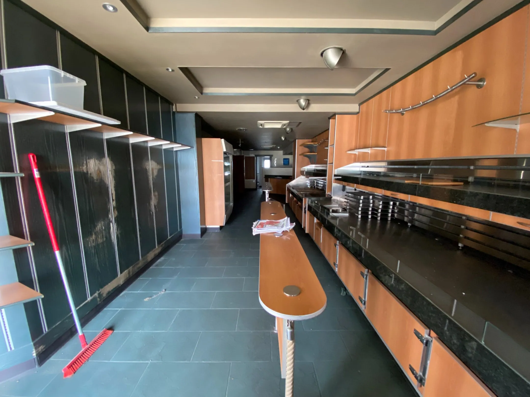 Ruime commerciële handelsruimte, achtergelegen keuken, berging en bureel.