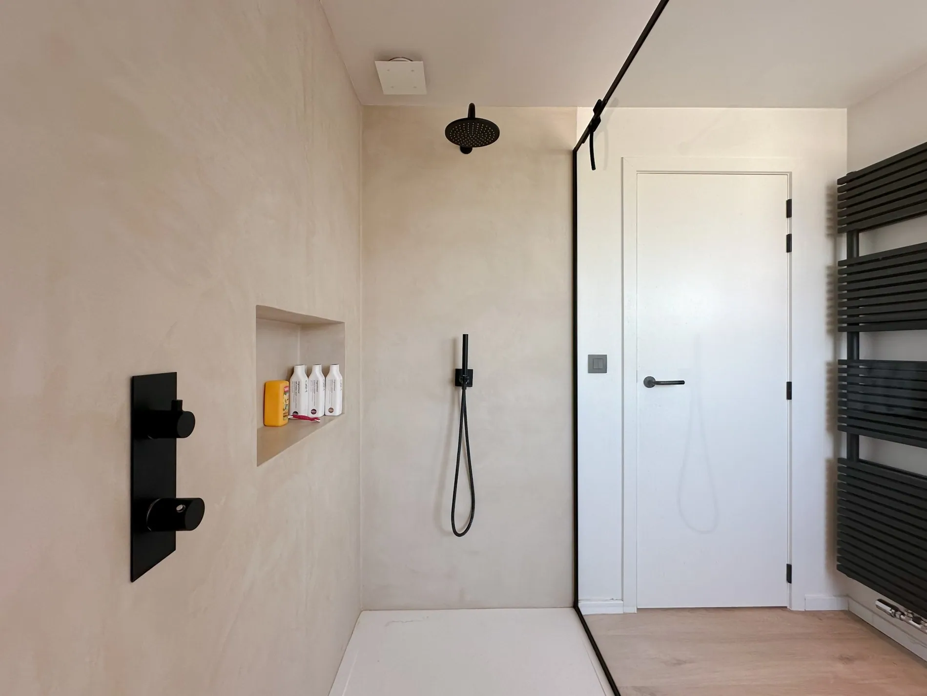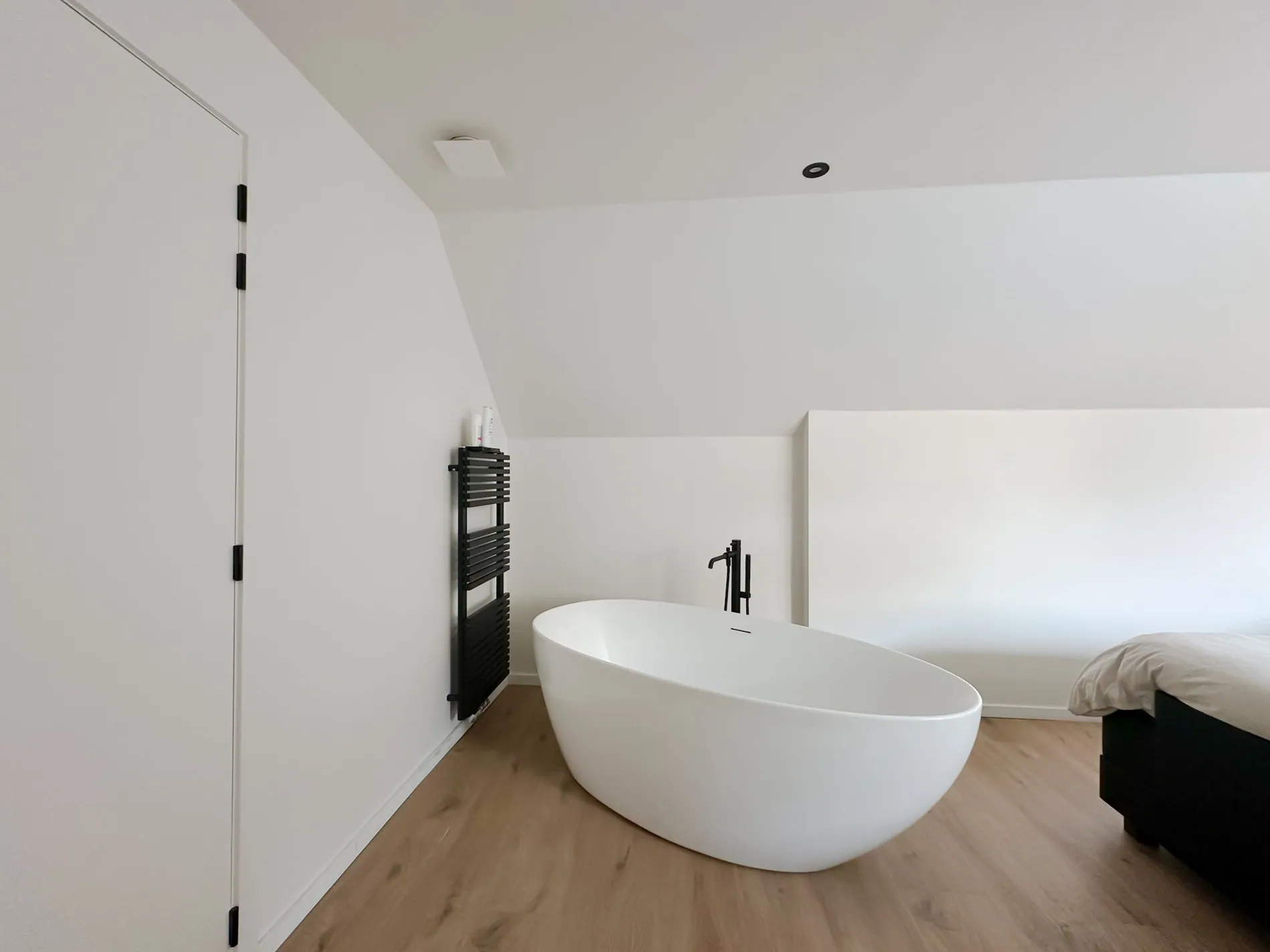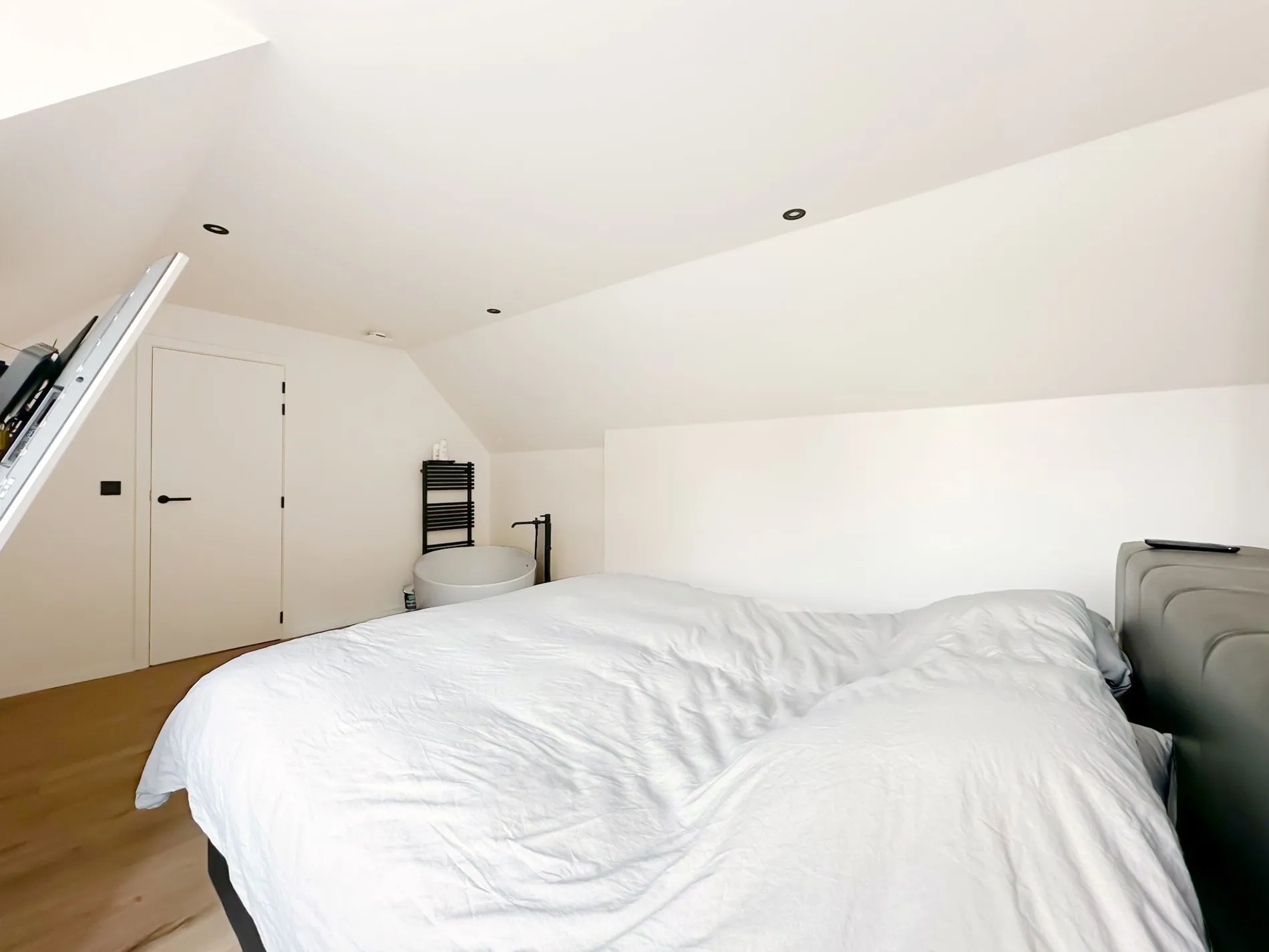 Verdieping: 3 volwaardige slaapkamers met rolluiken waarvan de masterbedroom met mooie dressing en ligbad, ruime badkamer in mortex met dubbele lavabo inloopdouche en toilet.
