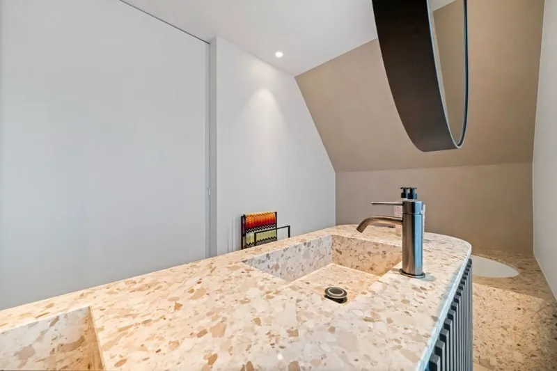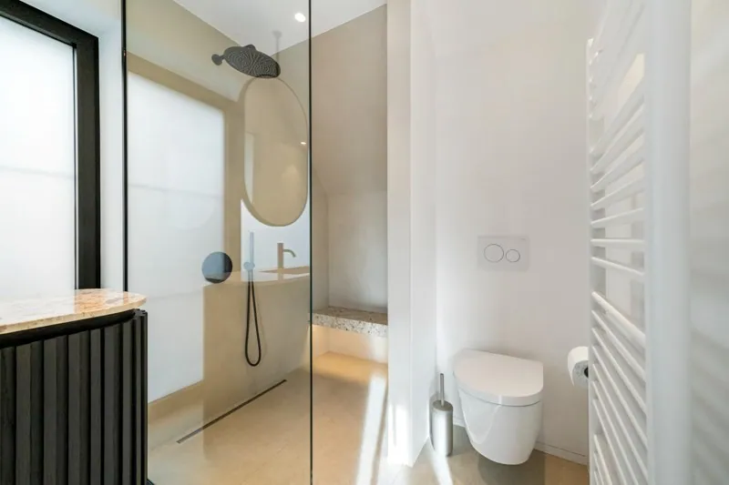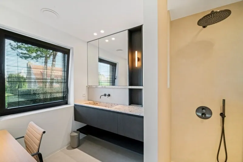 Eerste verdieping : 4 volwaardige slaapkamers waarvan 2 hun eigen bad- of douchekamer. Slaapkamers 3 en 4 delen een douchekamer.