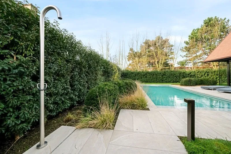 Prachtig aangelegd terras en tuin met zwembad.
