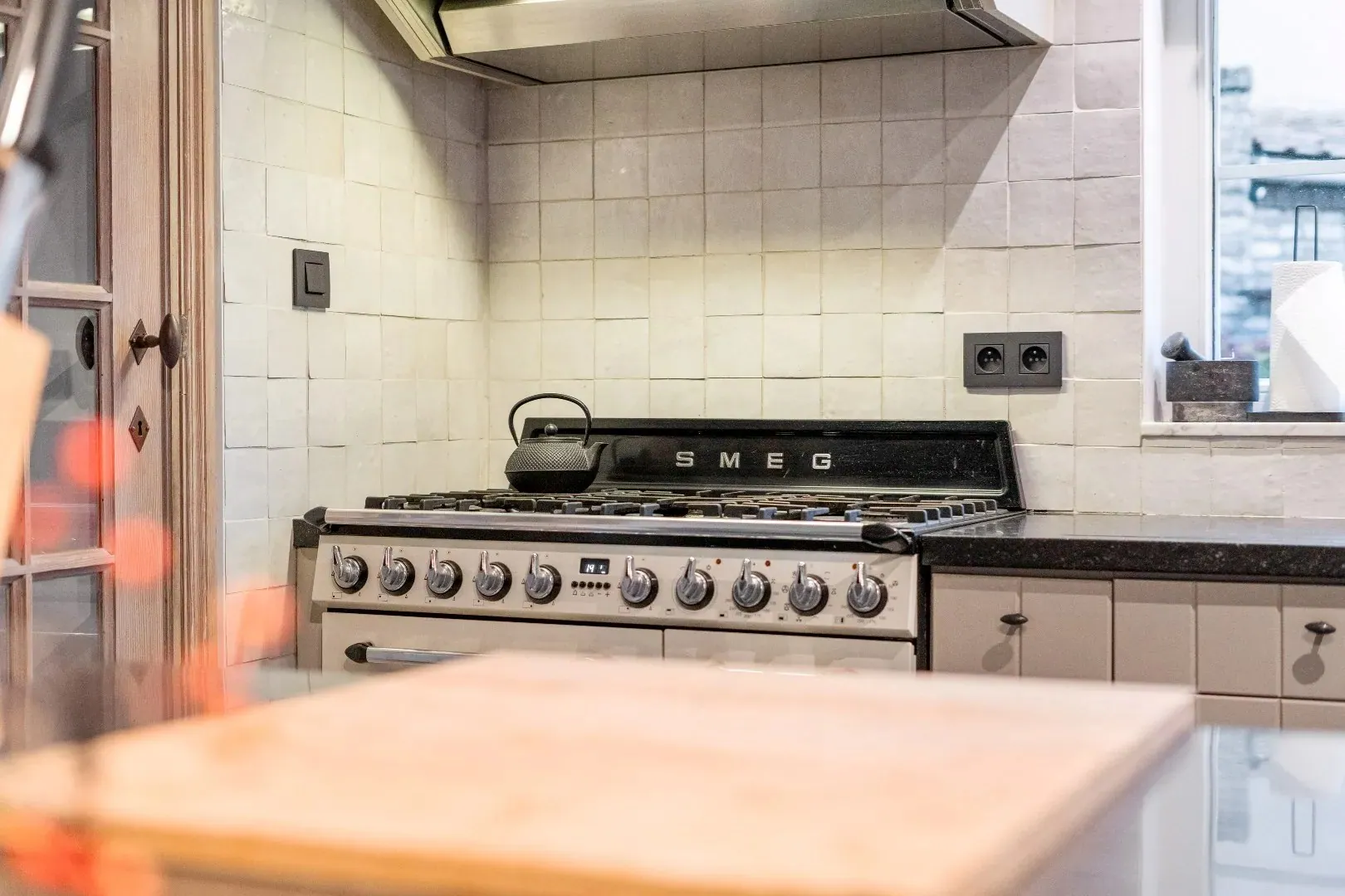- Ruime leefkeuken met kwaliteitsfornuis van SMEG,