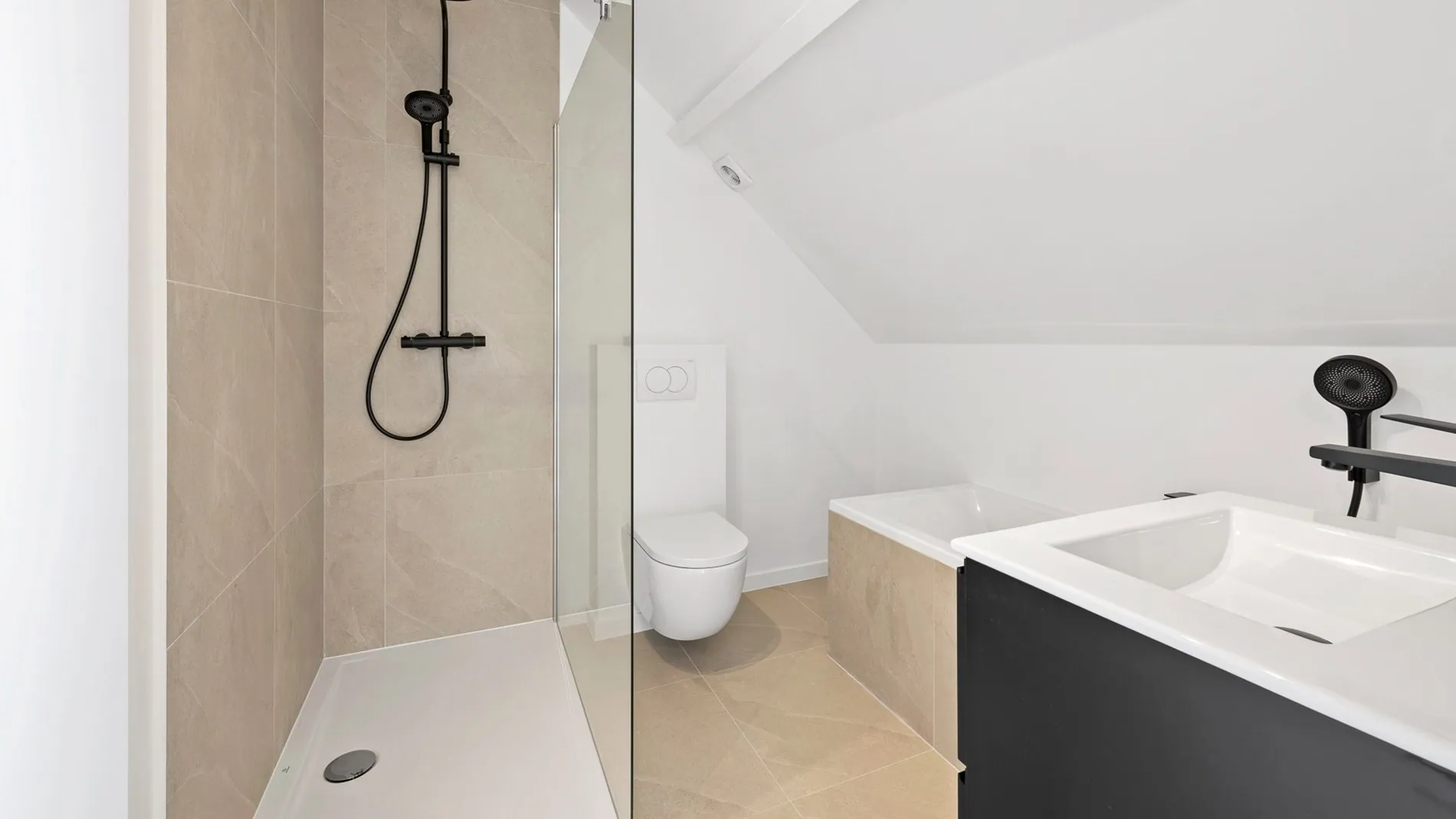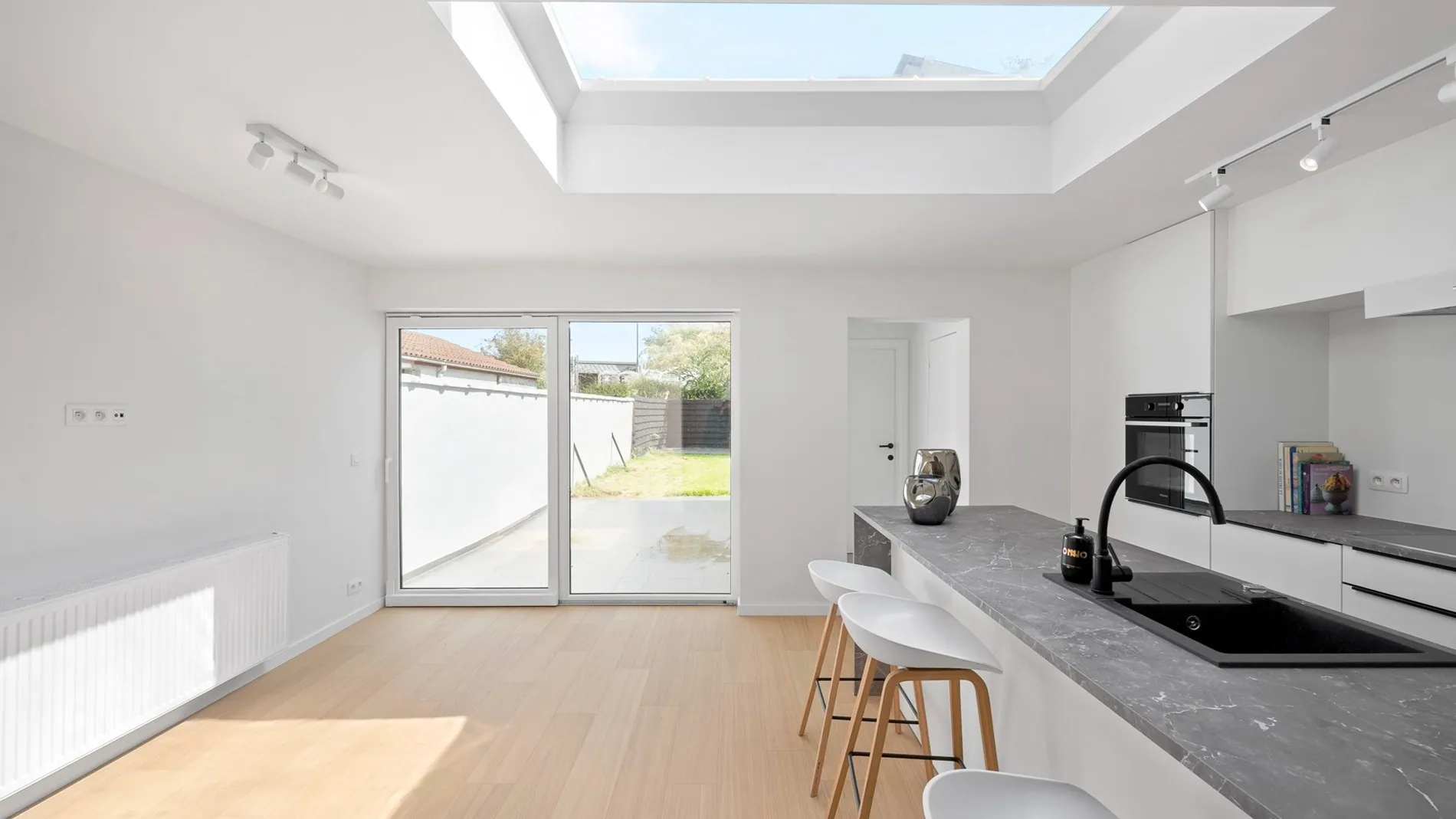 De woning beschikt over 3 ruime slaapkamers, 2 afgewerkte badkamers en een lichtrijke leefruimte met open leefkeuken voorzien van alle comfort.
