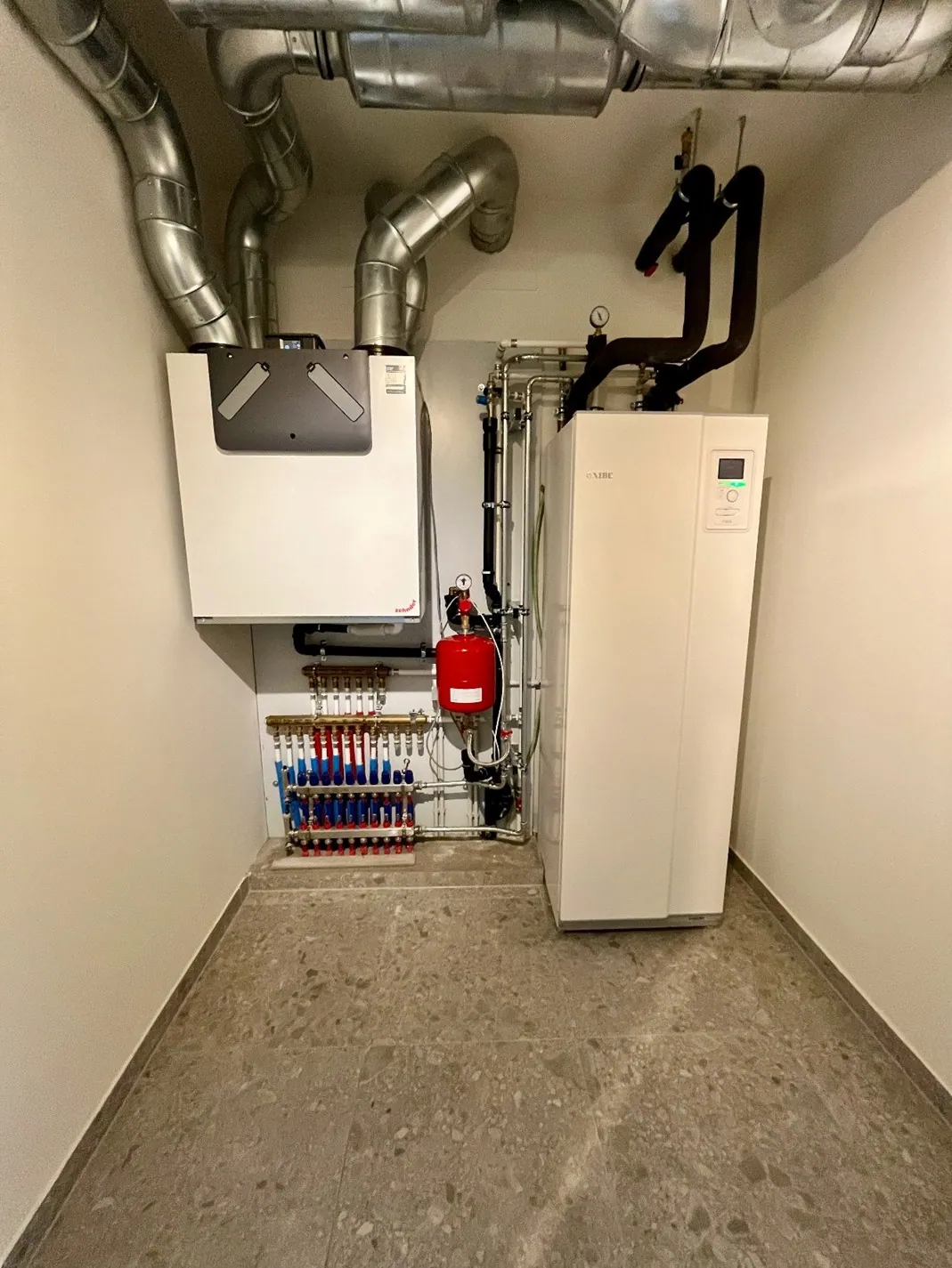 En ce qui concerne les équipements, l'immeuble est doté d'une finition moderne et est également équipé d'une pompe à chaleur en combinaison avec la géothermie. La propriété a déjà été peinte et est également équipée de tringles à rideaux. Des armoires encastrées ont été installées dans le hall d'entrée.