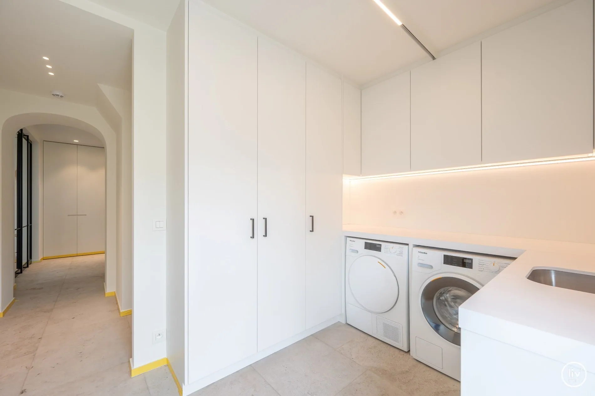 Cuisine entièrement équipée avec coin petit-déjeuner. Buanderie.