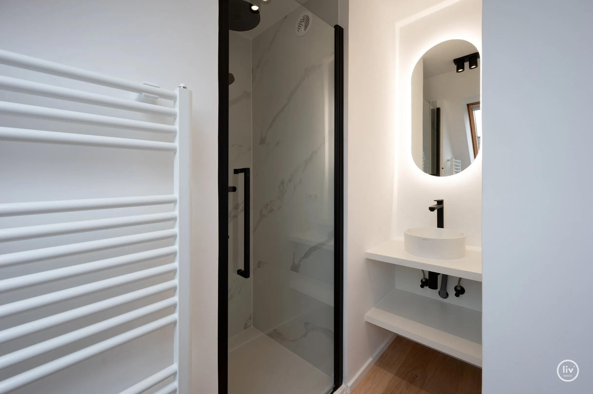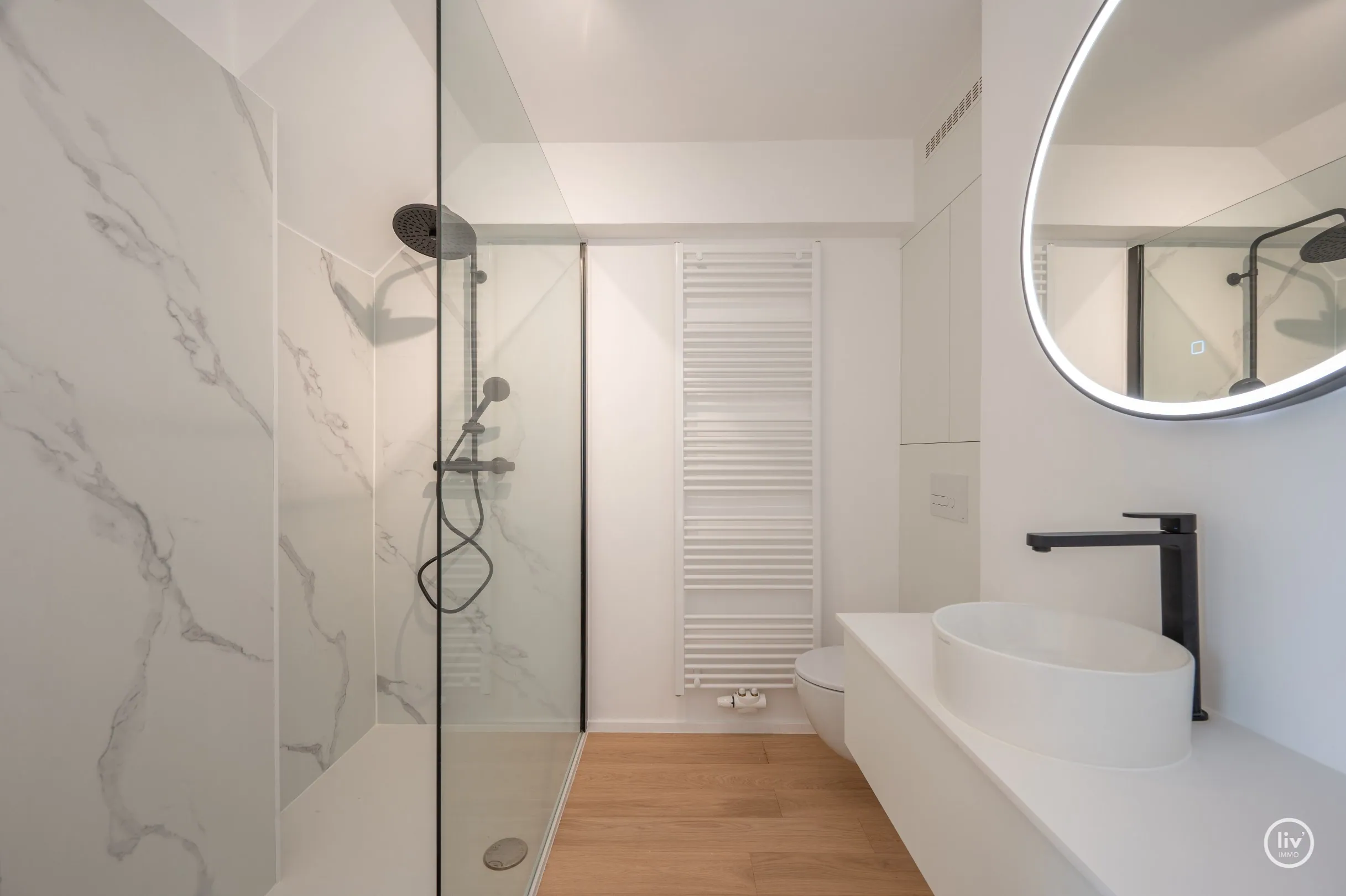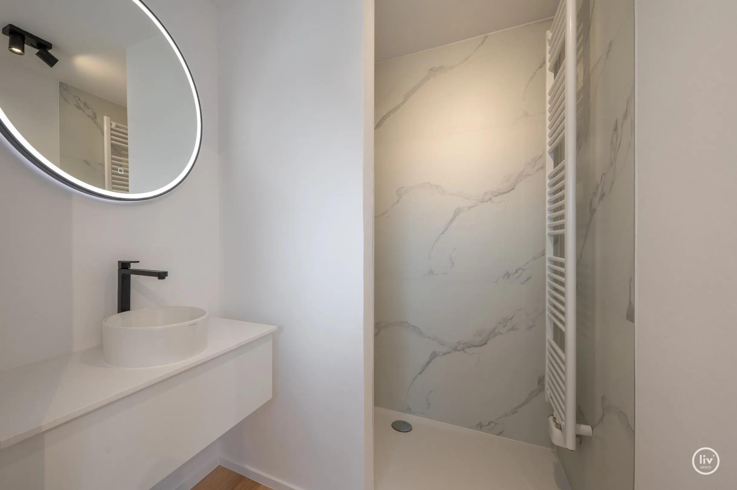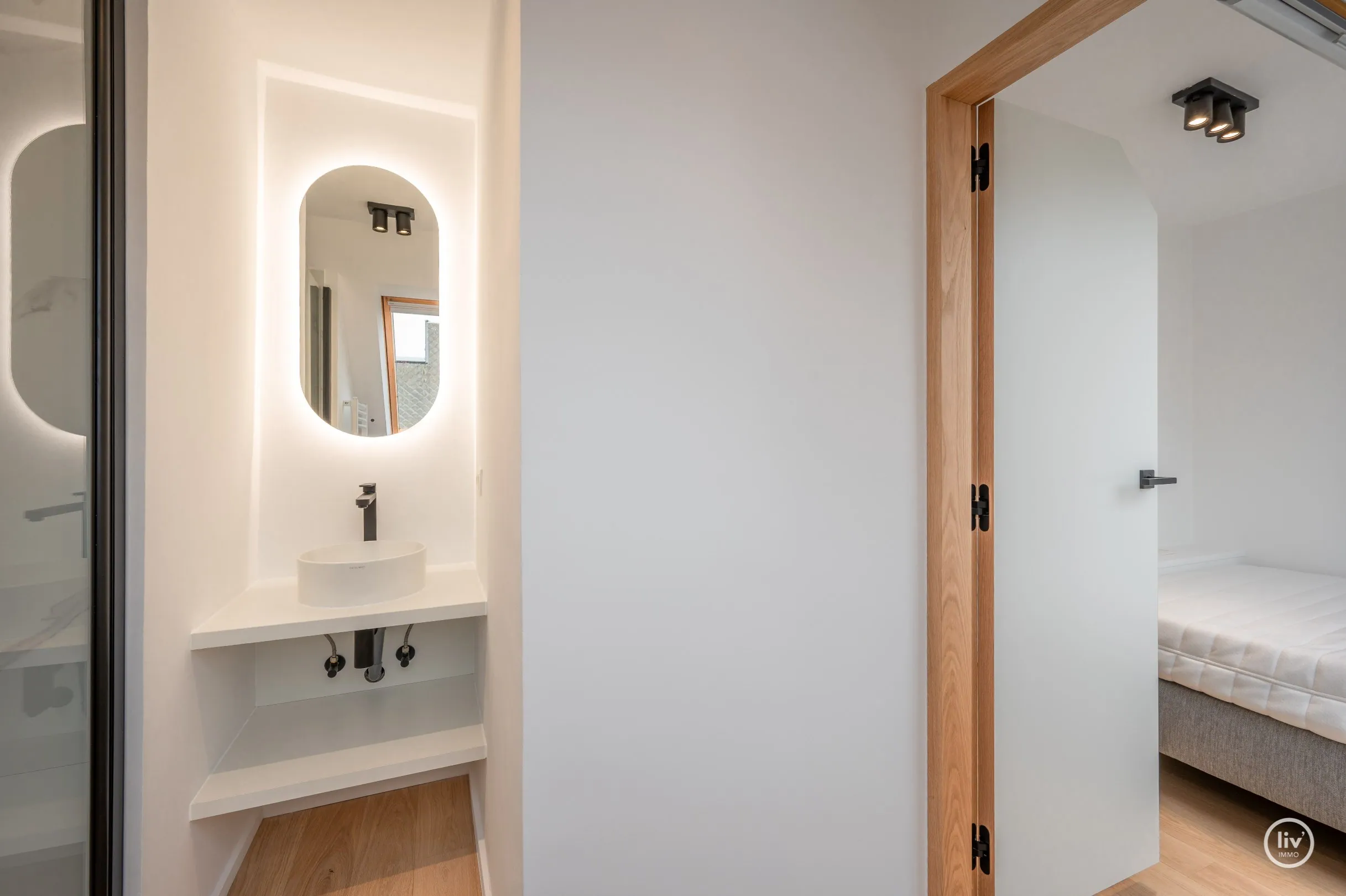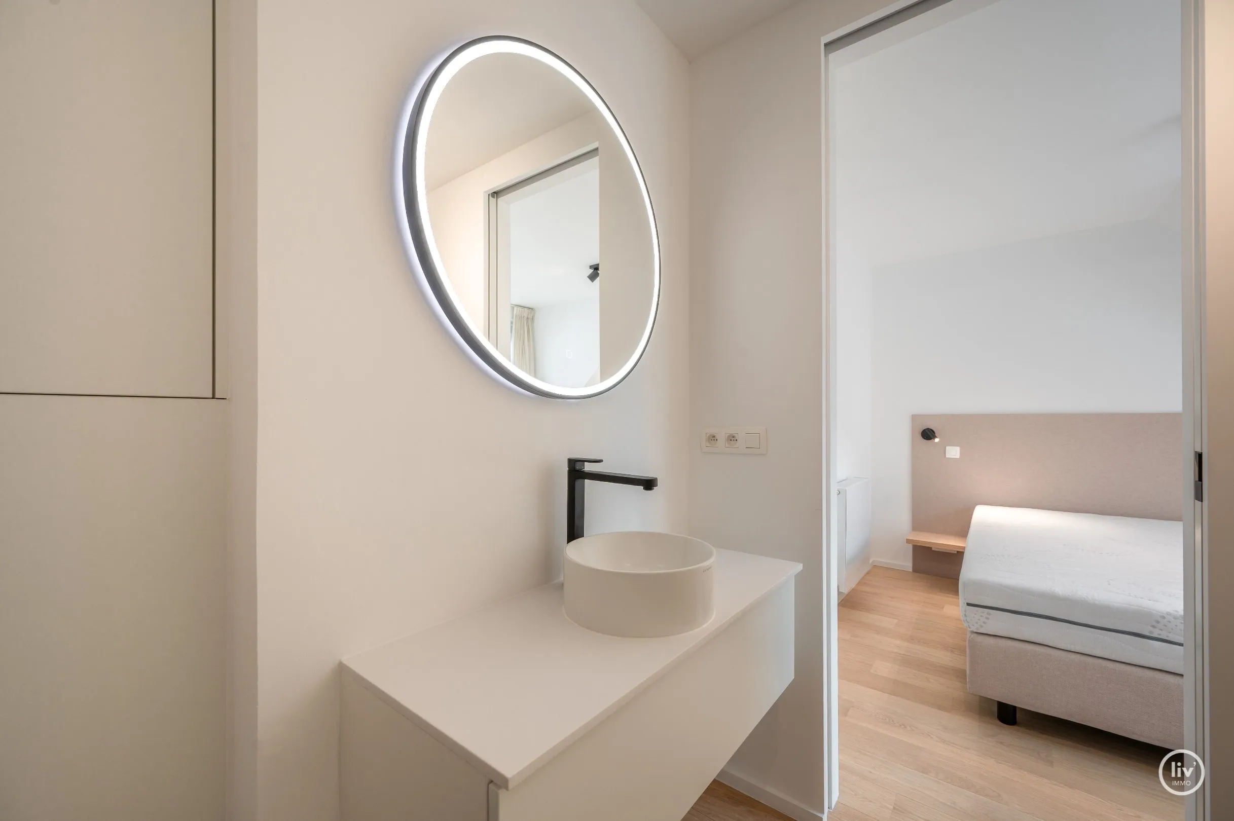Disposition : Salon lumineux donnant sur une grande terrasse ensoleillée avec une belle vue sur le mini-golf. Cuisine ouverte entièrement équipée. Grand débarras. Toilettes séparées. Chambre 1 avec salle de douche attenante et dressing. Terrasse à l'arrière. À l'étage : chambre 2 avec de la place pour deux lits doubles et des placards intégrés. Salle de douche avec lavabo et toilettes. Débarras. Troisième chambre à coucher complète avec salle de douche attenante. Cave dans l'immeuble.