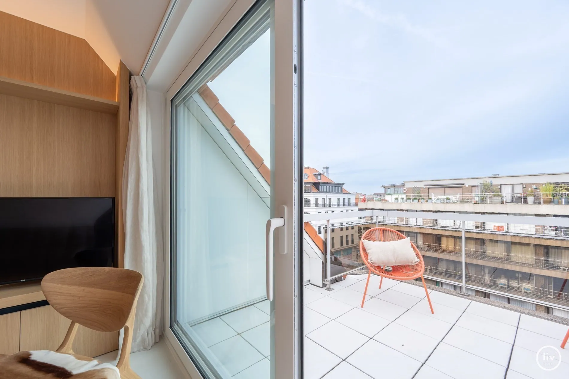 Superbe appartement en duplex magnifiquement rénové avec une spacieuse terrasse orientée vers l'ouest, situé sur la Lippenslaan à Knokke.