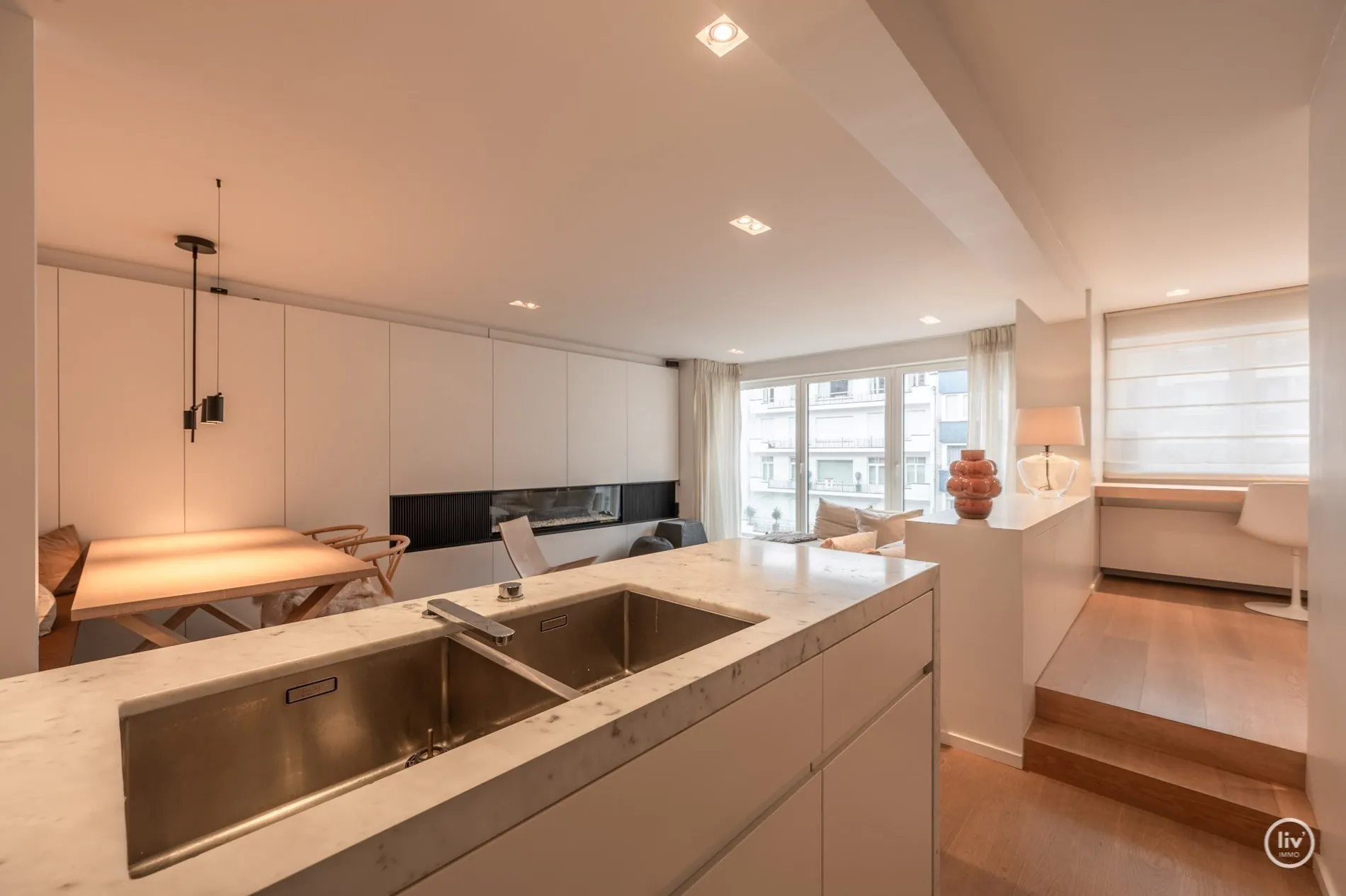 Bel appartement rénové, spacieux avec 2 chambres et une belle largeur de façade, situé au centre de l'avenue Lippens à Knokke.