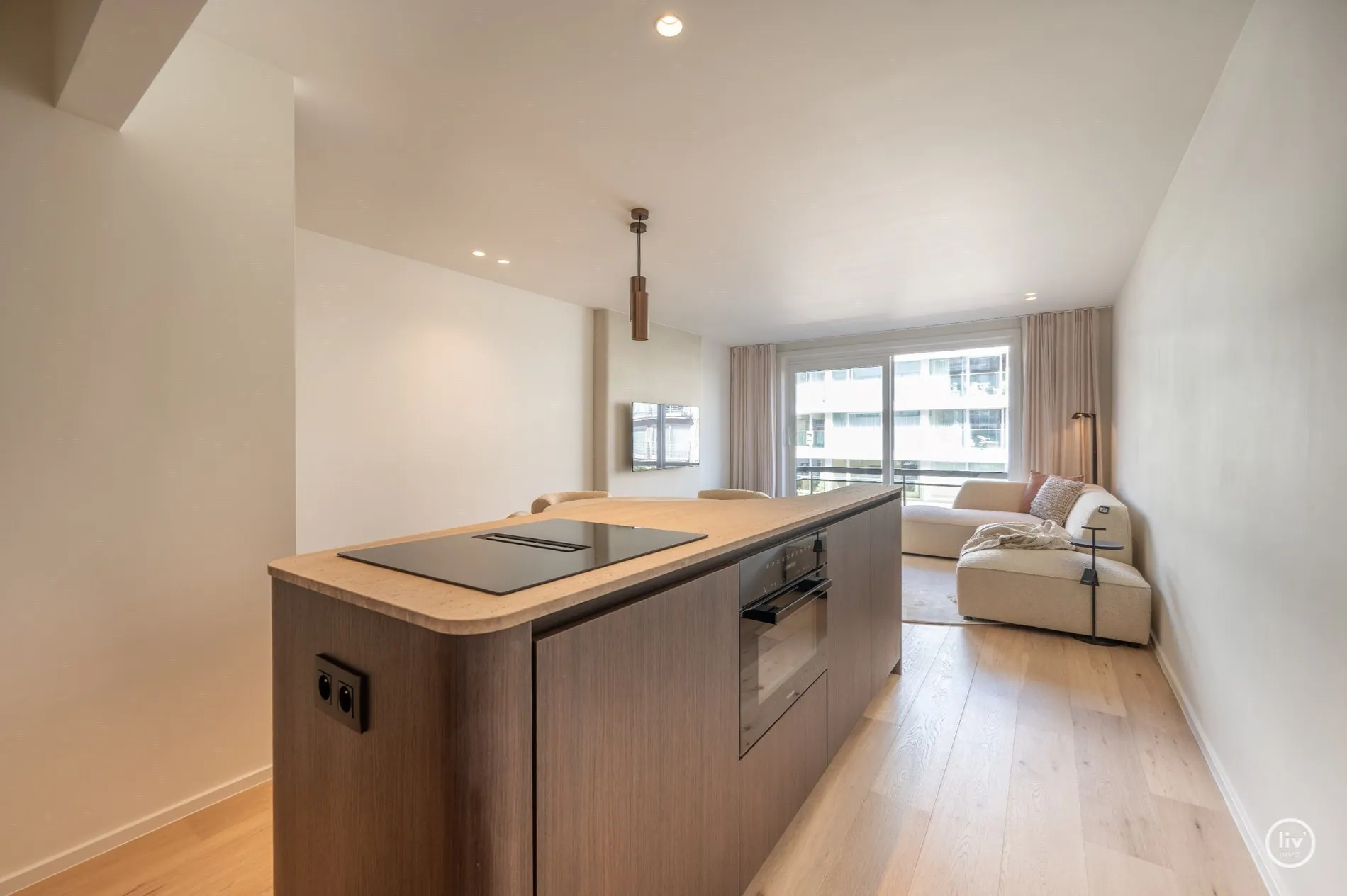 Appartement entièrement rénové avec terrasse situé sur l'avenue Lippens, près de la place Van Bunnen.