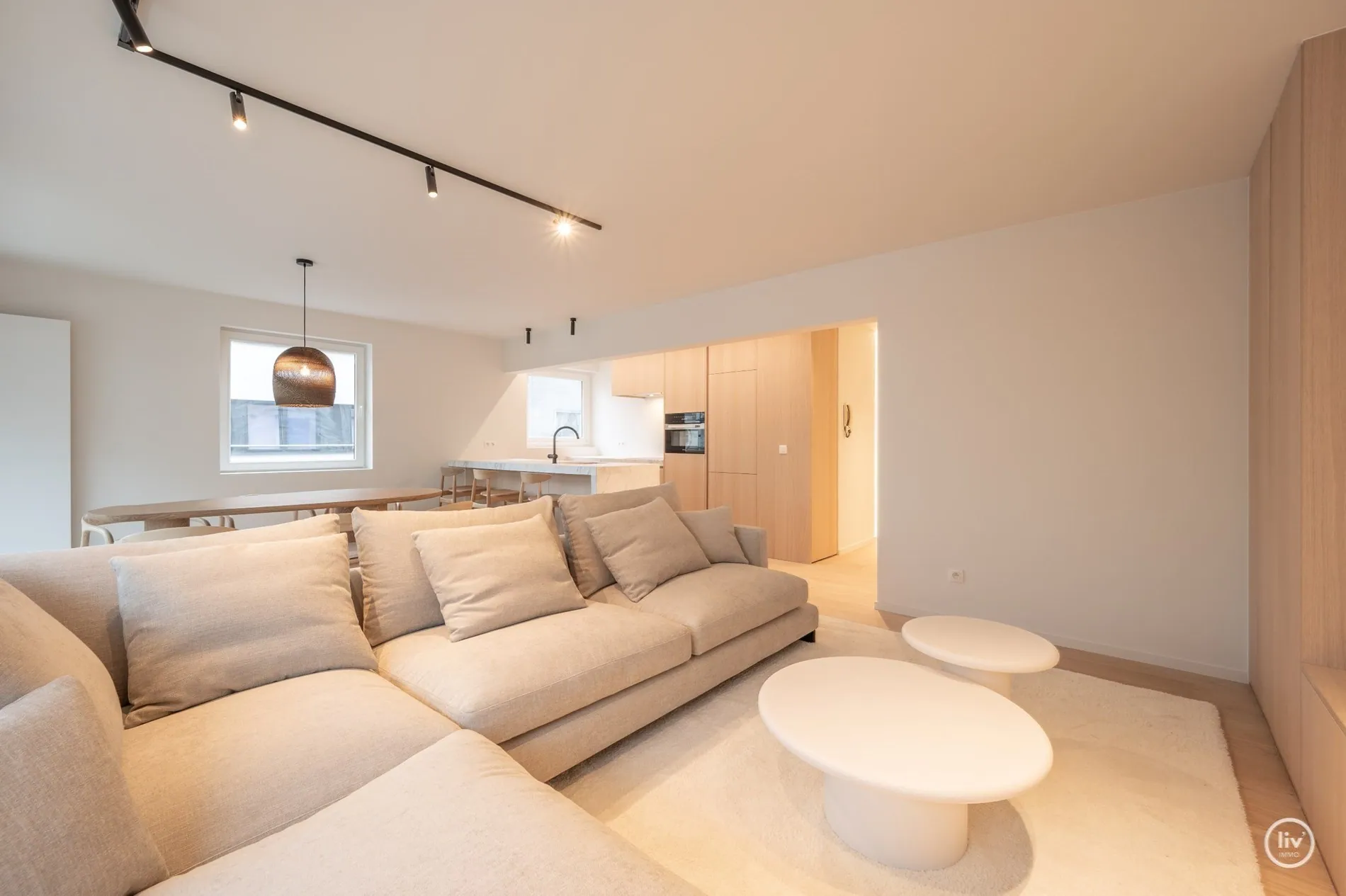 Composé de : Hall d'entrée avec vestiaire, cuisine ouverte entièrement équipée, large espace de vie avec beaucoup de lumière donnant sur une terrasse agréable.
