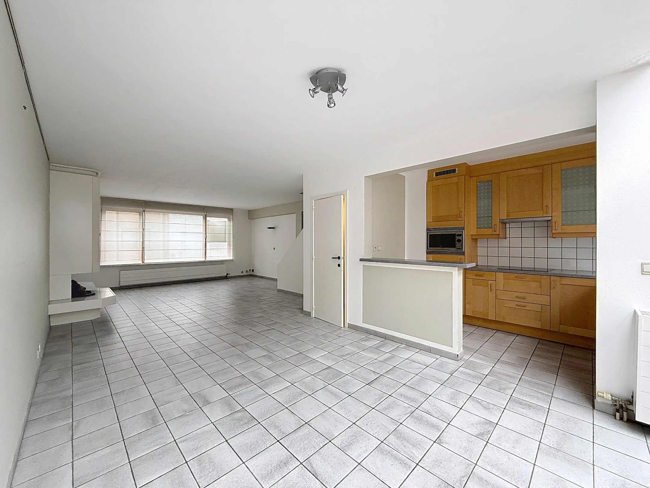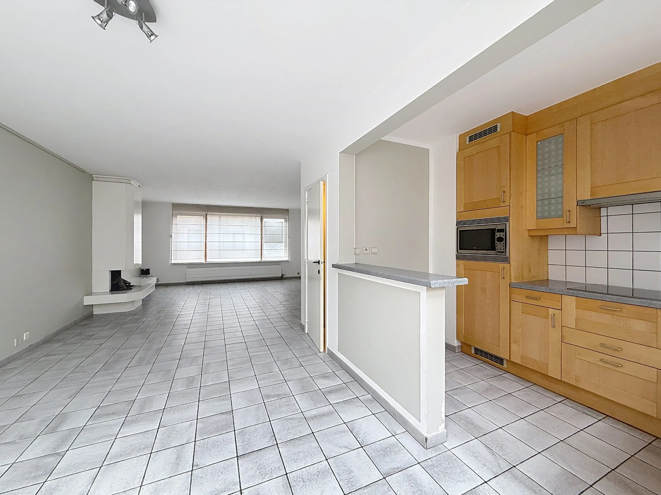 Le salon est spacieux et lumineux et dispose d'une cuisine ouverte. Depuis le salon, vous avez un accès direct à une grande terrasse.