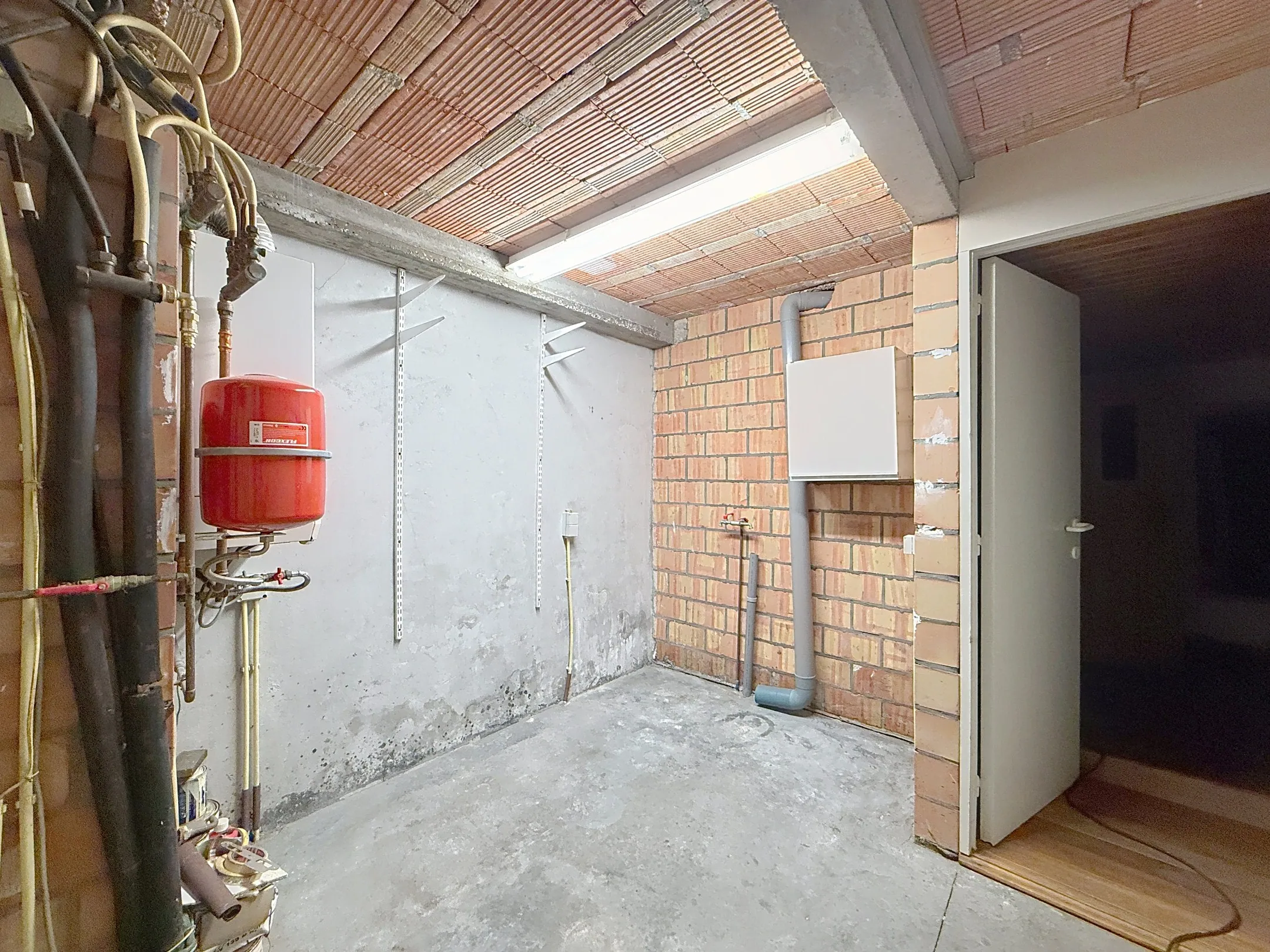 Cette maison spacieuse offre au rez-de-chaussée un hall d'entrée avec toilettes invités, un grand garage, un débarras et un espace bien-être.