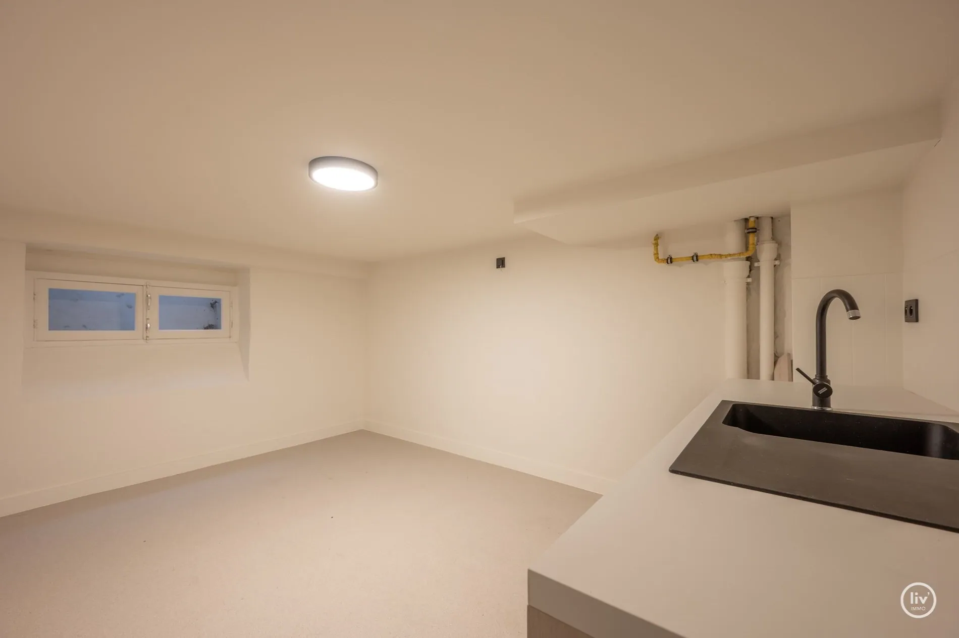 Hall d'entrée individuel séparé, bel espace commercial agréable avec cuisine ouverte ;