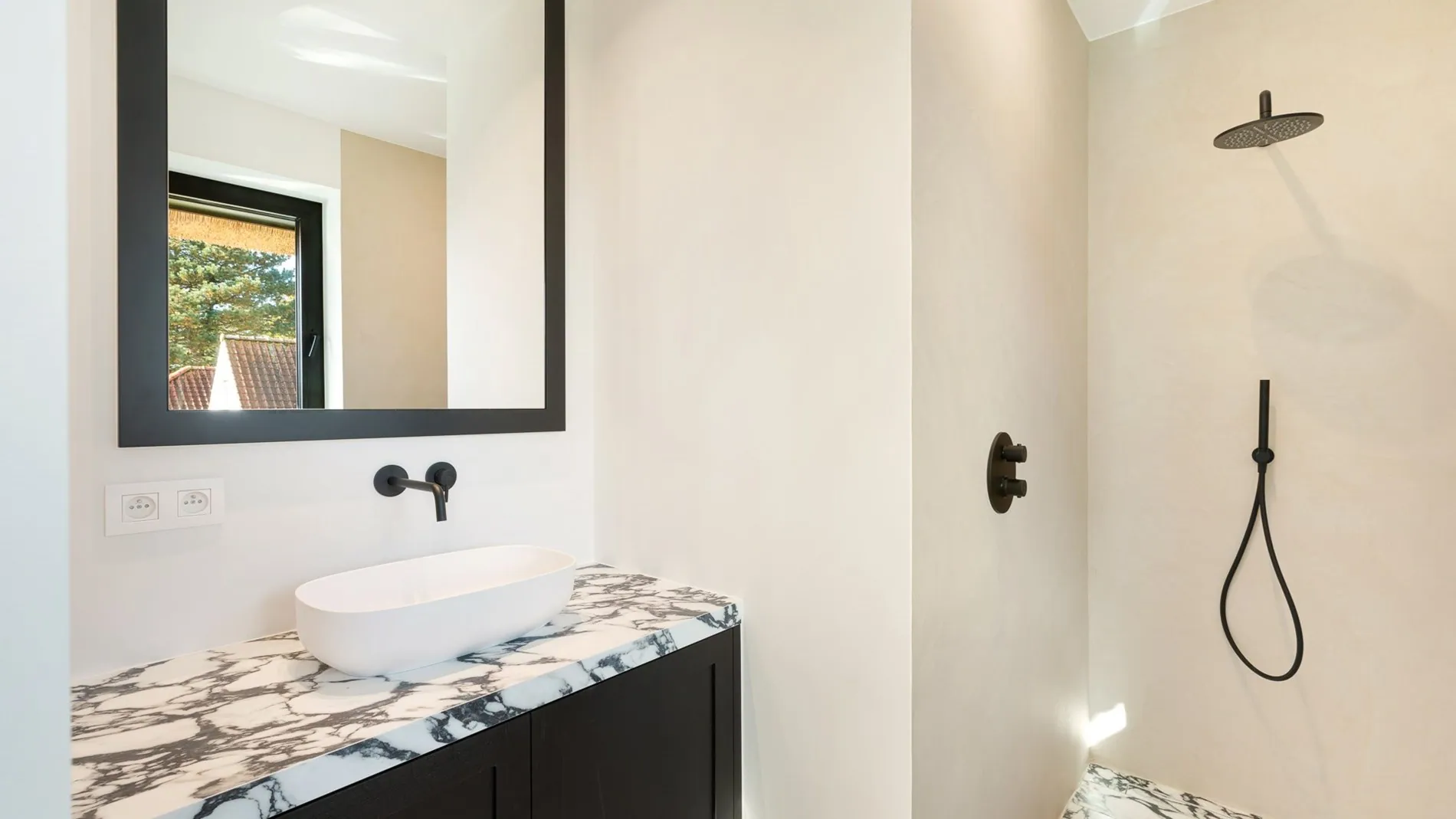 Finition avec des matériaux de qualité et de luxe jusqu'au moindre détail. Garage pour 1 voiture et place pour plusieurs voitures devant la maison.