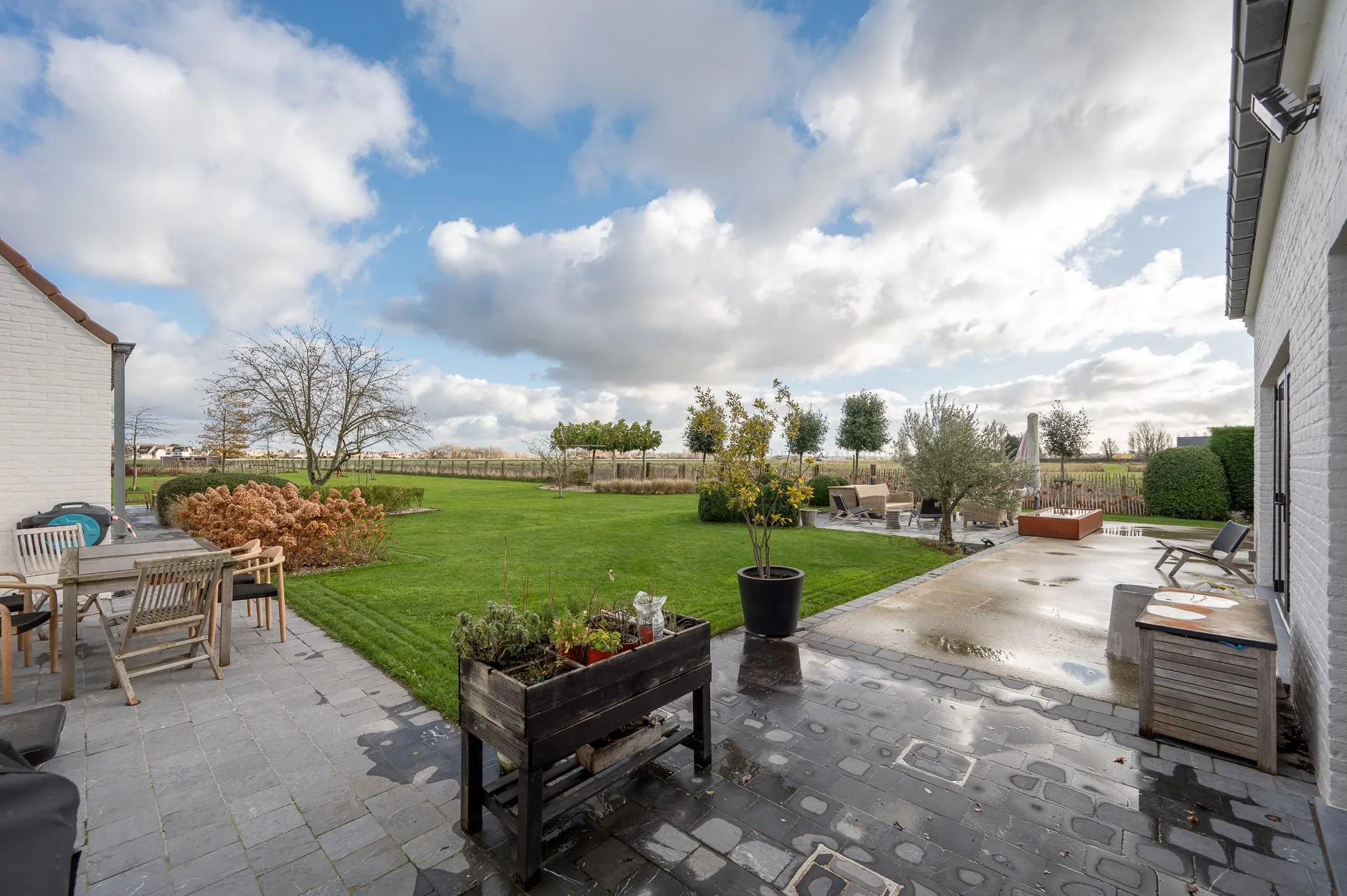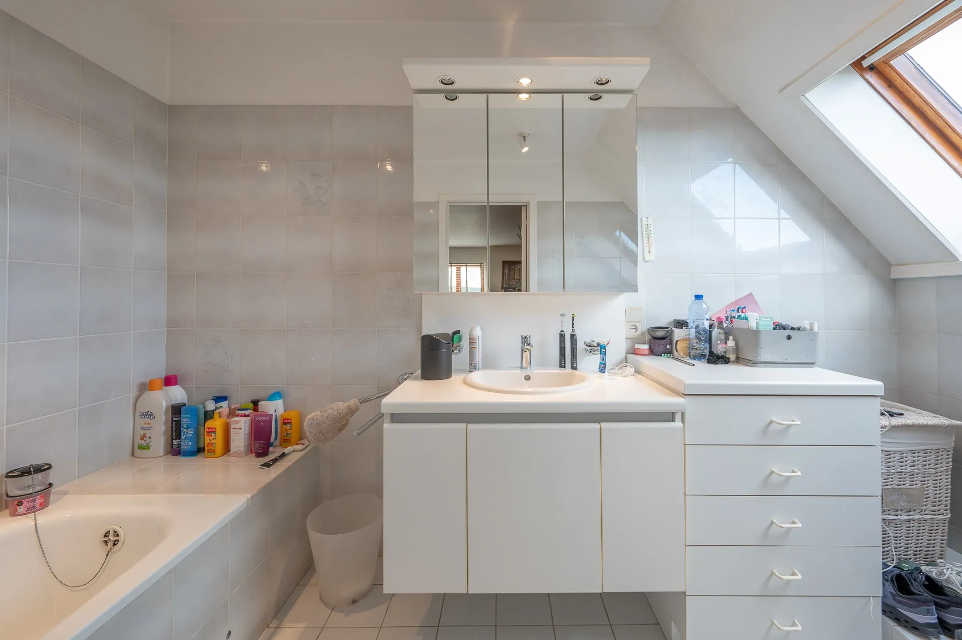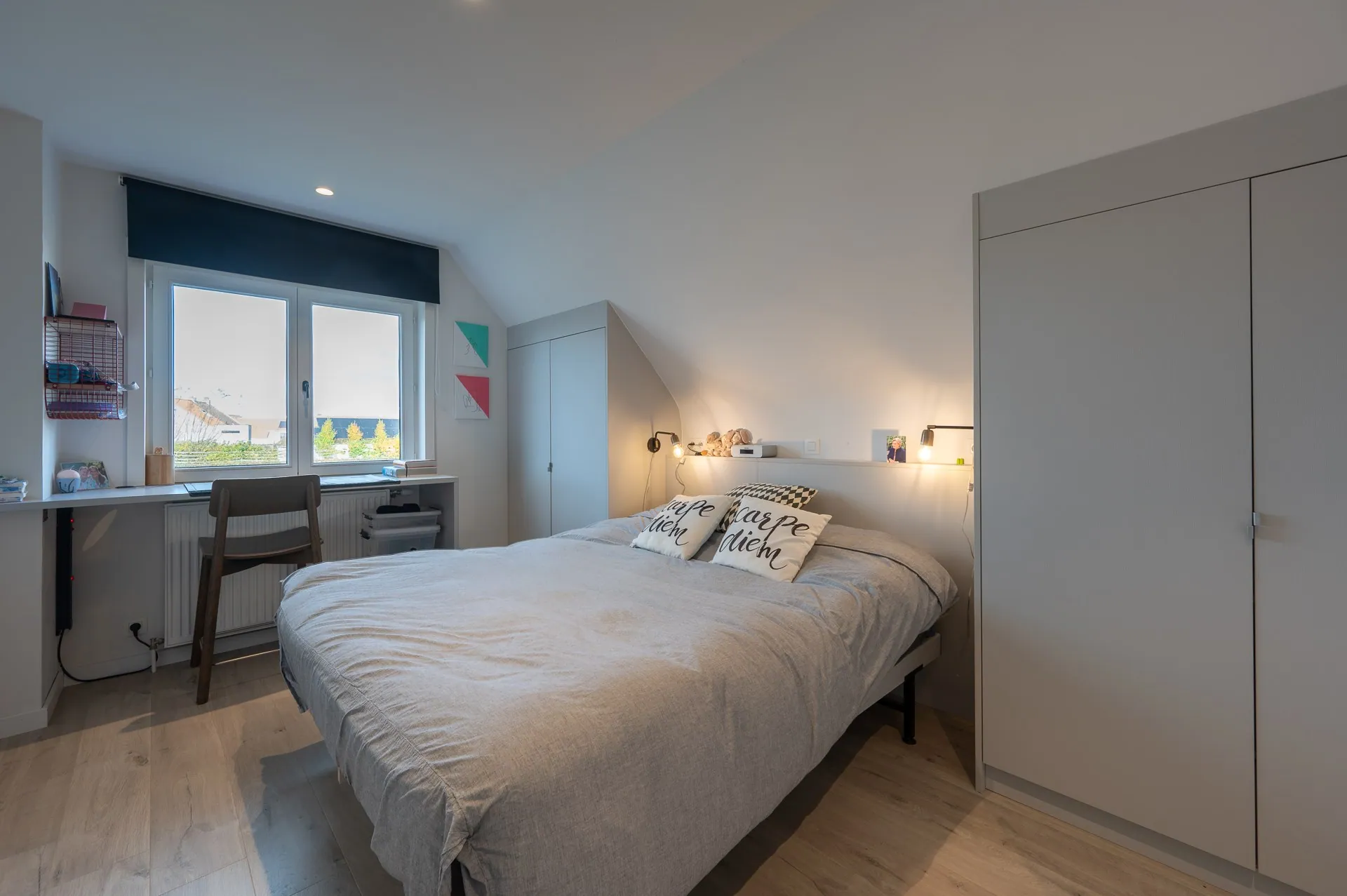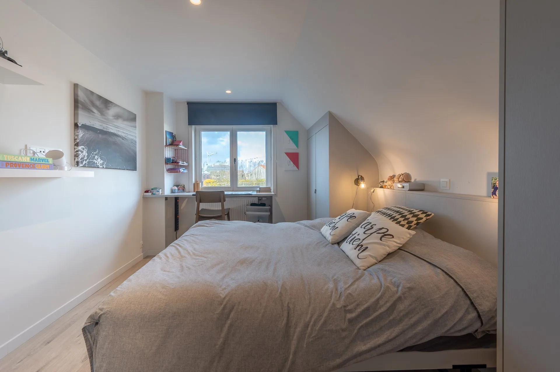 Hall d'entrée avec toilettes pour invités et vestiaire, beau salon avec cheminée au gaz, véranda attenante avec accès à la terrasse et au jardin orienté sud-ouest. Magnifique cuisine moderne et entièrement équipée avec îlot de cuisson, un grand débarras et un garage pour 1 voiture. À l'étage se trouve la chambre principale avec des armoires encastrées et une salle de bains attenante avec baignoire, lavabo et toilettes. Il y a également 3 autres chambres avec une salle de douche rénovée séparée.