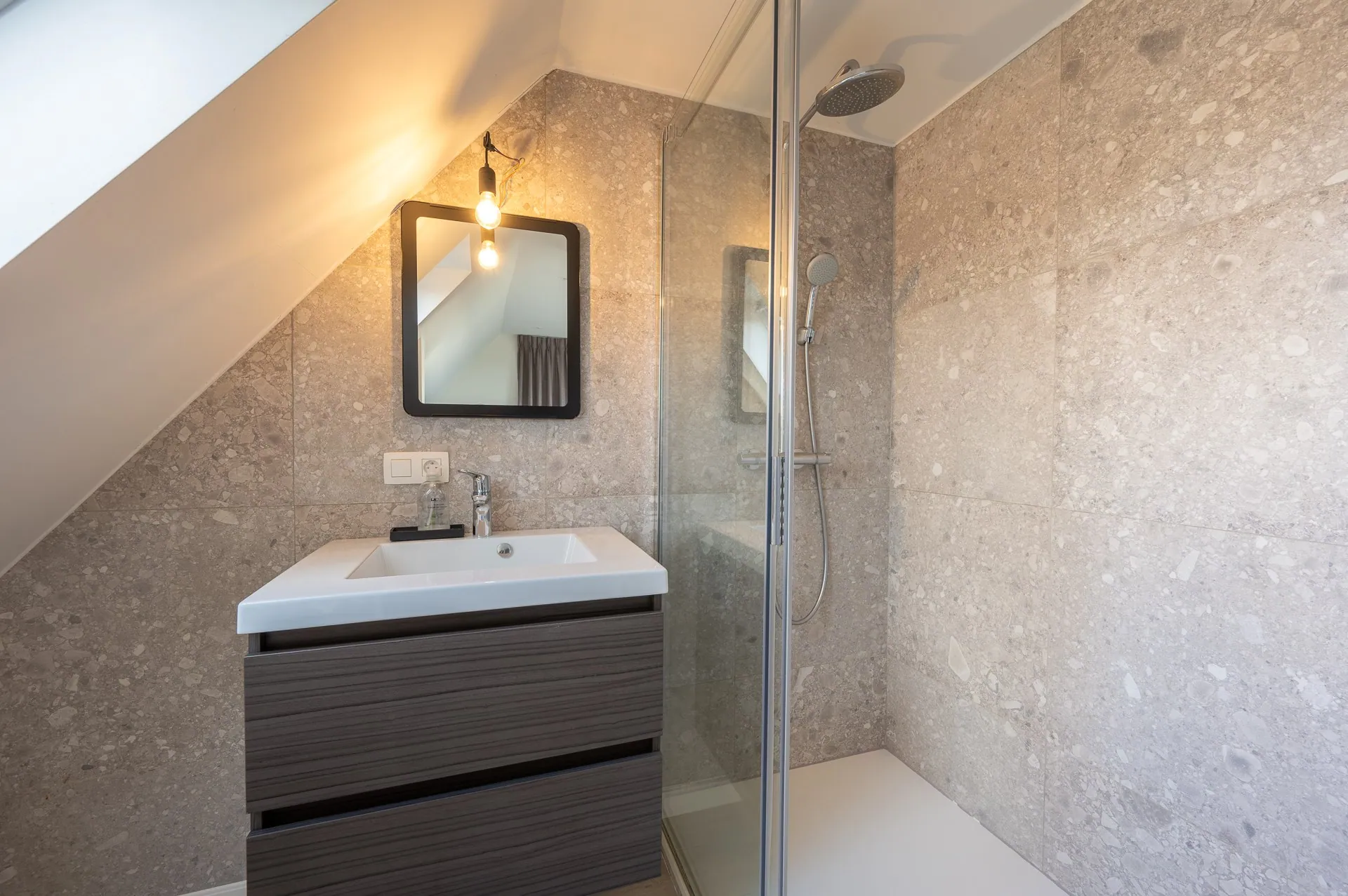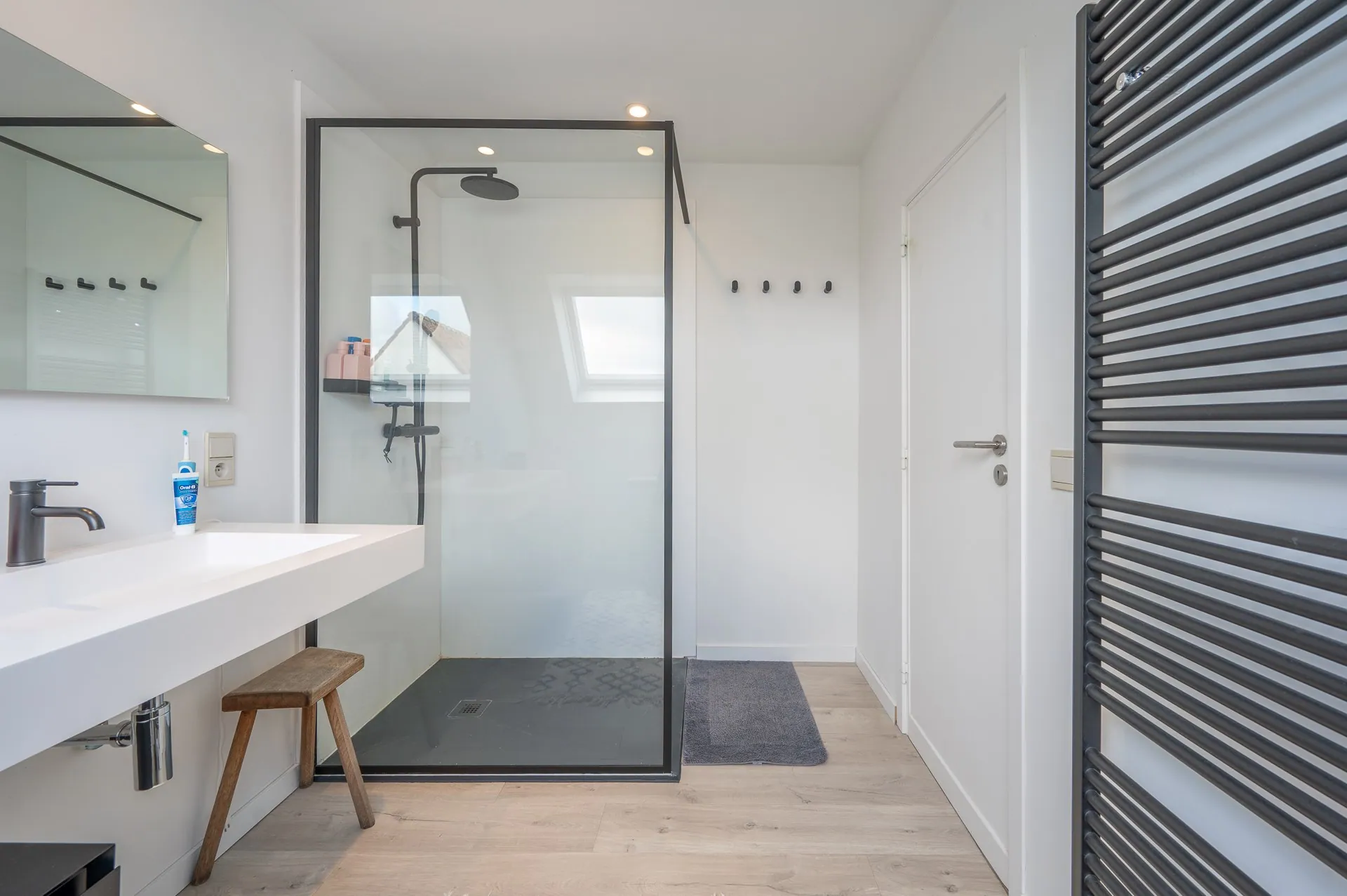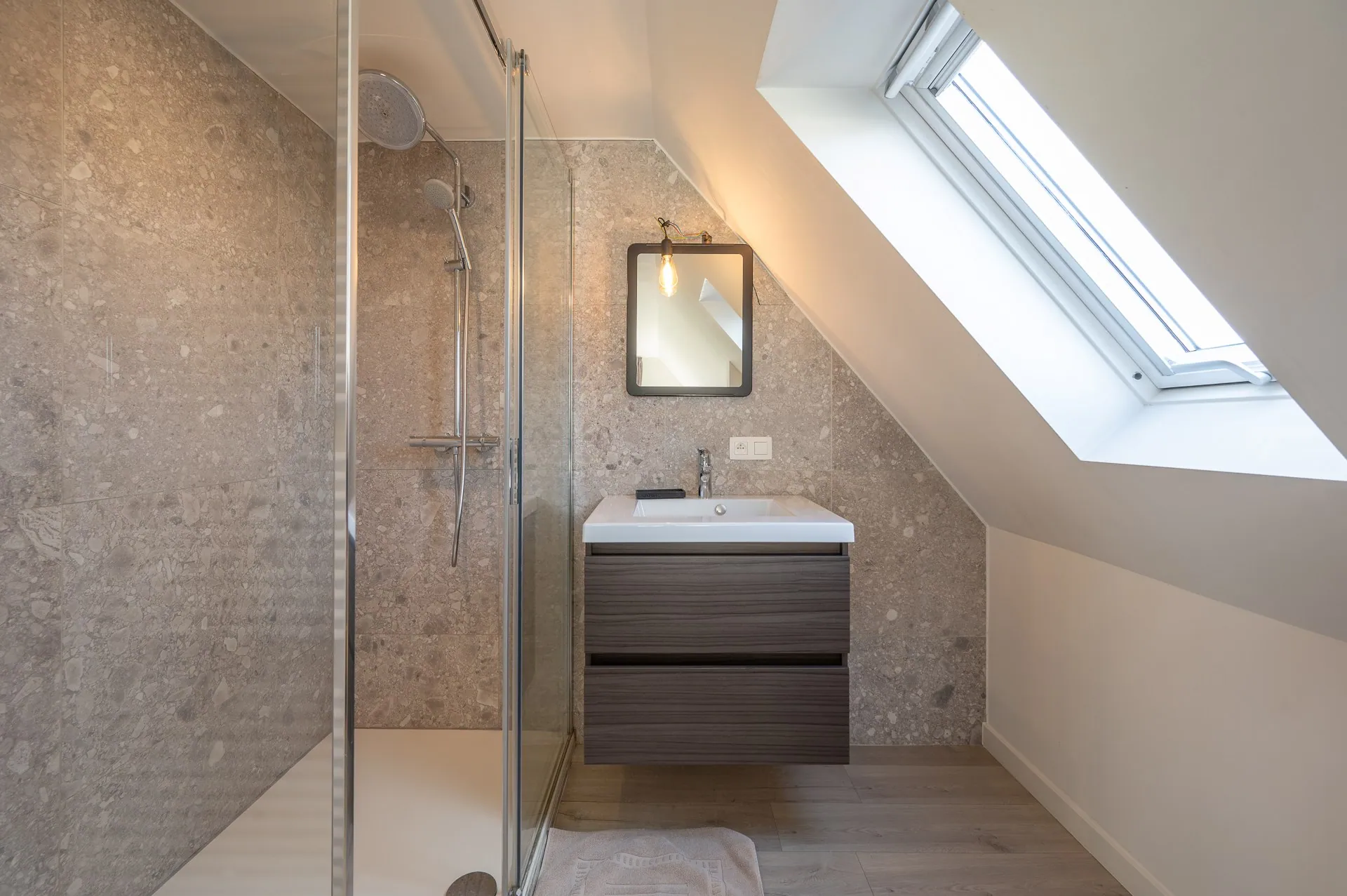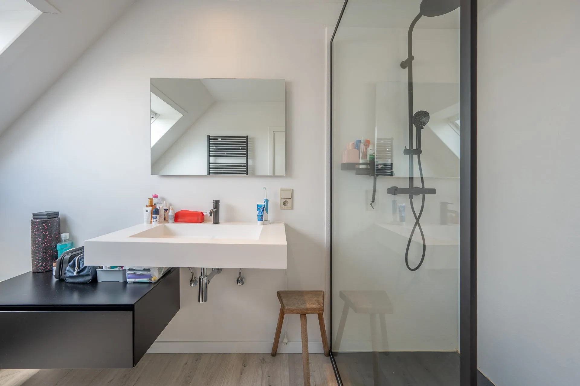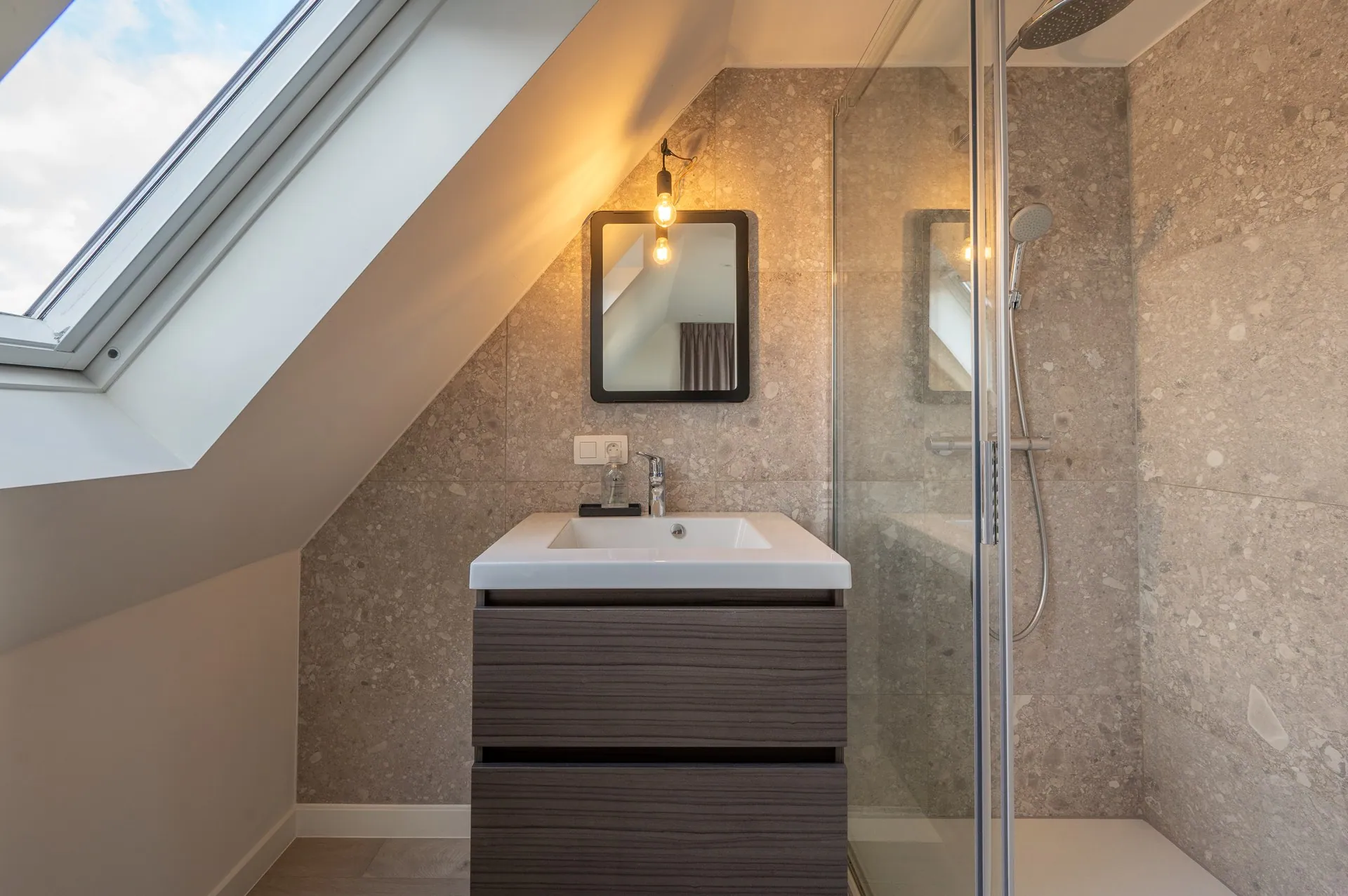 Hall d'entrée avec toilettes pour invités et vestiaire, beau salon avec cheminée au gaz, véranda attenante avec accès à la terrasse et au jardin orienté sud-ouest. Magnifique cuisine moderne et entièrement équipée avec îlot de cuisson, un grand débarras et un garage pour 1 voiture. À l'étage se trouve la chambre principale avec des armoires encastrées et une salle de bains attenante avec baignoire, lavabo et toilettes. Il y a également 3 autres chambres avec une salle de douche rénovée séparée.