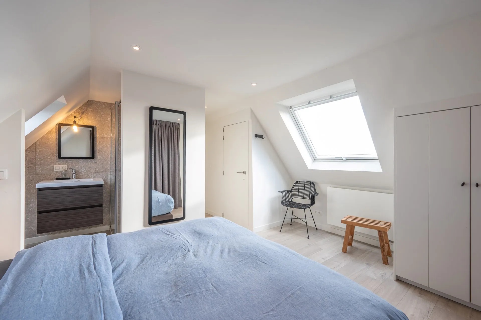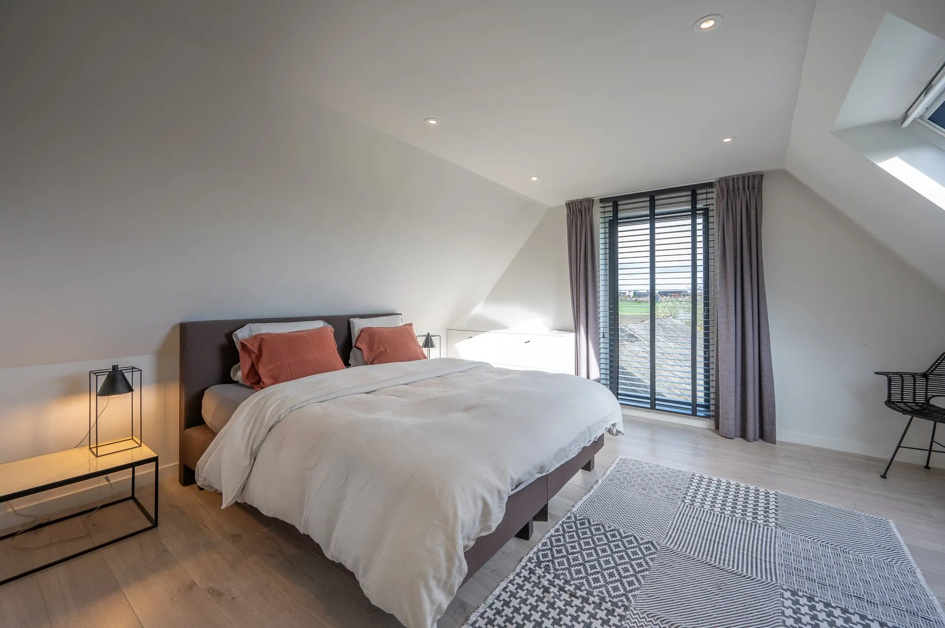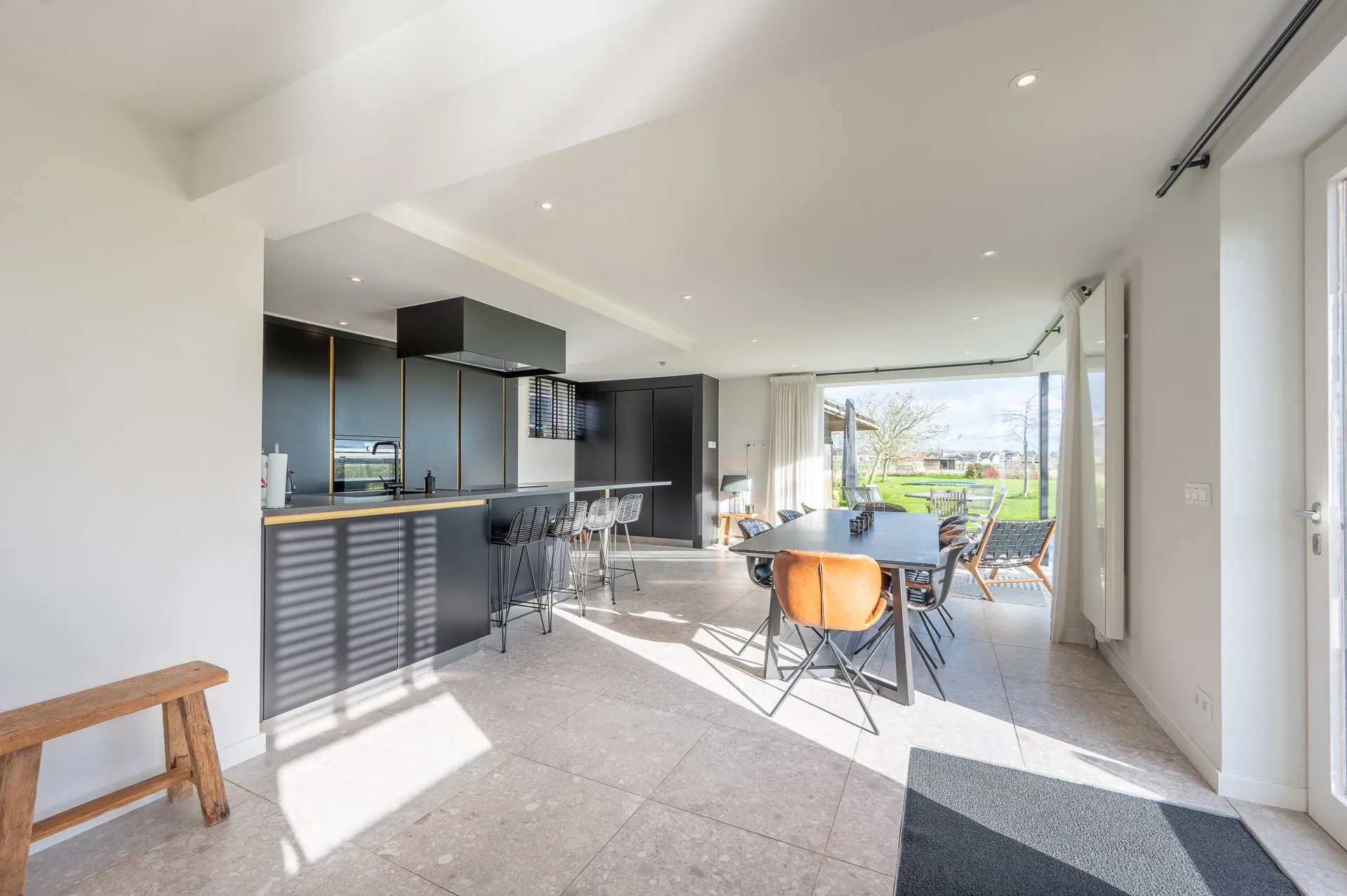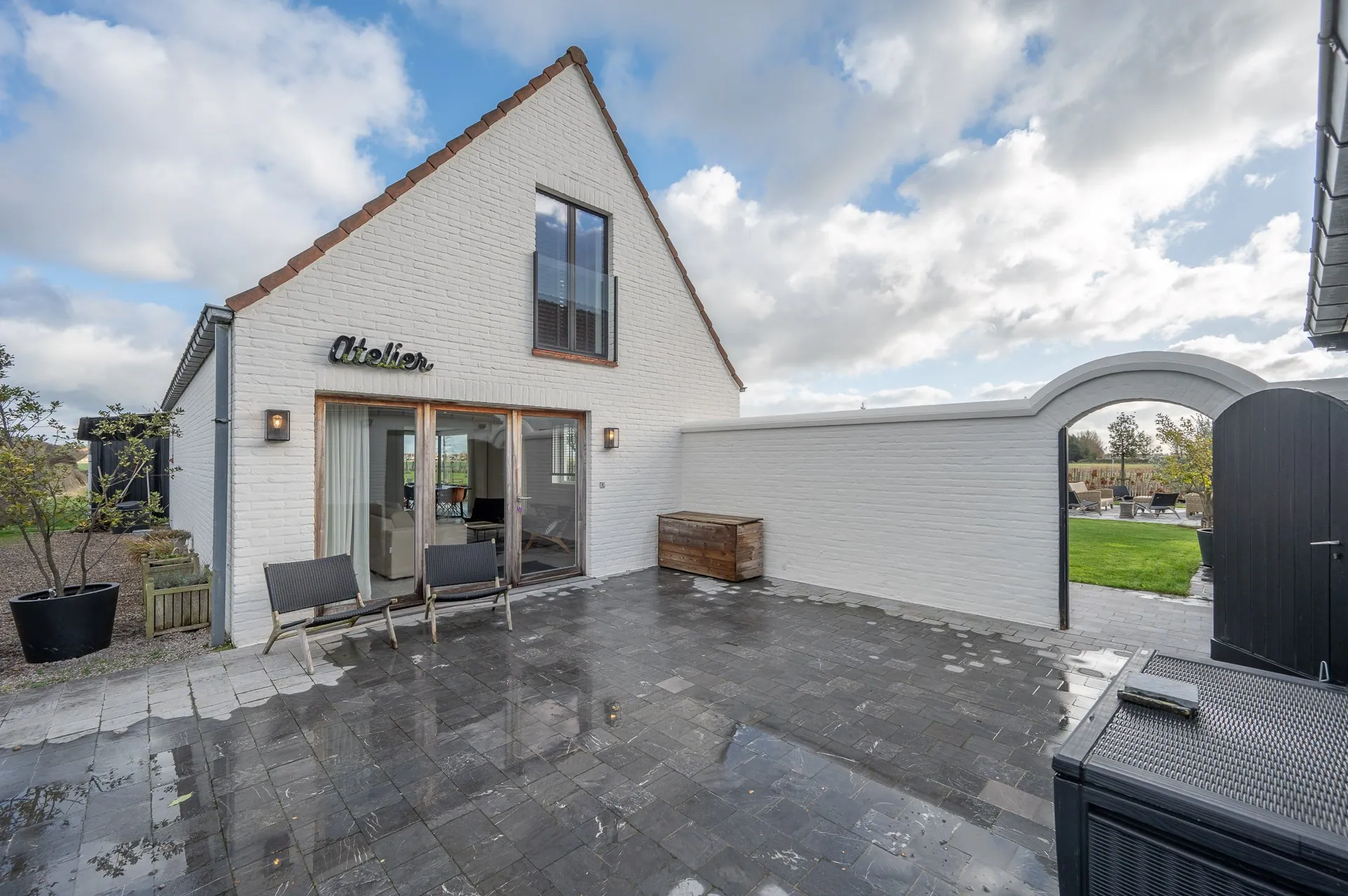 Le bâtiment annexe sert d'atelier et est actuellement aménagé en un grand salon confortable avec une cuisine ouverte moderne et bénéficiant de vues magnifiques sur les polders. À l'étage, il y a 2 chambres complètes avec chacune une salle de douche avec toilettes.