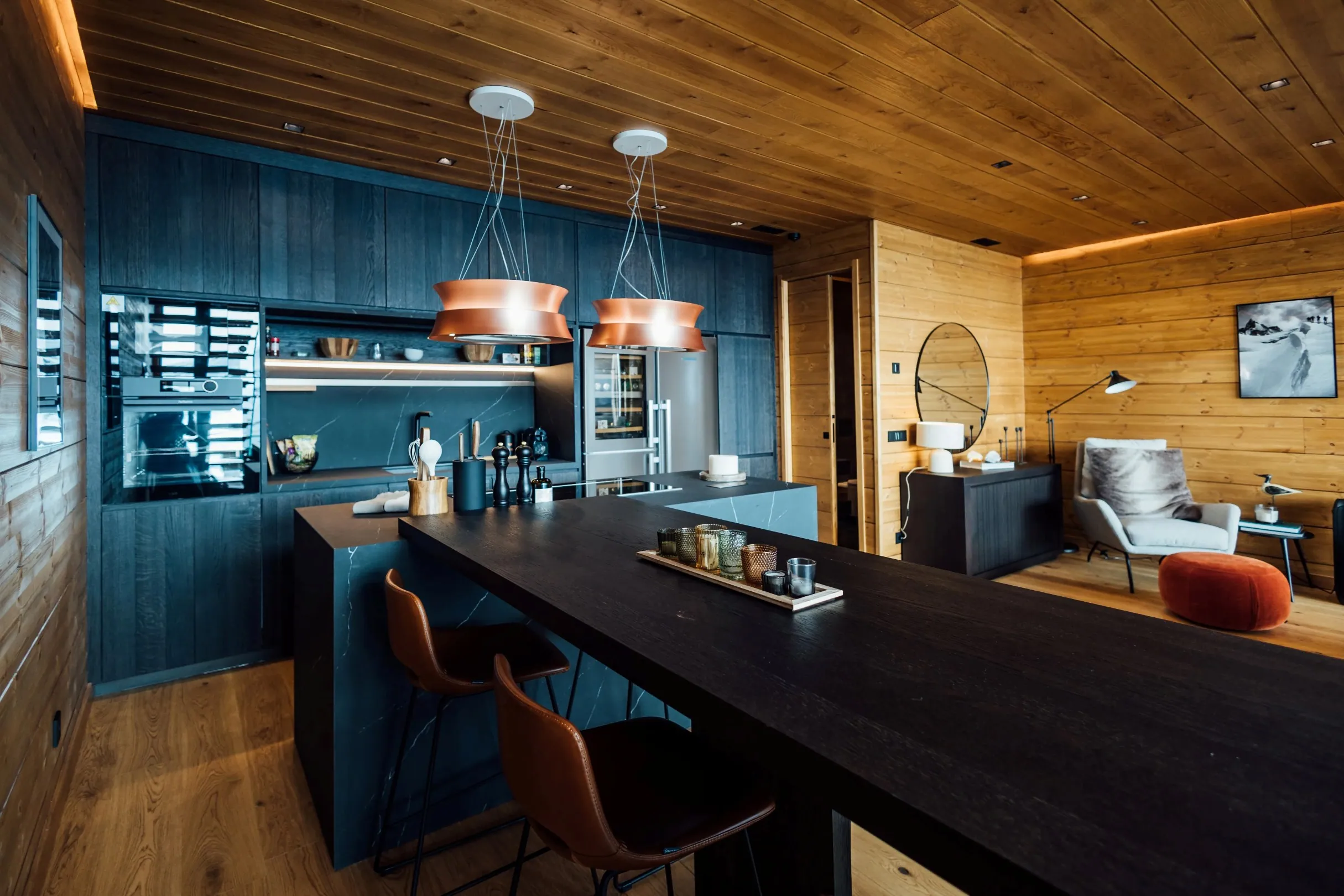 Située dans une rue privée, cette villa en trois étages soigneusement conçue se distingue immédiatement par sa qualité exceptionnelle et son souci du détail. L'espace de vie ouvert est aménagé pour le confort et la connexion, avec un salon spacieux qui se fond parfaitement dans une cuisine ultramoderne. Cette cuisine est entièrement équipée pour tous vos besoins culinaires. Depuis la terrasse, vous pourrez profiter de vues panoramiques à couper le souffle sur la station de ski et les montagnes environnantes, parfait pour savourer votre café du matin ou un verre de vin le soir.