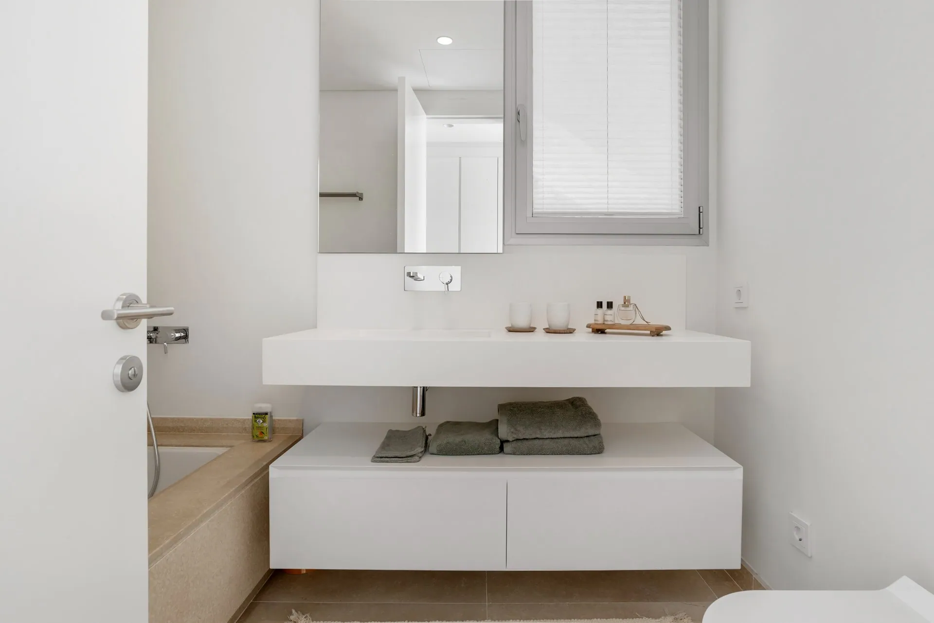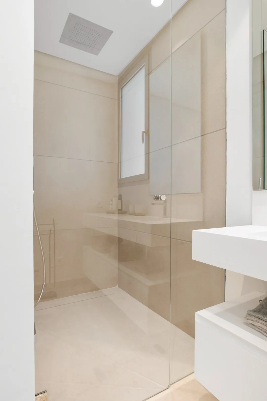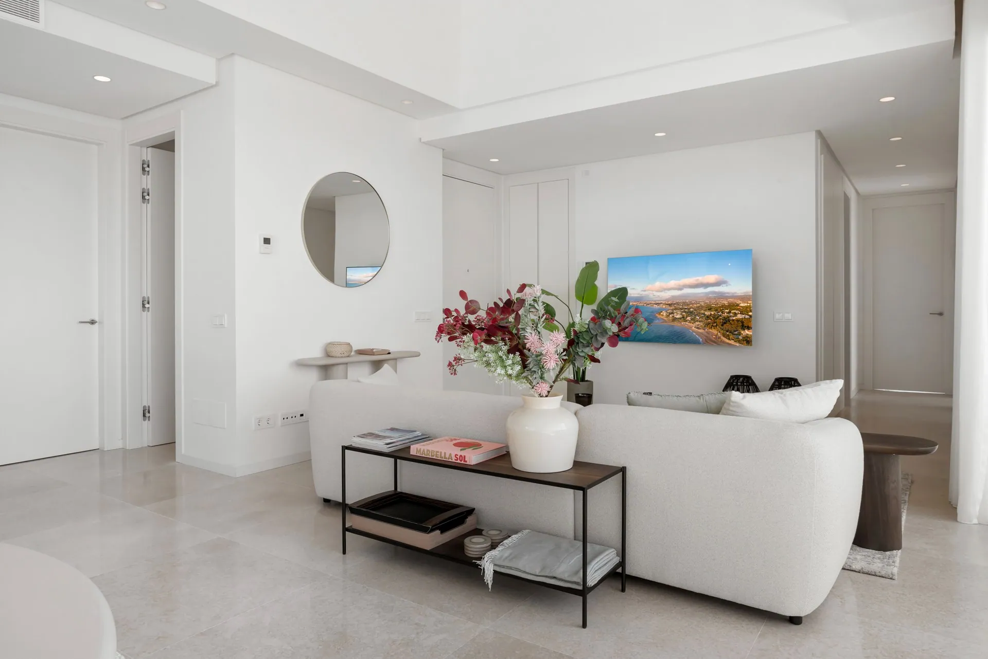 En entrant dans cet élégant penthouse, vous serez accueilli par une abondance de lumière naturelle, grâce aux grandes fenêtres du sol au plafond et aux portes-fenêtres magnifiquement conçues. Celles-ci vous mènent directement sur votre terrasse privée, où vous pourrez profiter du cadre serein et de la vue impressionnante sur la mer.