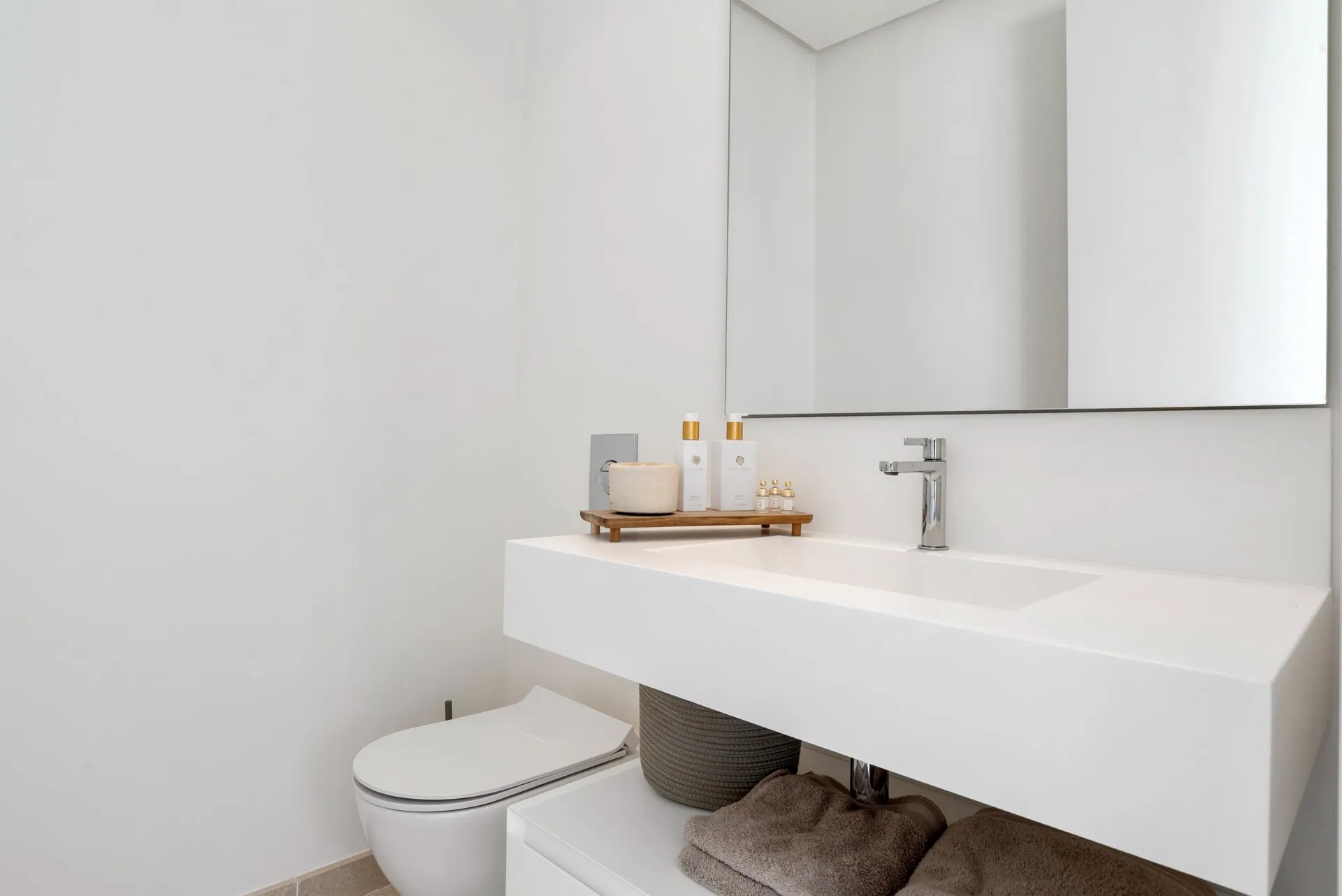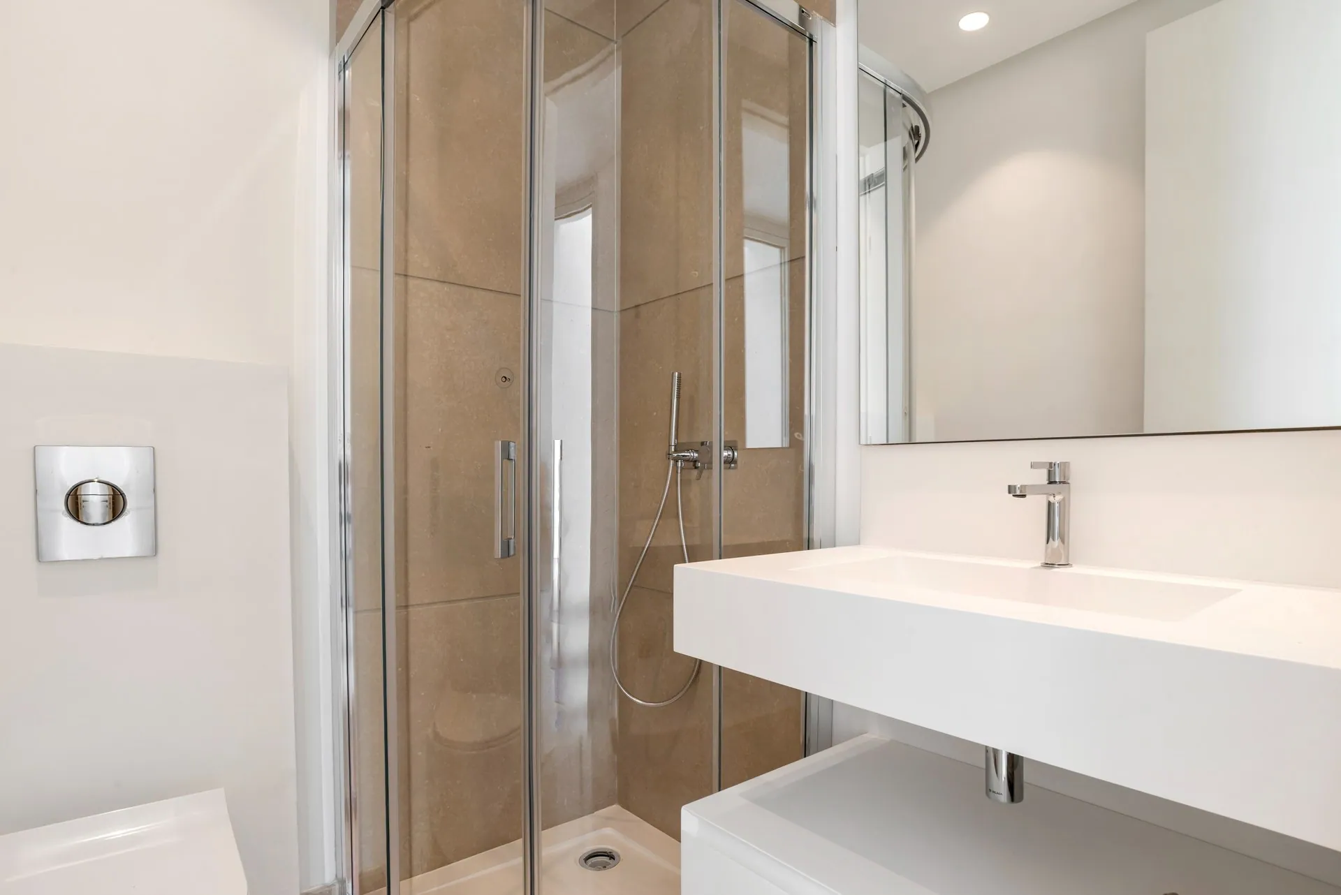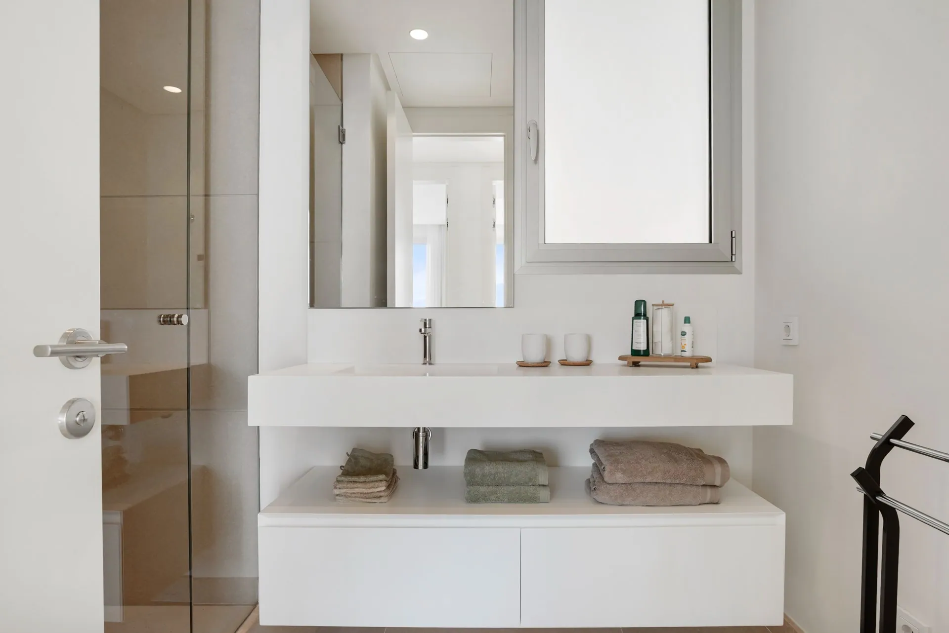 En entrant dans cet élégant penthouse, vous serez accueilli par une abondance de lumière naturelle, grâce aux grandes fenêtres du sol au plafond et aux portes-fenêtres magnifiquement conçues. Celles-ci vous mènent directement sur votre terrasse privée, où vous pourrez profiter du cadre serein et de la vue impressionnante sur la mer.